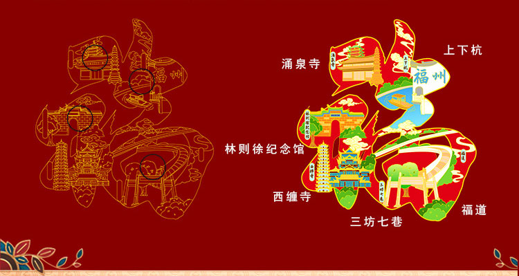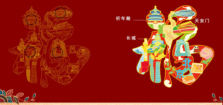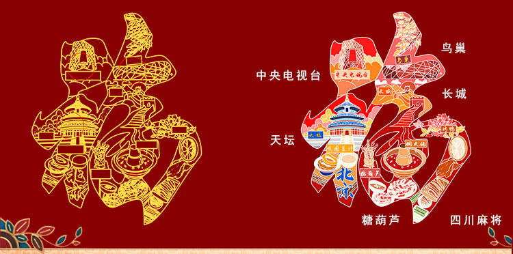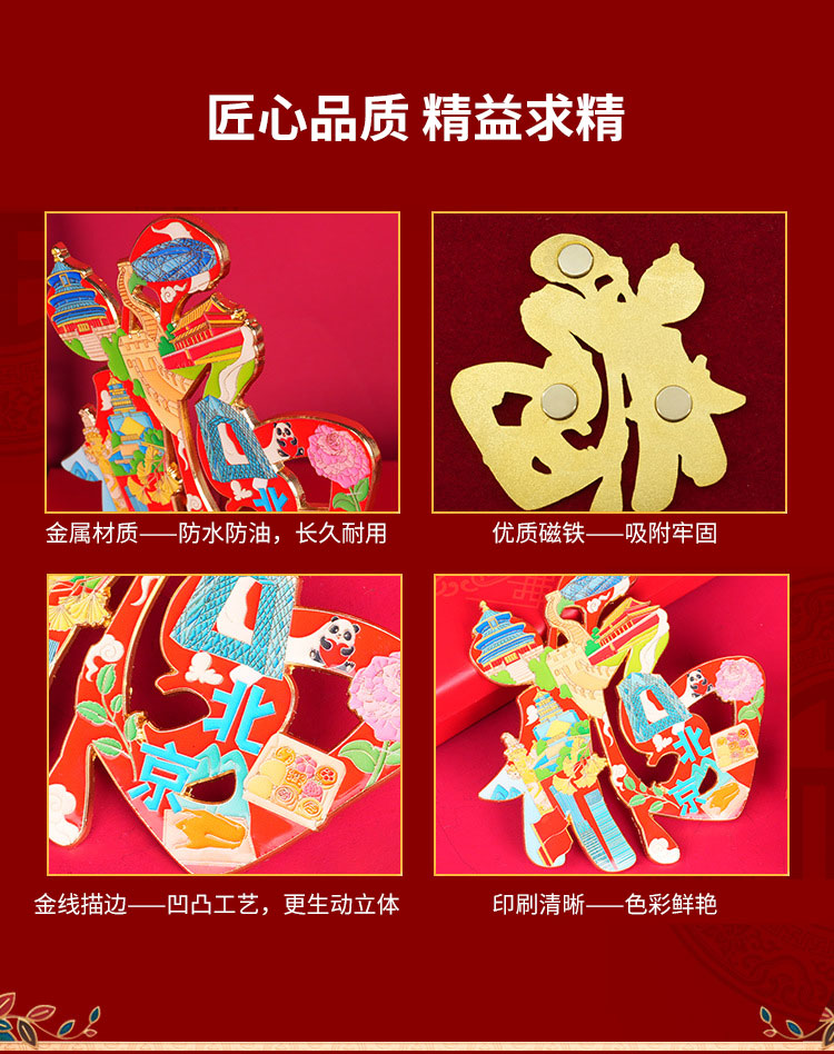 【福字冰箱贴】中国城市北京长城鸟巢天安门文创旅游纪念品伴手礼摆件
