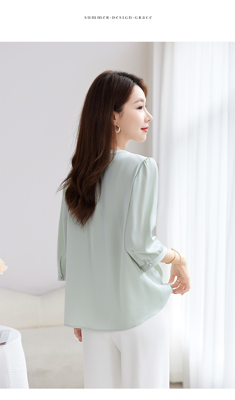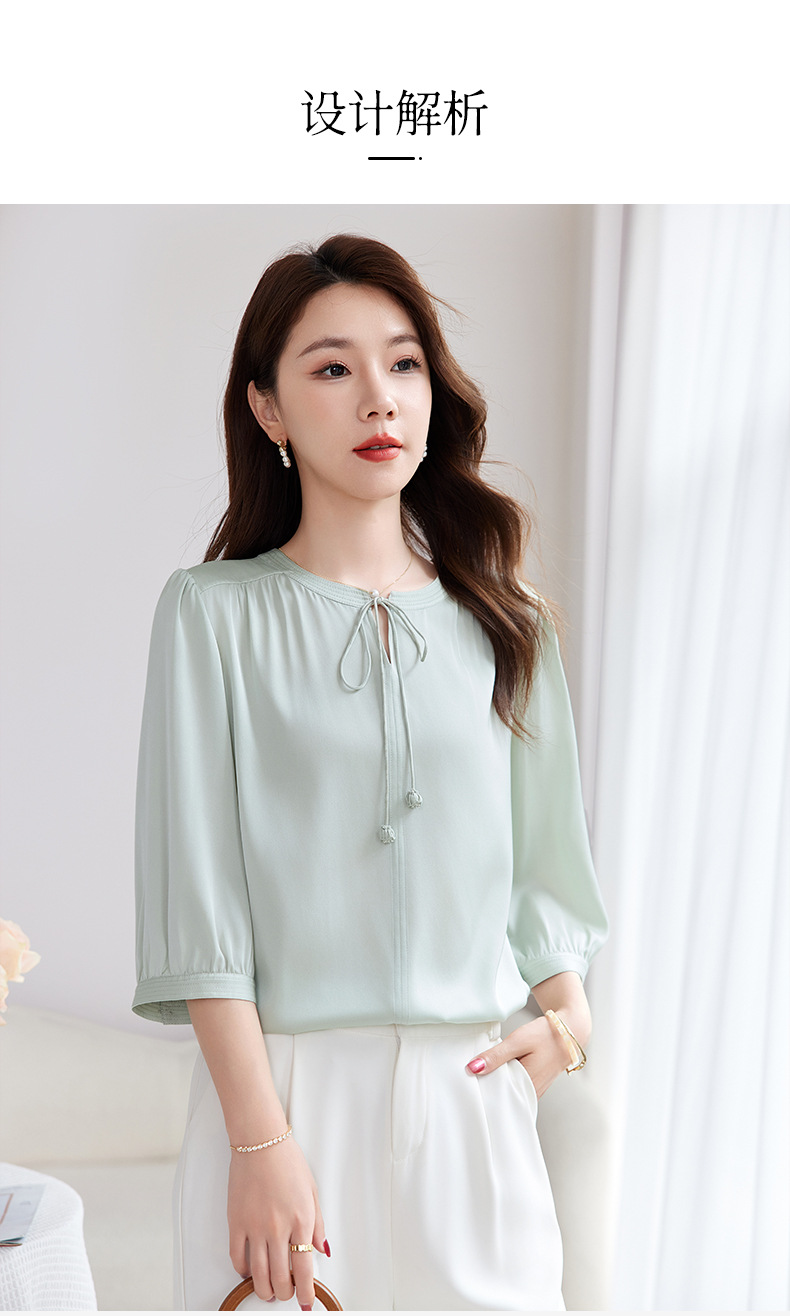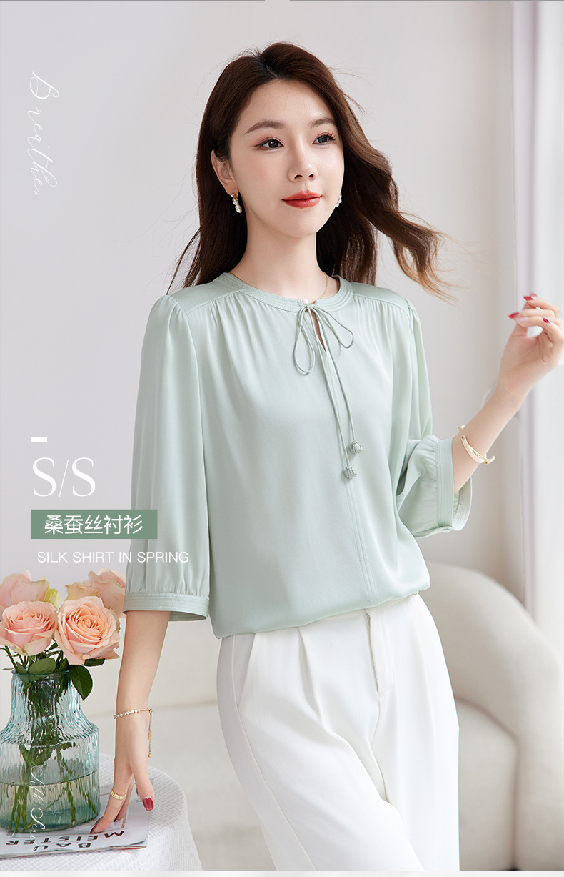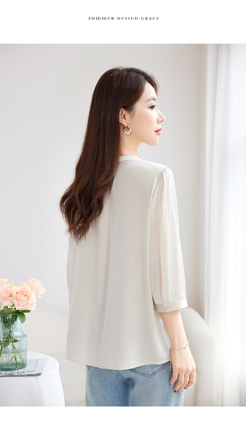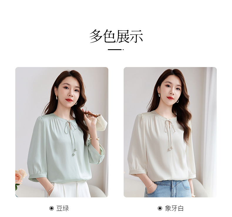 QS-12501617【真丝衬衫】夏季新款七分袖上衣时尚洋气桑蚕丝衬衣别致小衫1617
