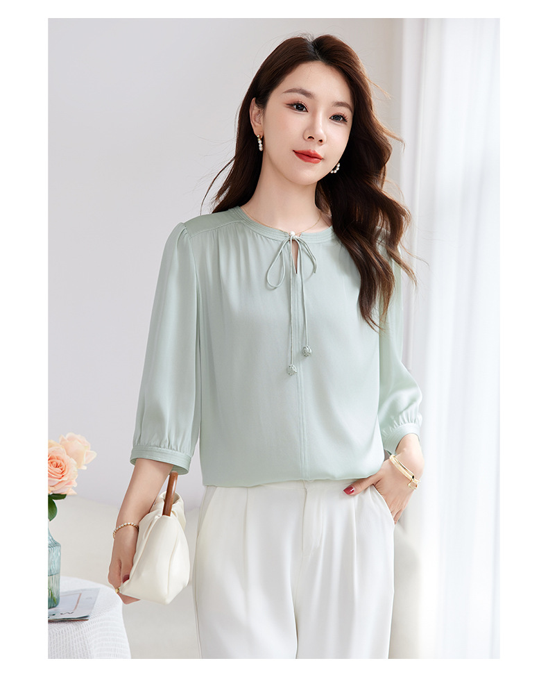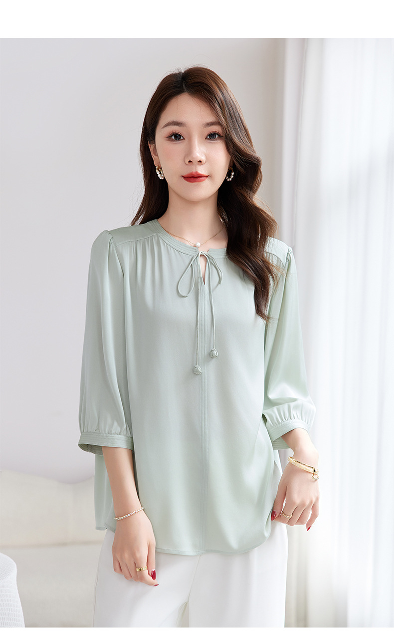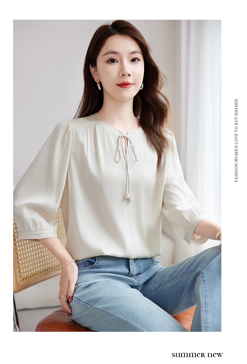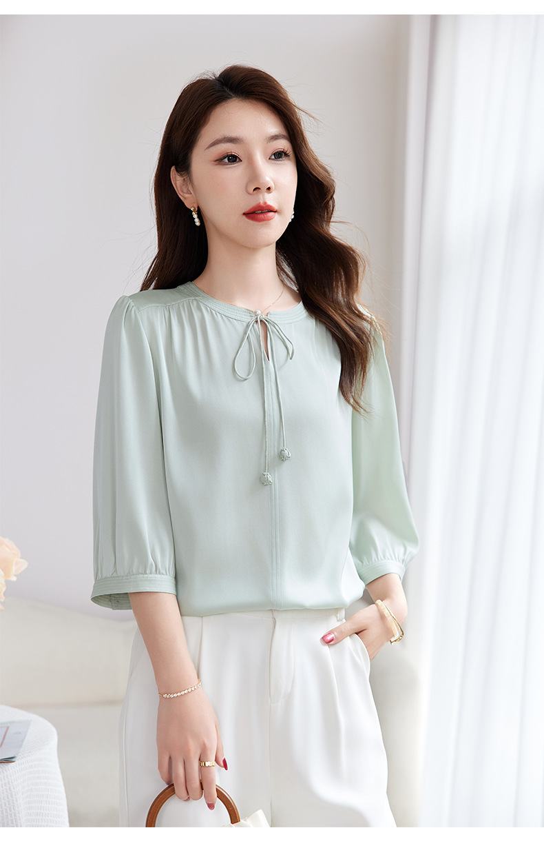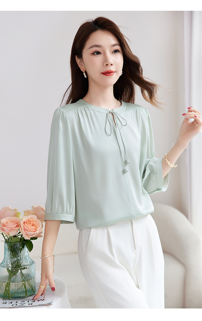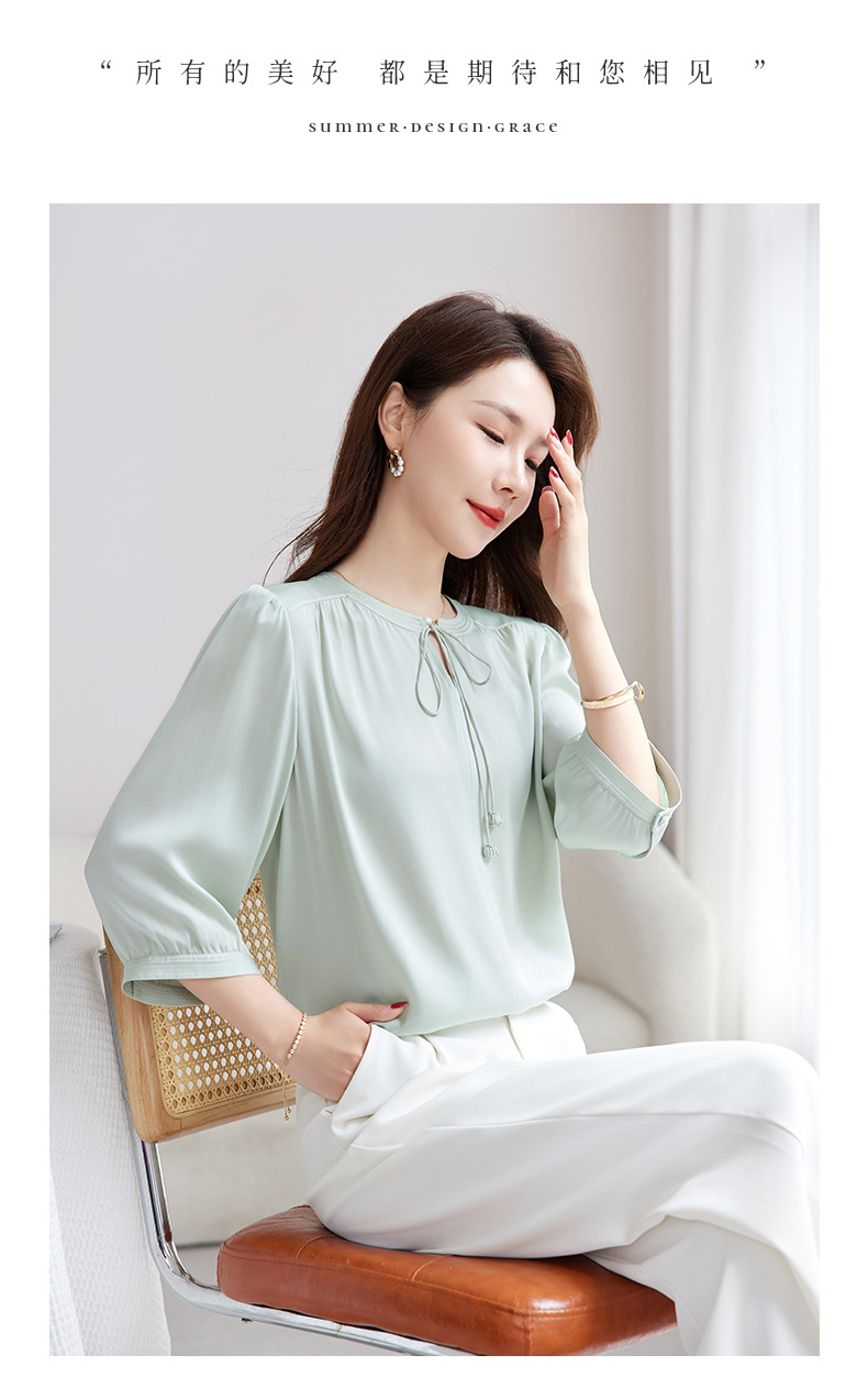QS-12501617【真丝衬衫】夏季新款七分袖上衣时尚洋气桑蚕丝衬衣别致小衫1617