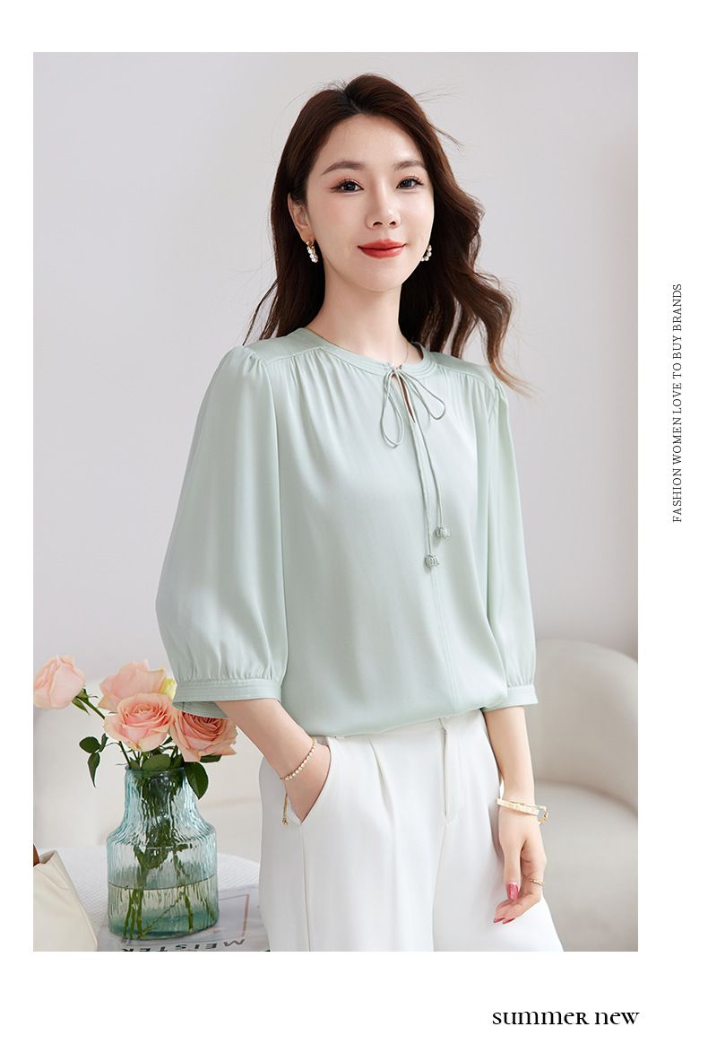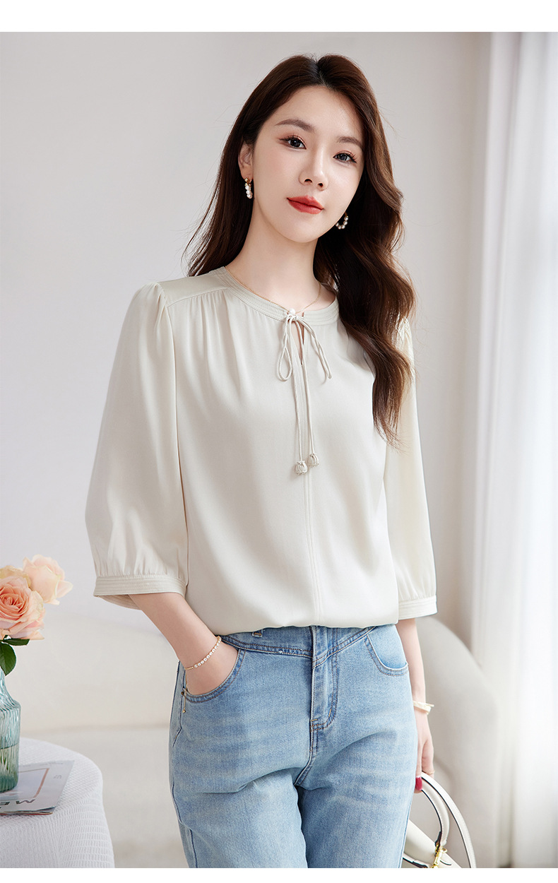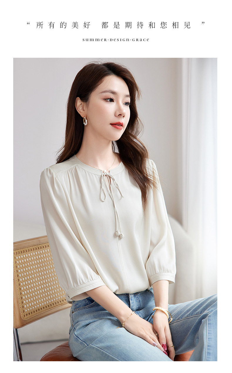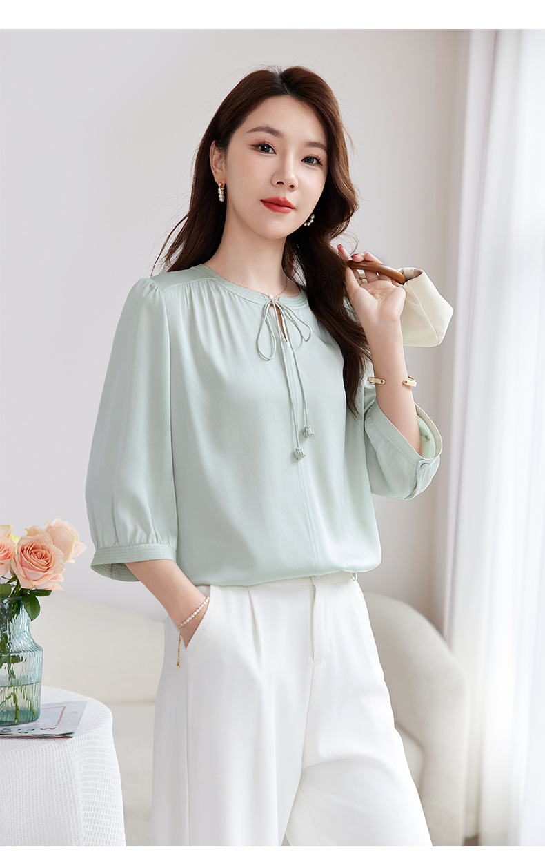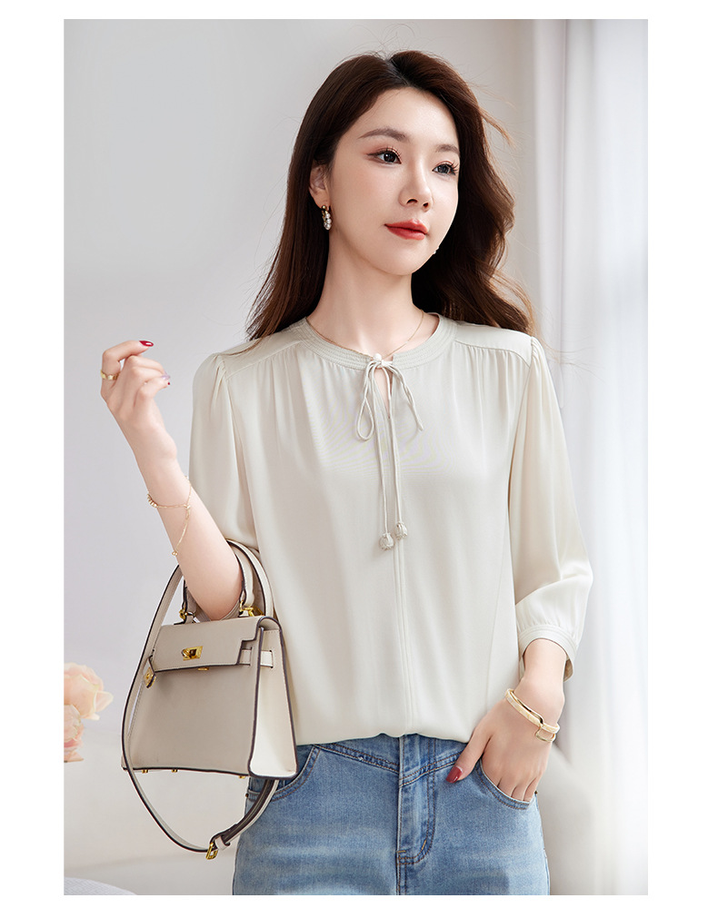 QS-12501617【真丝衬衫】夏季新款七分袖上衣时尚洋气桑蚕丝衬衣别致小衫1617