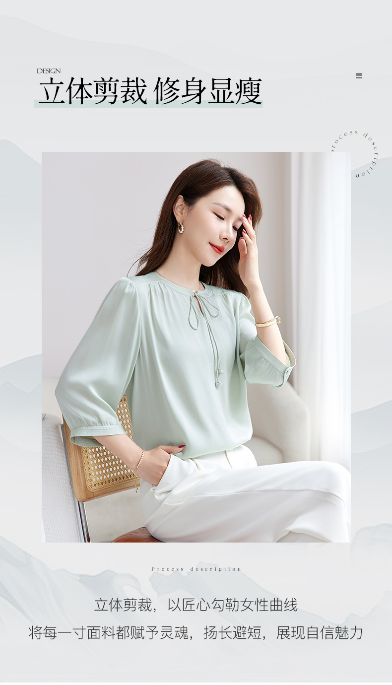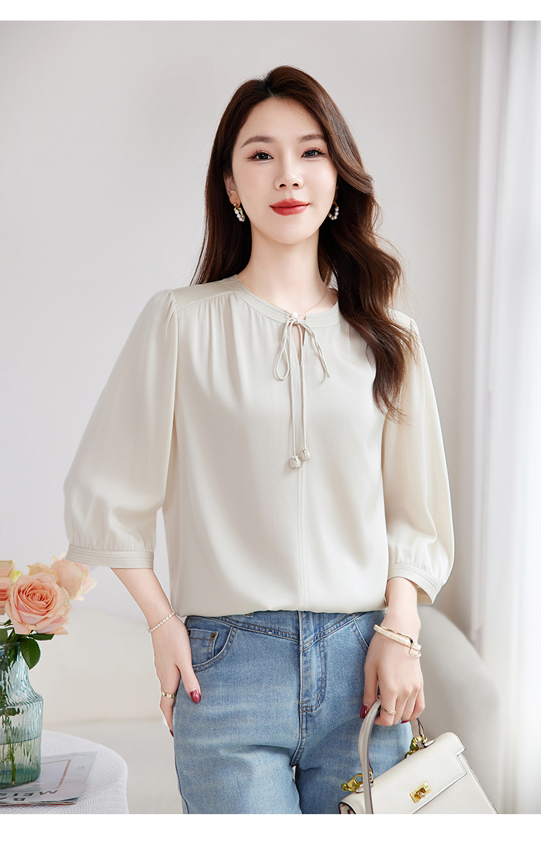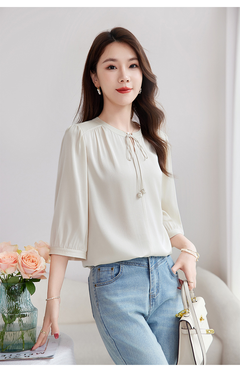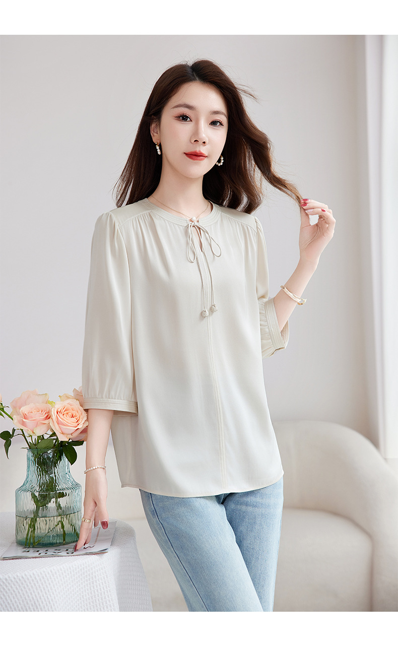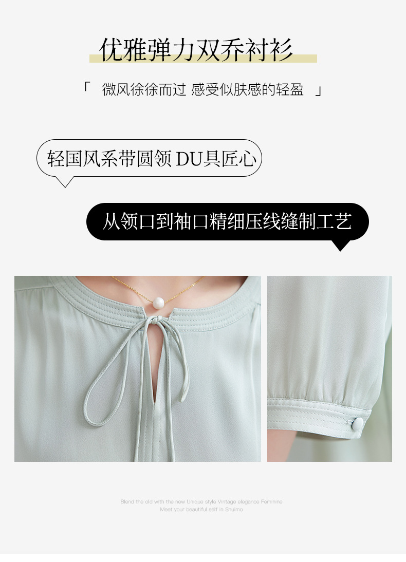 QS-12501617【真丝衬衫】夏季新款七分袖上衣时尚洋气桑蚕丝衬衣别致小衫1617