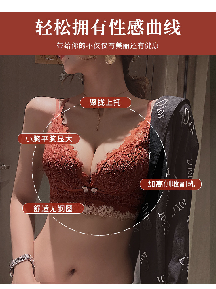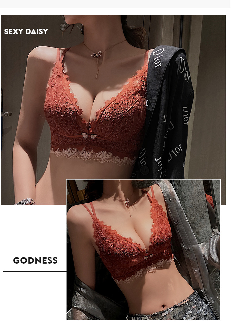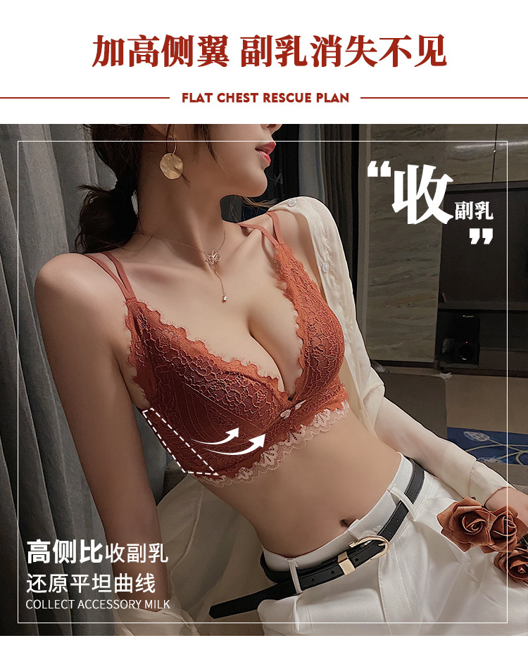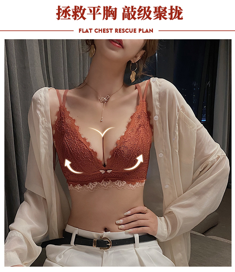 【拯救平胸,轻松拥有迷人曲线】SSEMMY性感蕾丝美背内衣套装 聚拢上托 舒适无钢圈 加高侧边收副乳 小胸平胸显大 多种美背穿法秒变性感女神