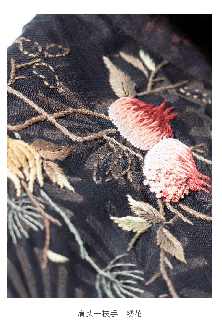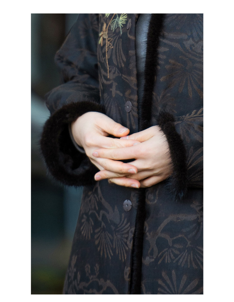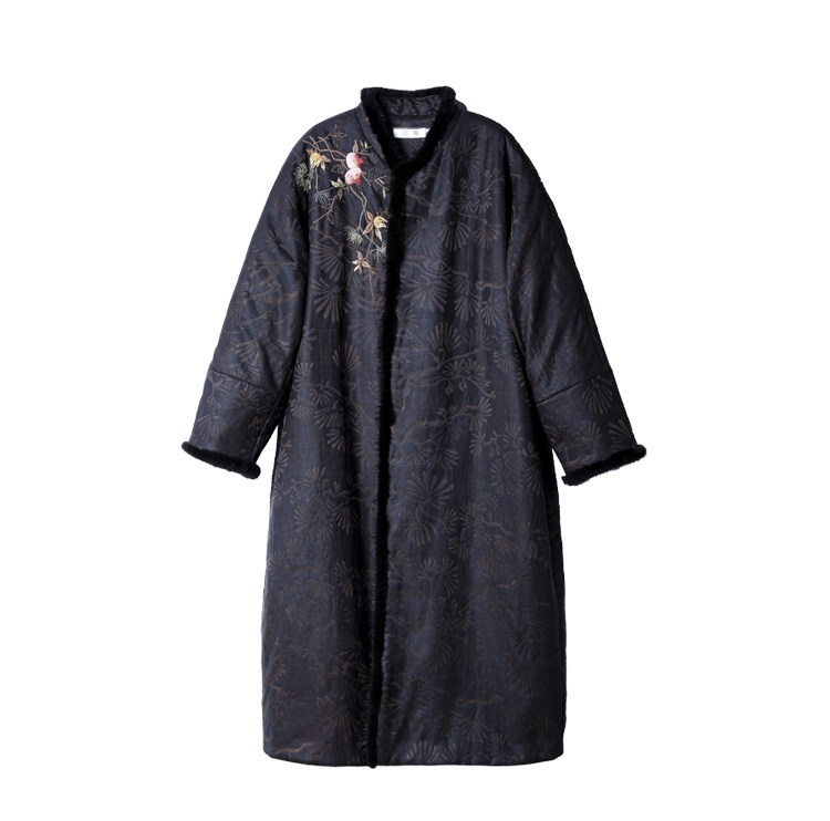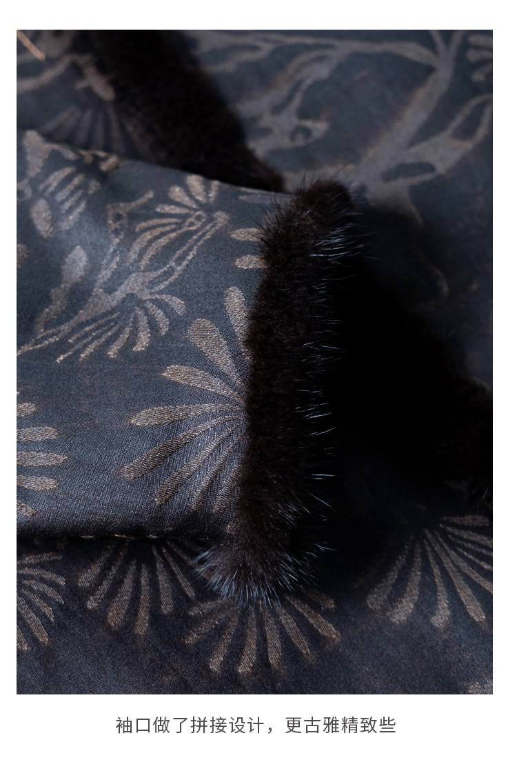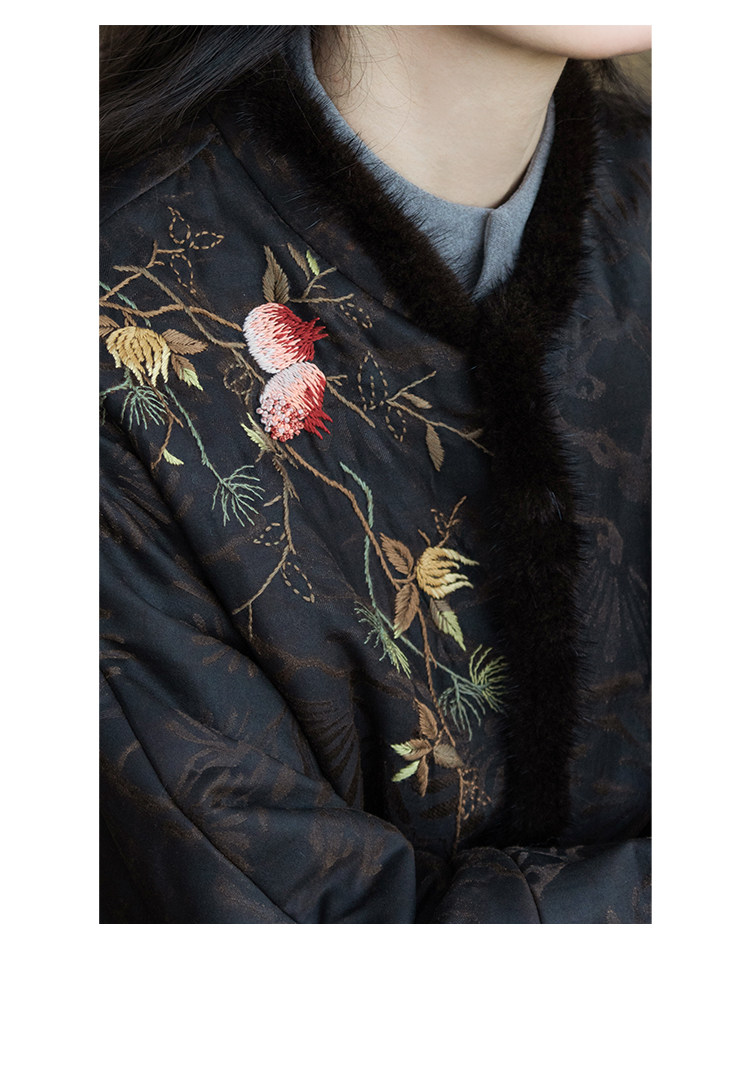 MSHK陌上兰襟【我愿是云朵】绢纺香云纱拼水貂毛夹羊毛绣花加厚棉袍