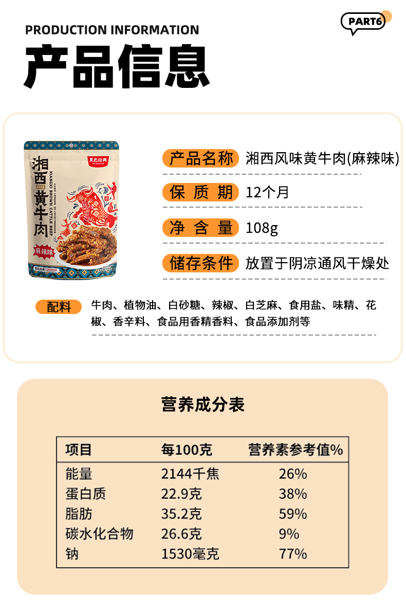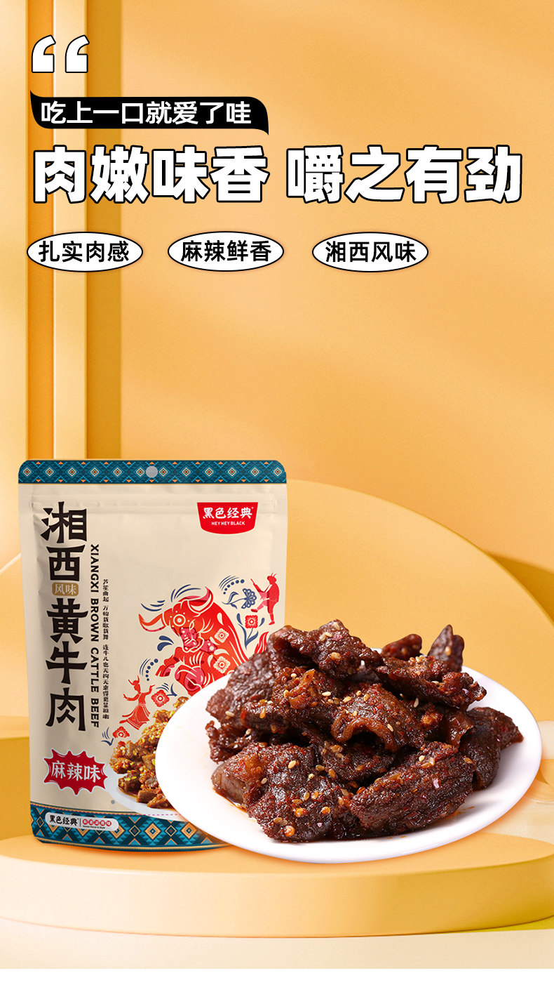 【周三会员日八折优惠】黑色经典湘西风味黄牛肉(麻辣味)108g/袋