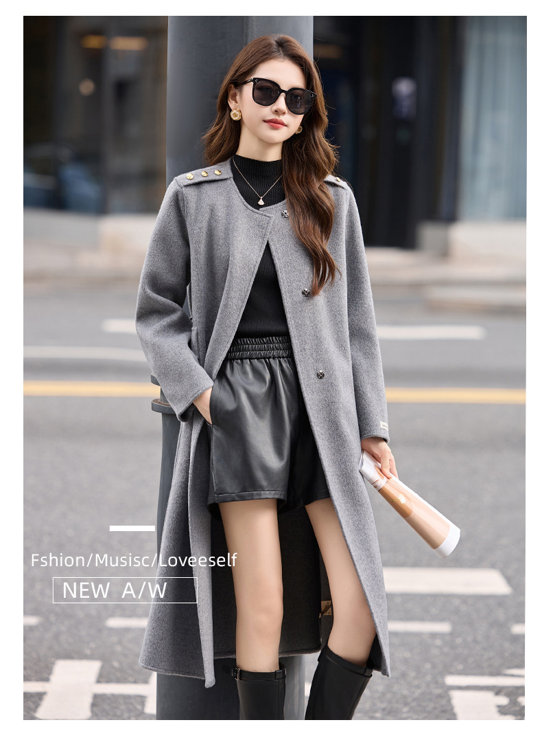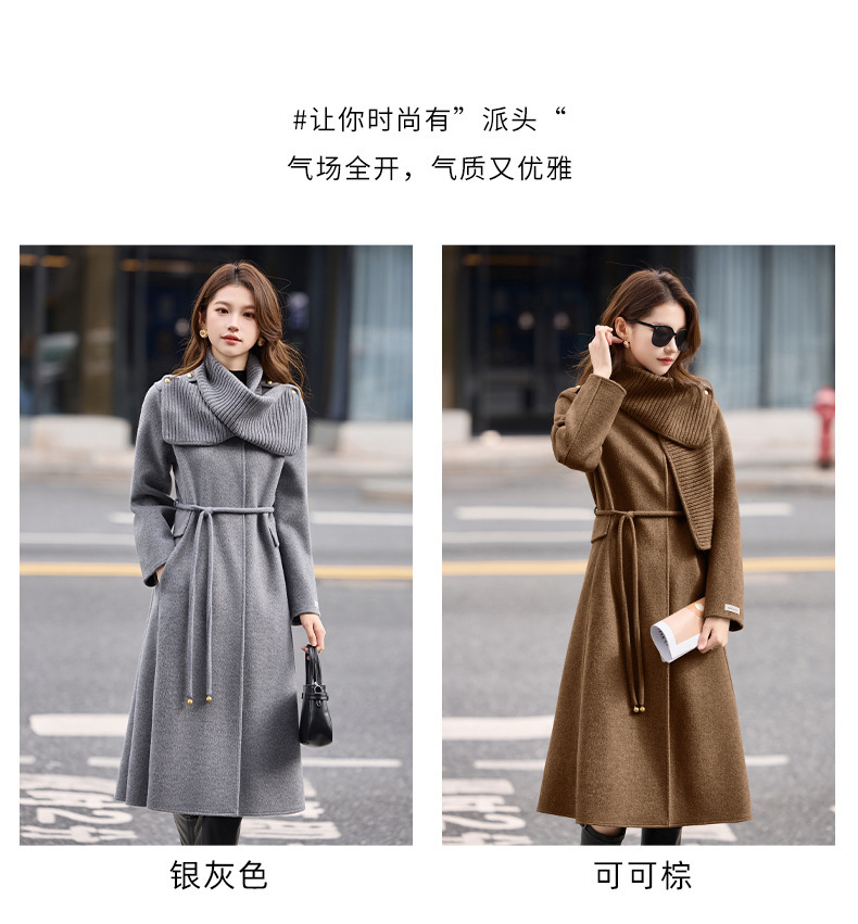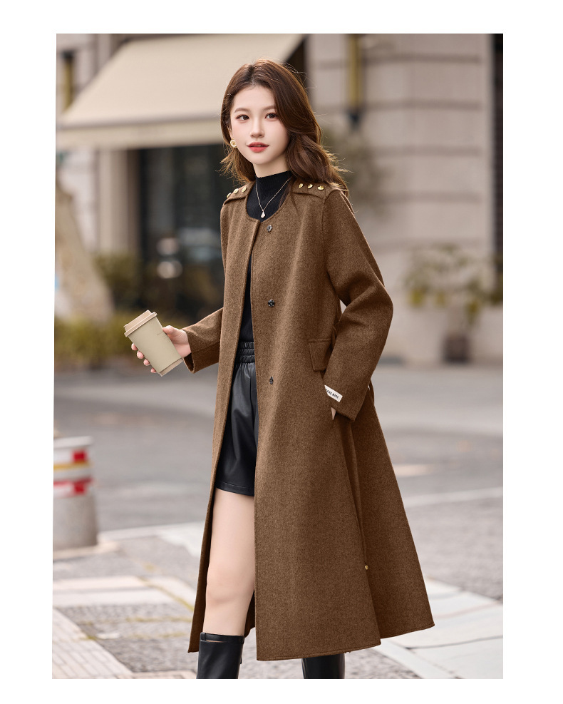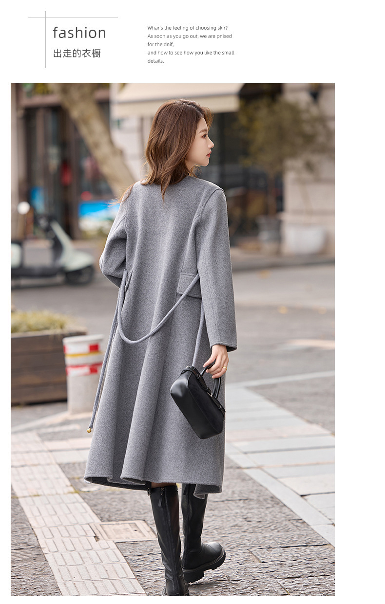 欧货缝制双面呢大衣女长款2025冬季新款气质收腰羊毛呢外套潮