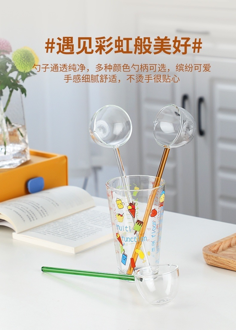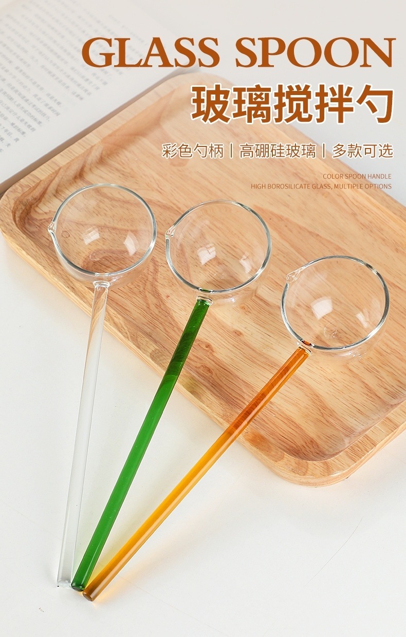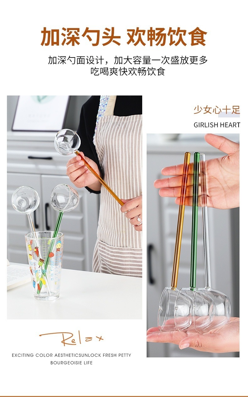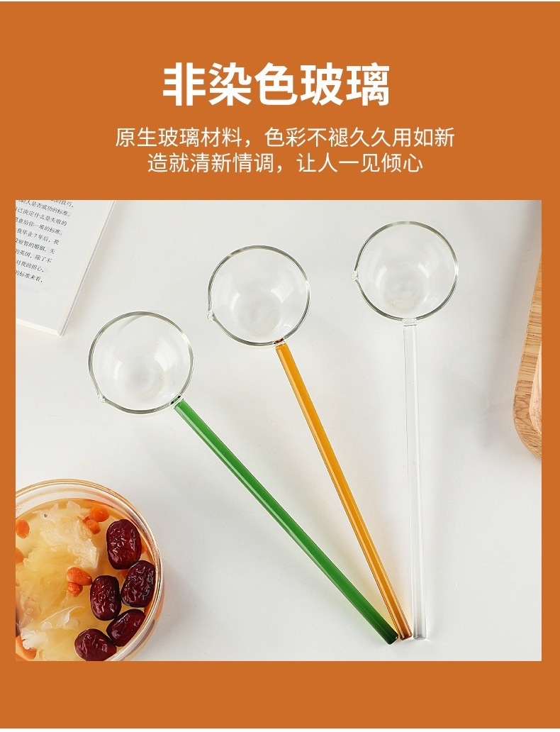 春艺/长柄彩色高硼硅玻璃分茶勺透明圆头尖嘴大号调料羹汤勺甜品勺