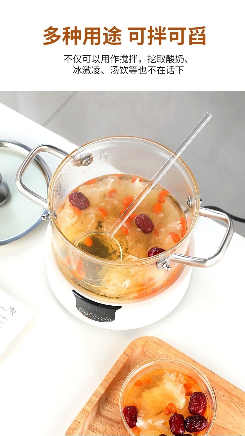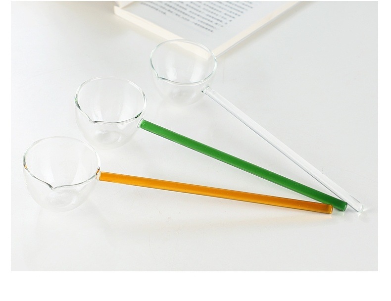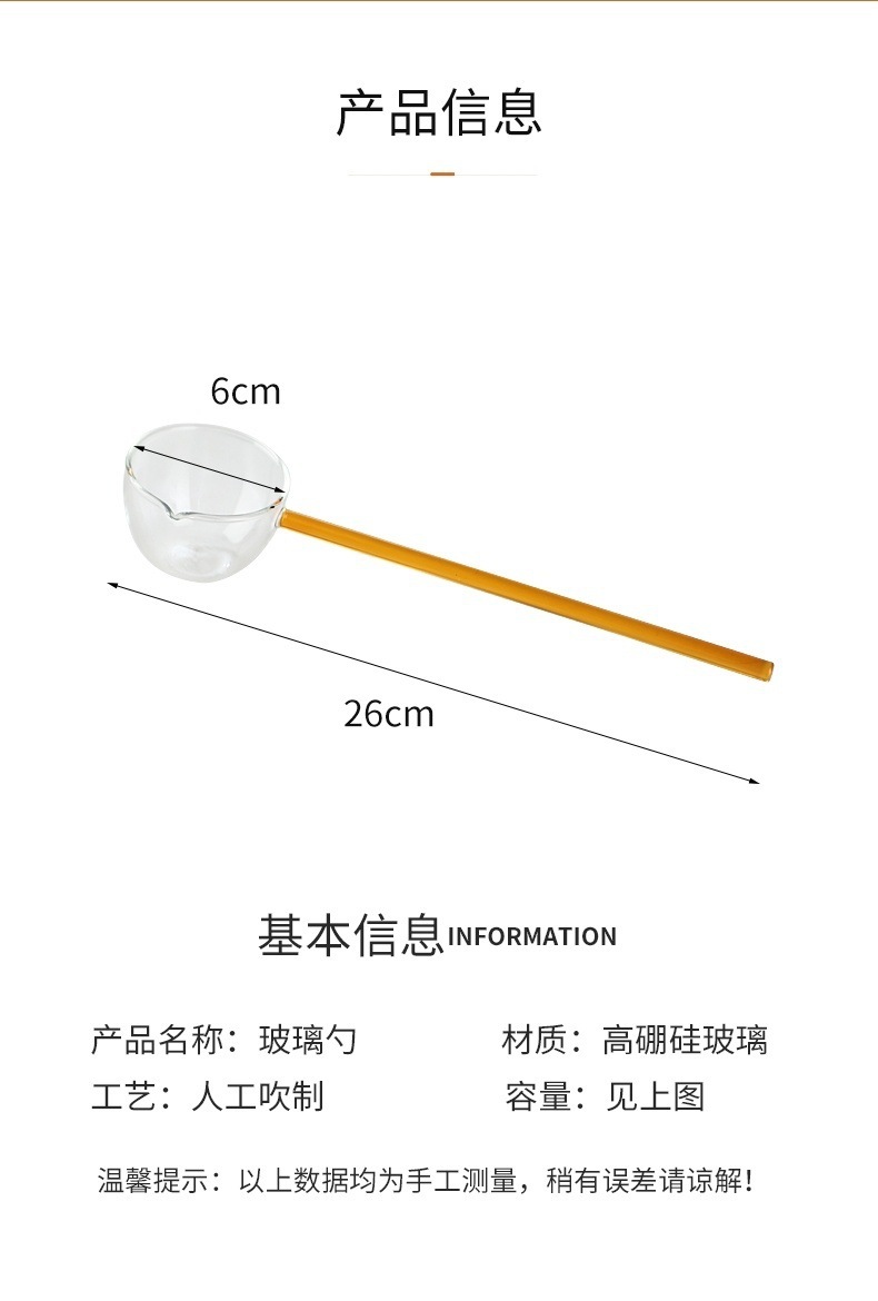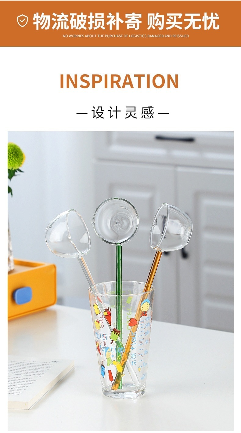 春艺/长柄彩色高硼硅玻璃分茶勺透明圆头尖嘴大号调料羹汤勺甜品勺
