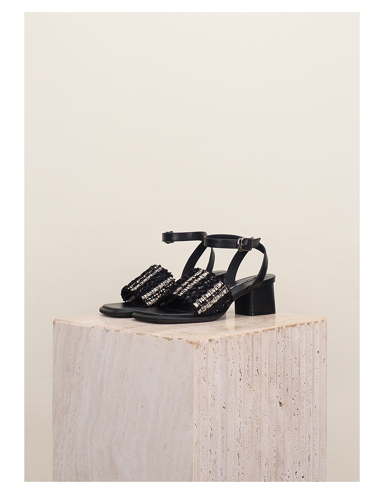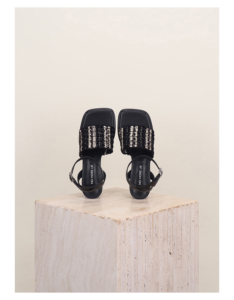 直述NOMORELIE 中跟编织带凉鞋