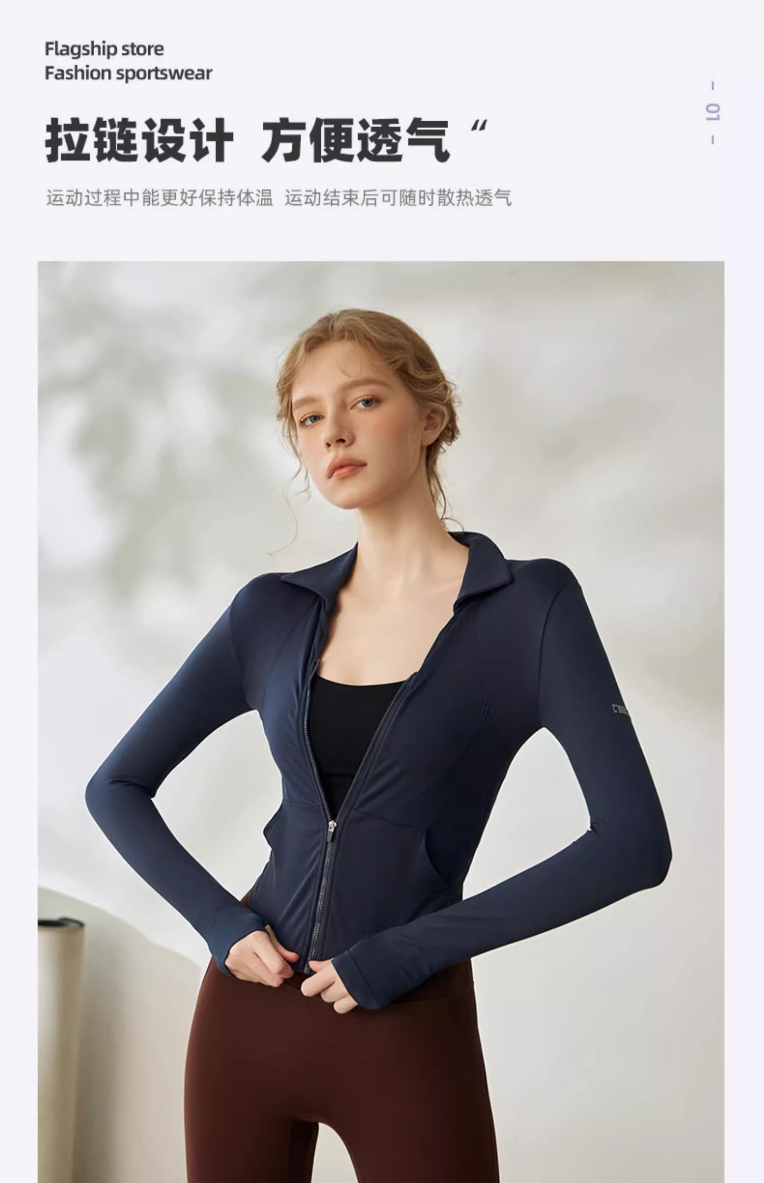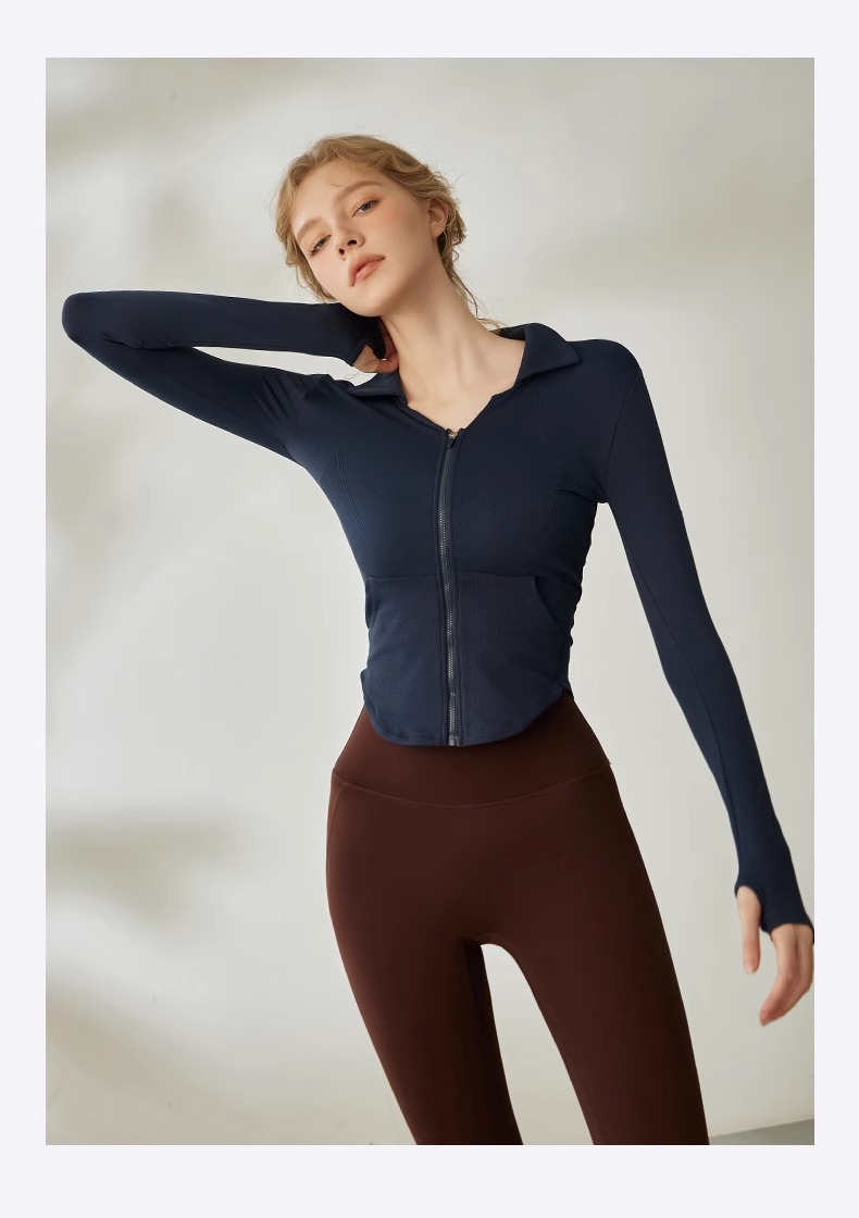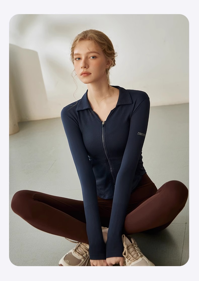 Gymicon能量符号 秋冬新款莱卡V领拉链运动户外健身瑜伽服YASY2233