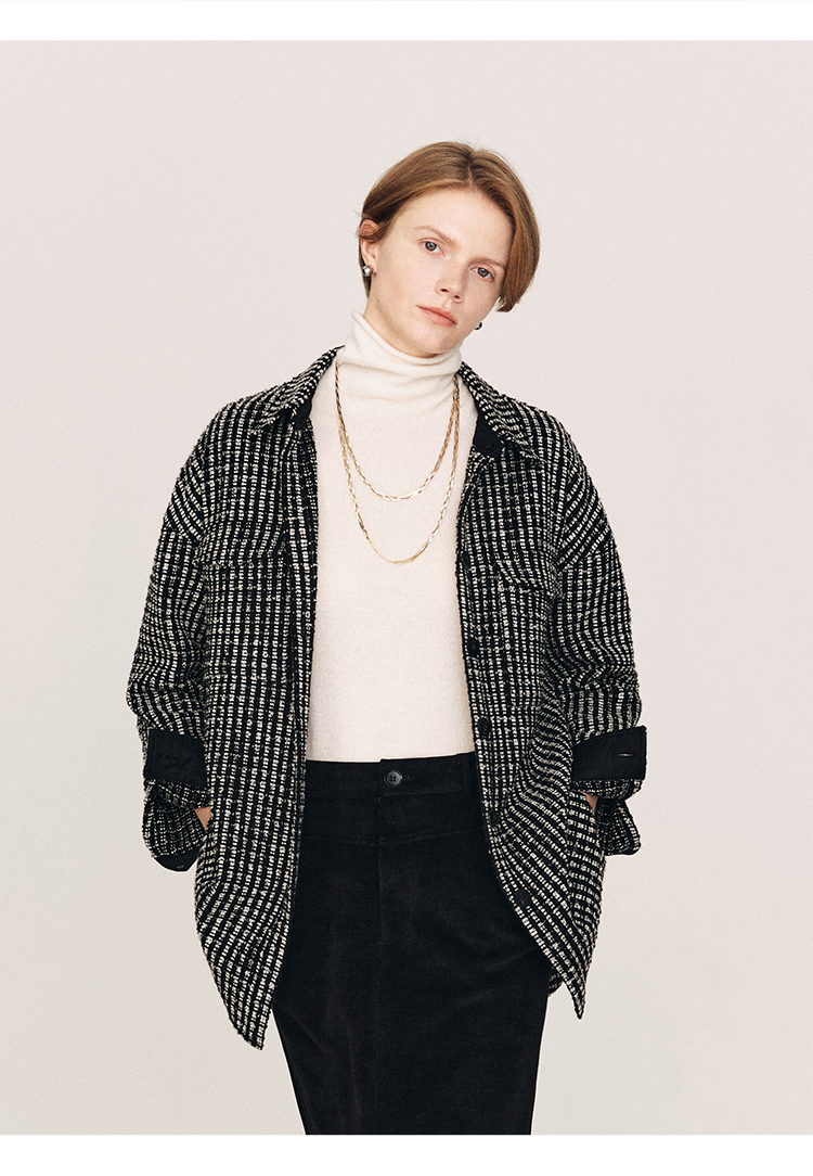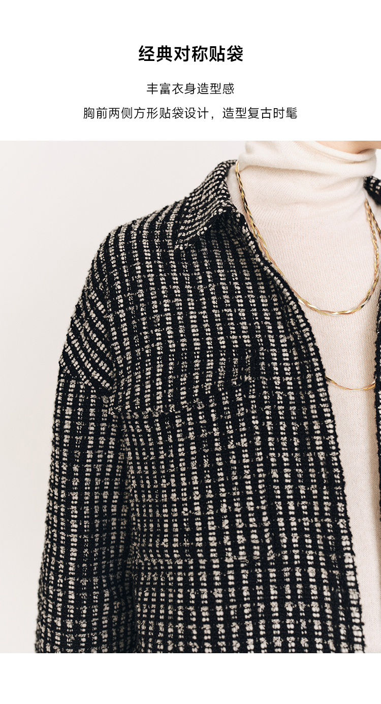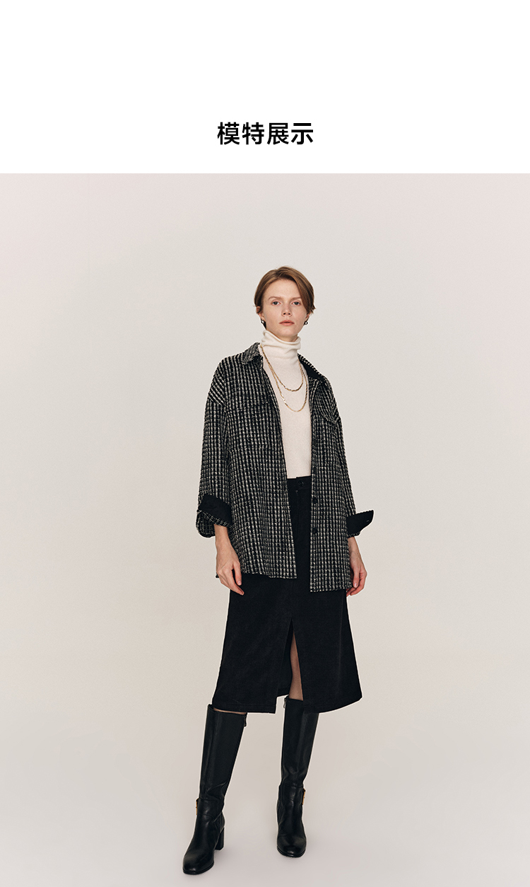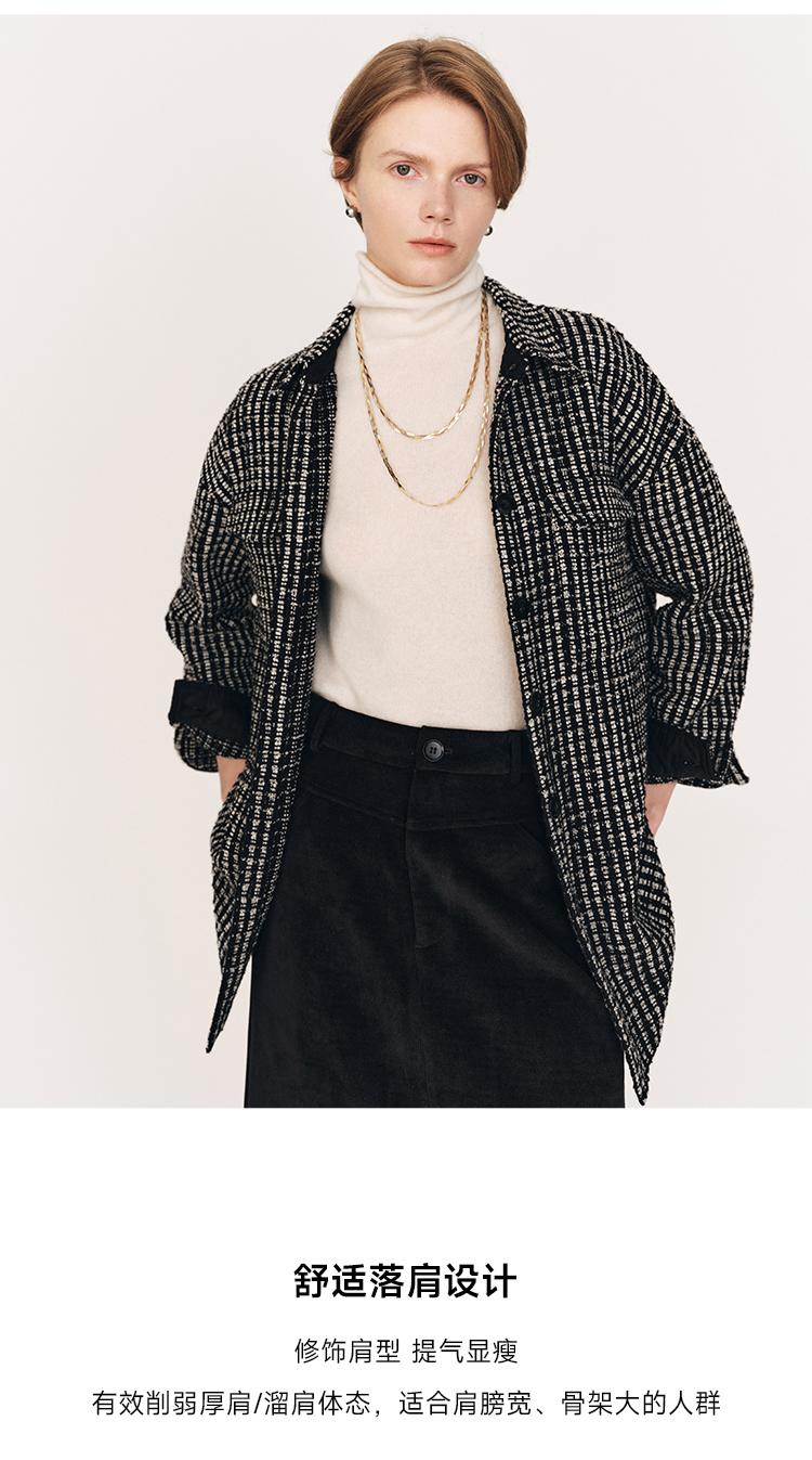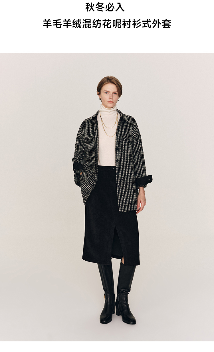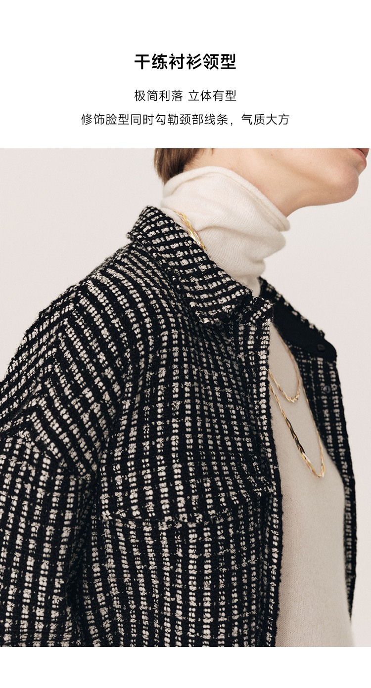 秋冬必入 羊毛羊绒混纺花呢衬衫式外套FJ474523D