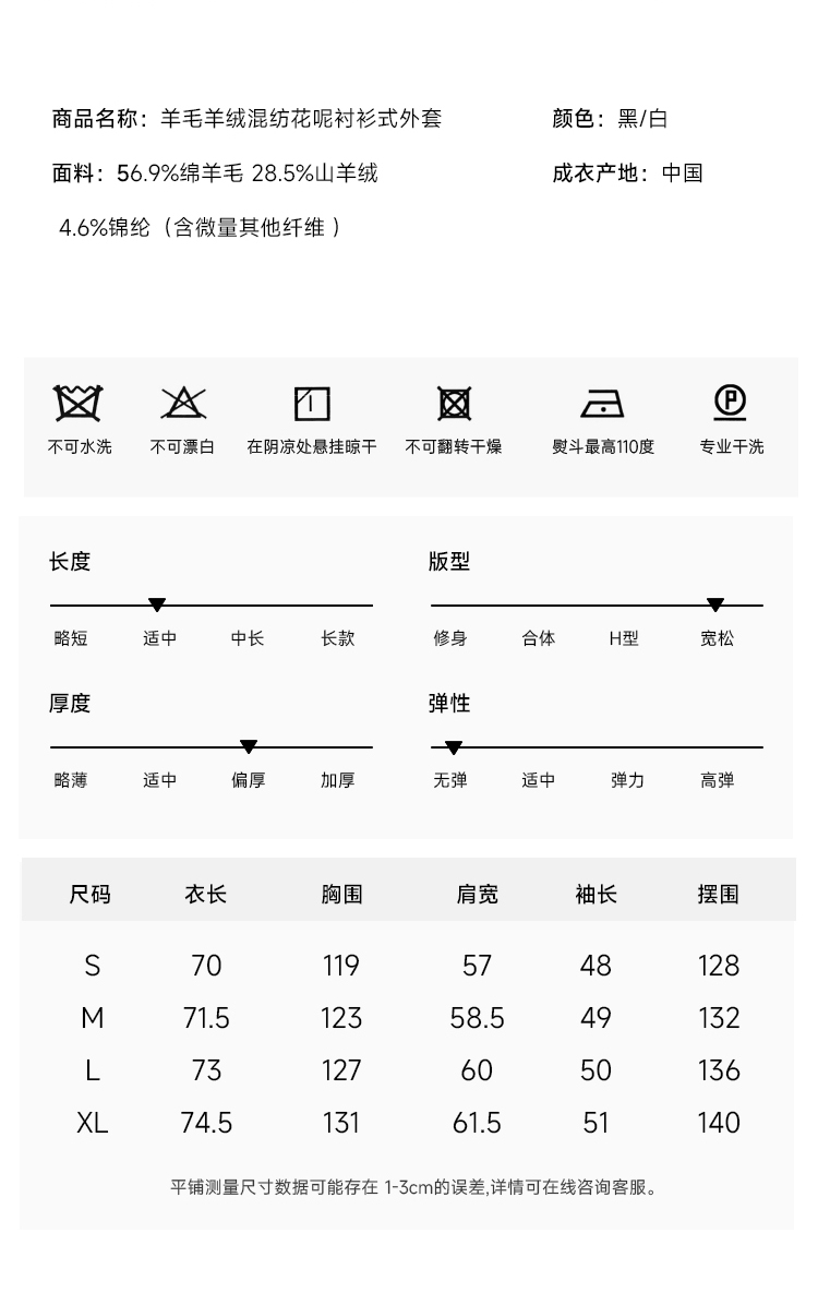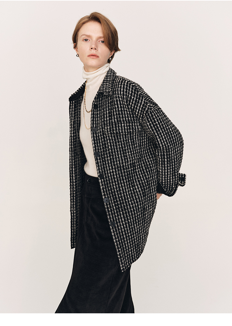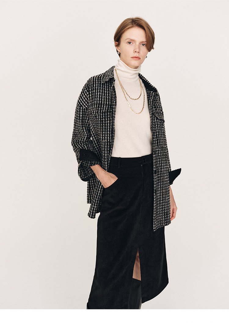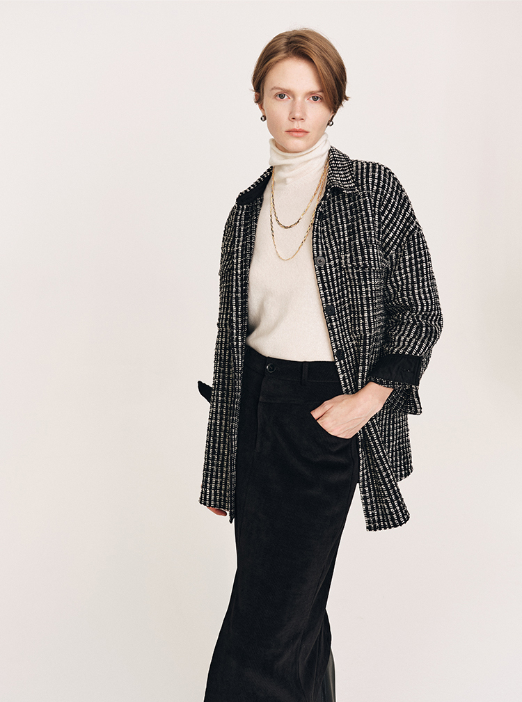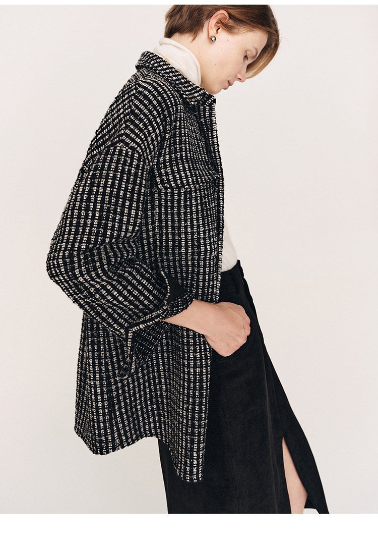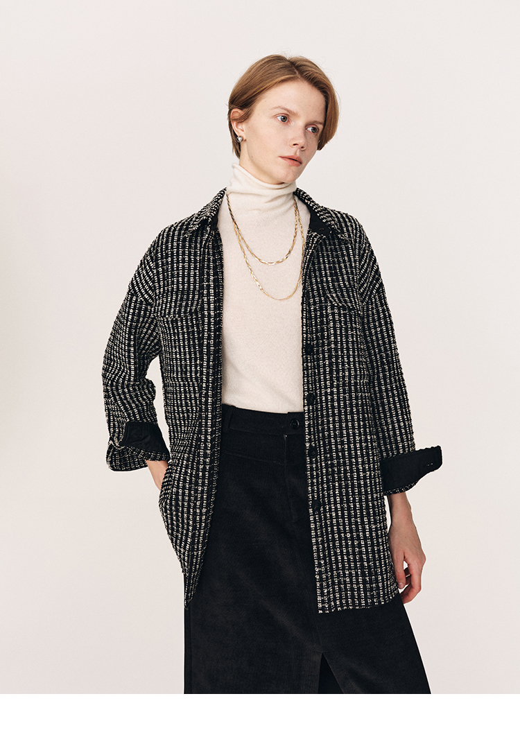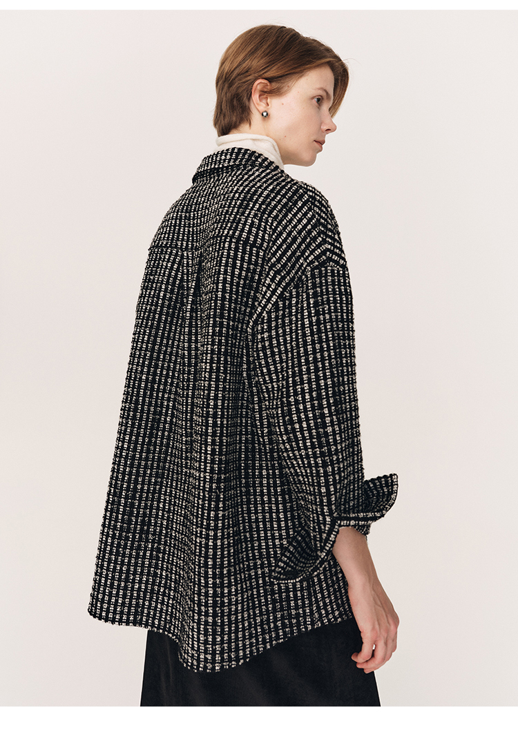 秋冬必入 羊毛羊绒混纺花呢衬衫式外套FJ474523D