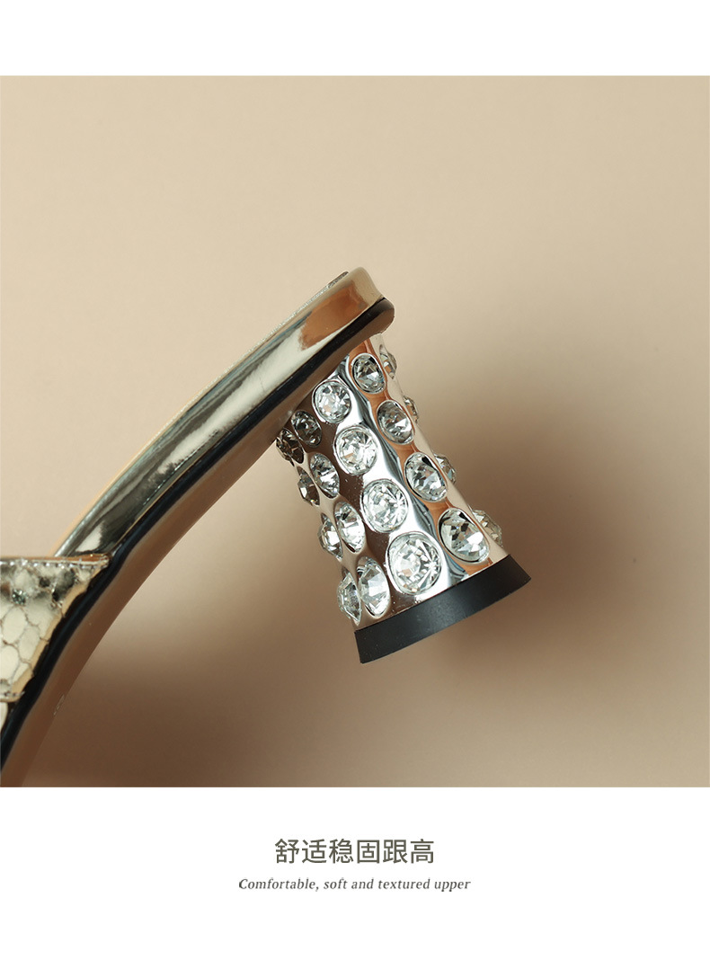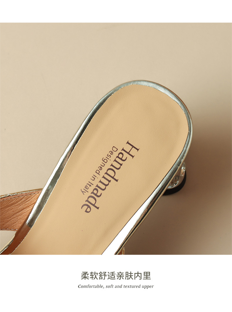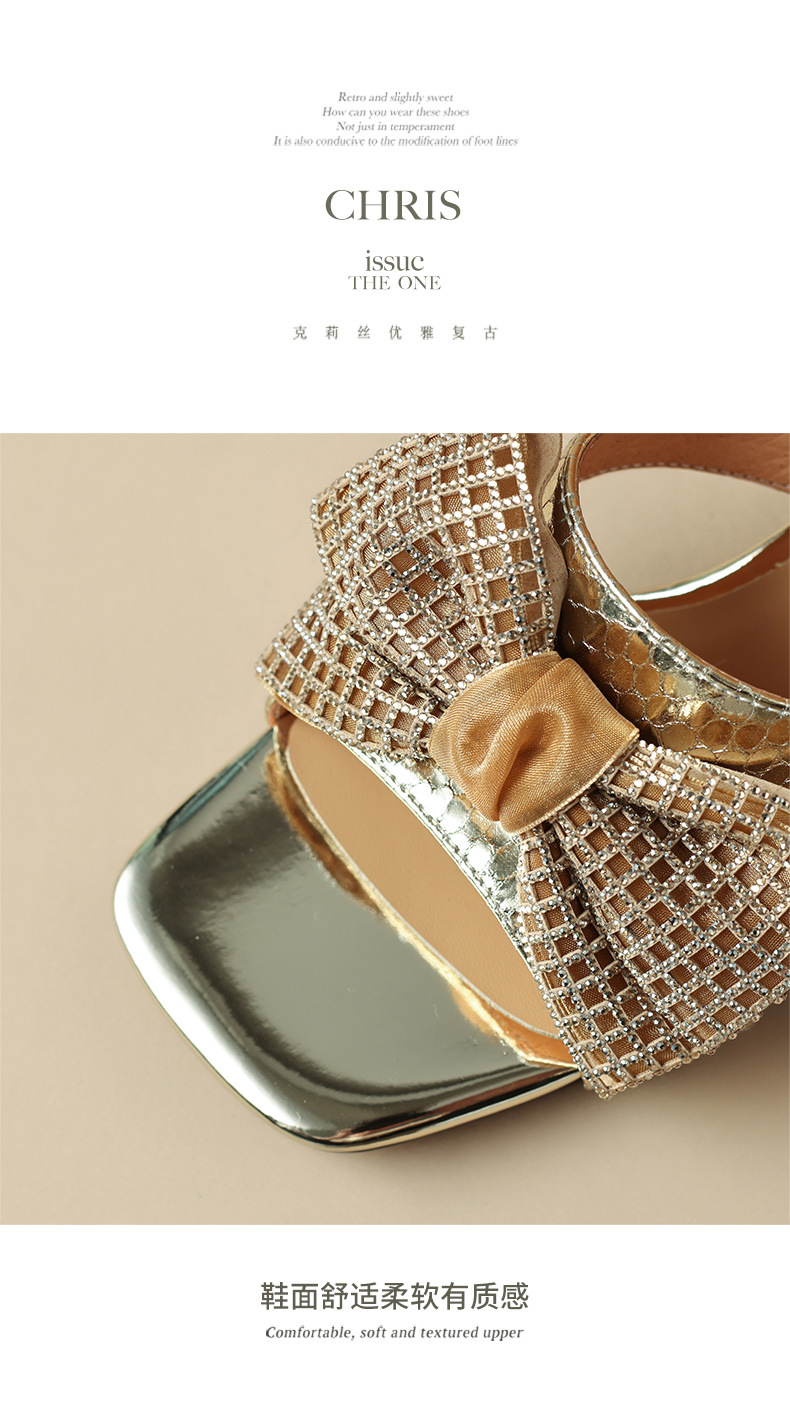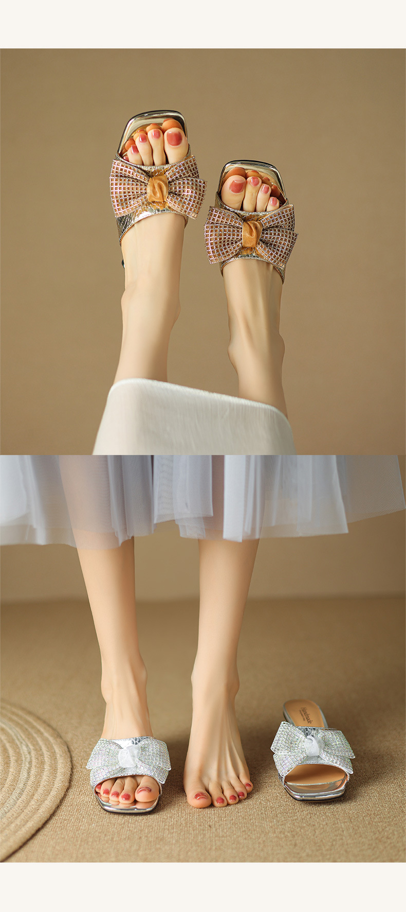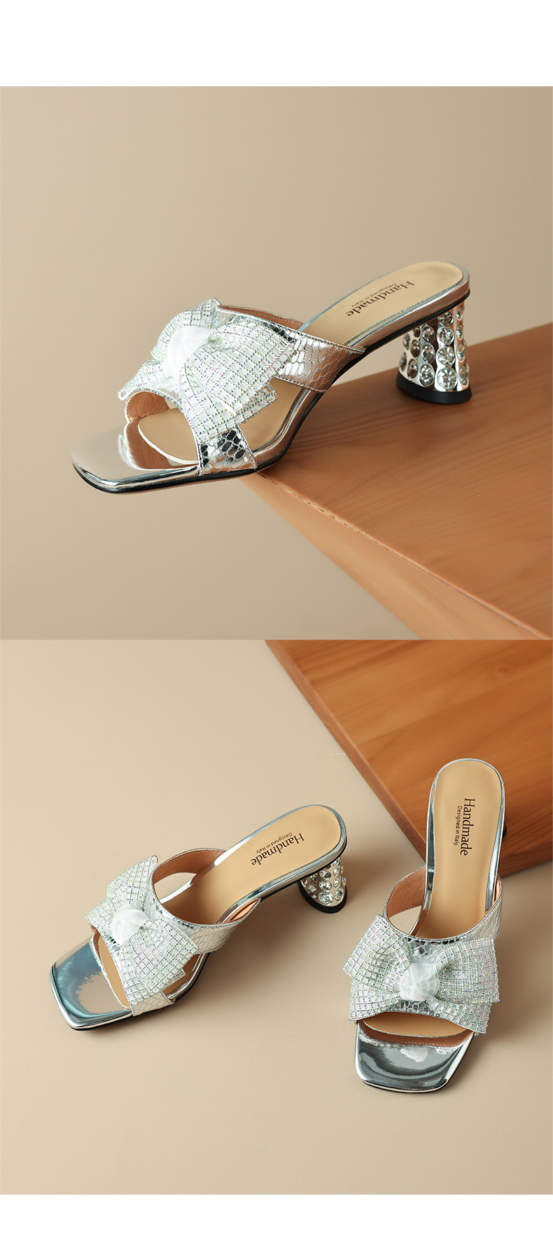 春夏新款,外穿法式蝴蝶结露趾粗跟5cm仙女风一字凉拖鞋LD-6335