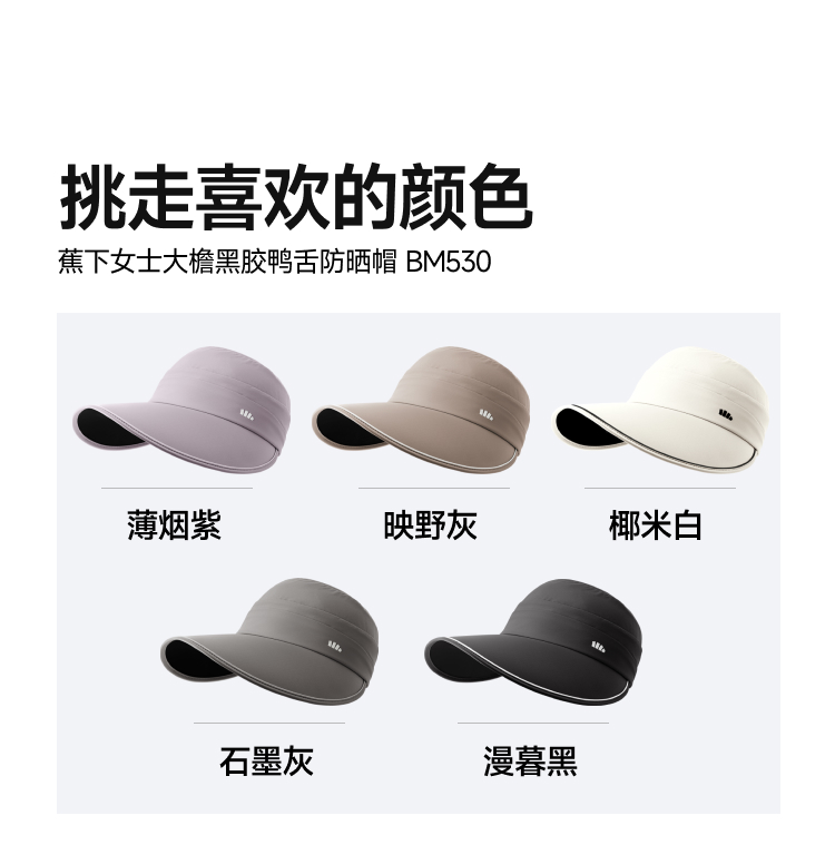 【26春夏新品】蕉下女士大檐黑胶鸭舌防晒帽BM530