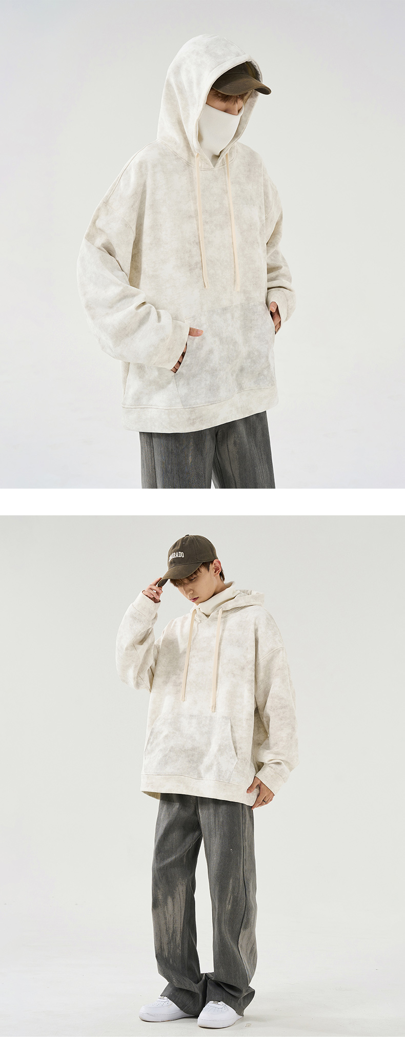 【加绒】【新款DSY】大依优型大码加绒连帽扎染卫衣长袖加肥加大休闲运动上衣男打底衫胖子冬季保暖