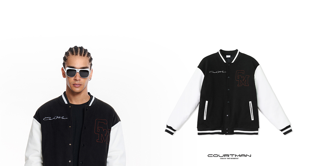 COURTMAN野球帝 篮球梦抓绒重磅字母棒球服潮牌夹克欧美街头外套