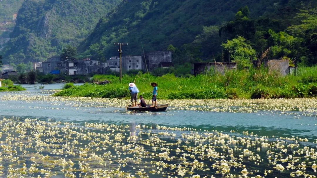 待到每年的4月末-10月就是海菜花的花期,成片的海菜花漂浮在水面,因而被称为会“开花的河”。