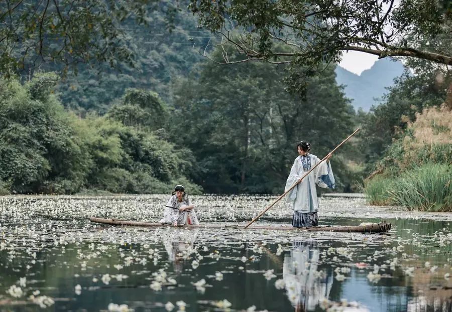 (4-10月开花期,小伙伴可以在这里戏水、租个浆板畅游在这条会开花的河之上,海菜花受天气影响,开放程度、数量、颜色等均以实物为准,旅行社不保证能看到海菜花,敬请谅解)