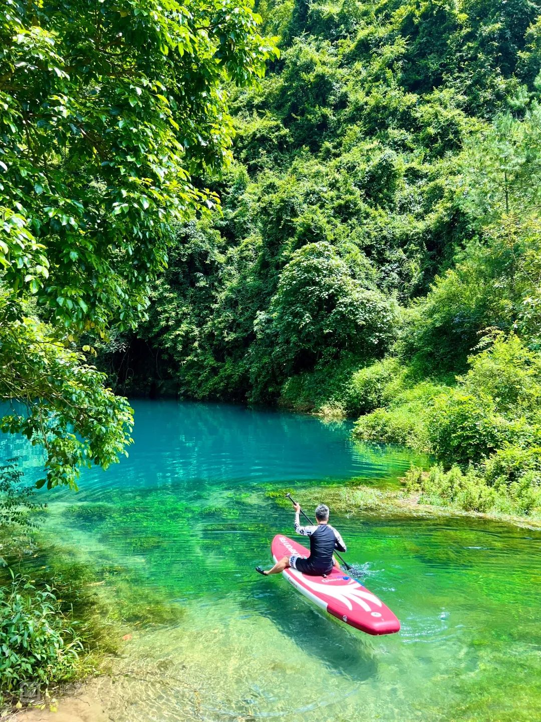 11:00-17:00 租个桨板畅游在碧绿的红水河之中,沿途两岸风景十分优美。一路游玩拍照,这里水质清澈,如果冻般透明,沿红水河水流而下,还观赏到请澈河水中蓝刀鱼群宛如水里的精灵来回游弋~(桨板自费)