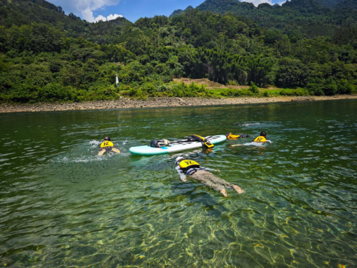 每到夏天就会有特别多的年轻人会来到这里玩浆板,清澈的水让浆板似漂浮在空中,特别神奇。