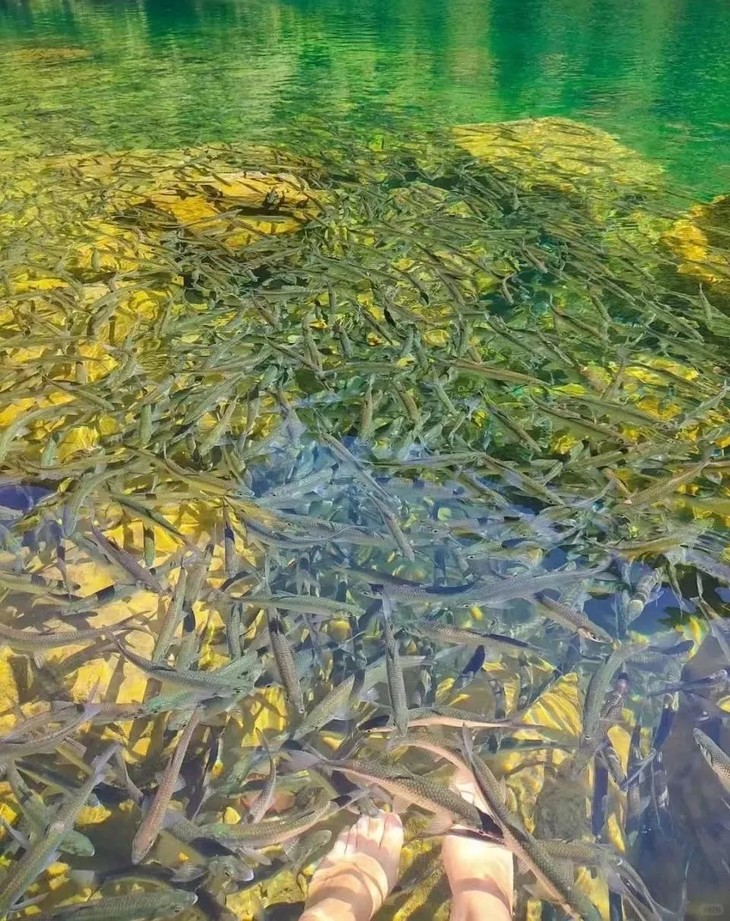 投喂鱼群,馒头饼干都可以跳水游泳潜水人体漂流等