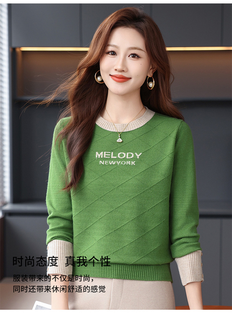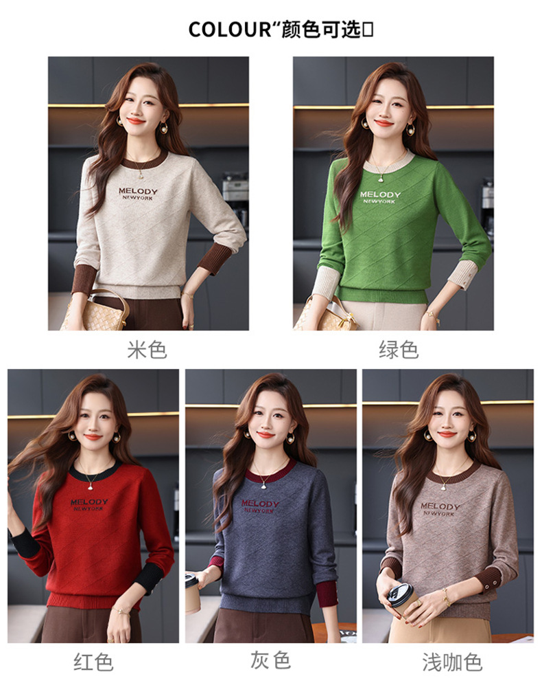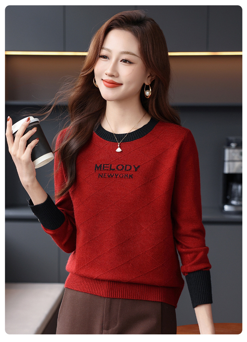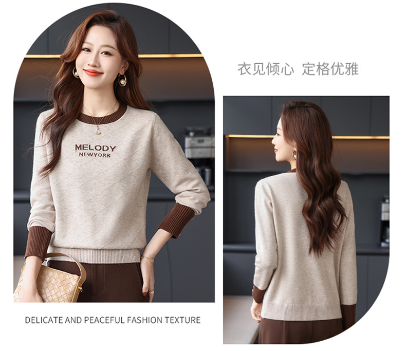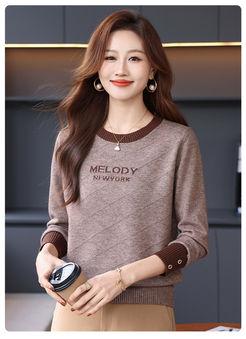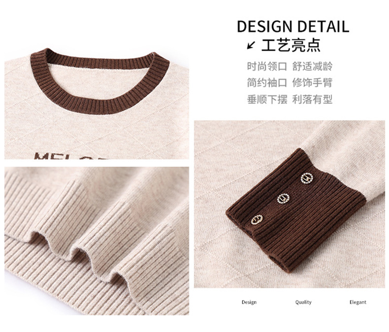 CC 89-881洋气字母格子针织衫圆领显瘦宽松毛衣