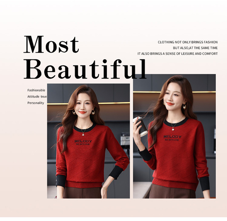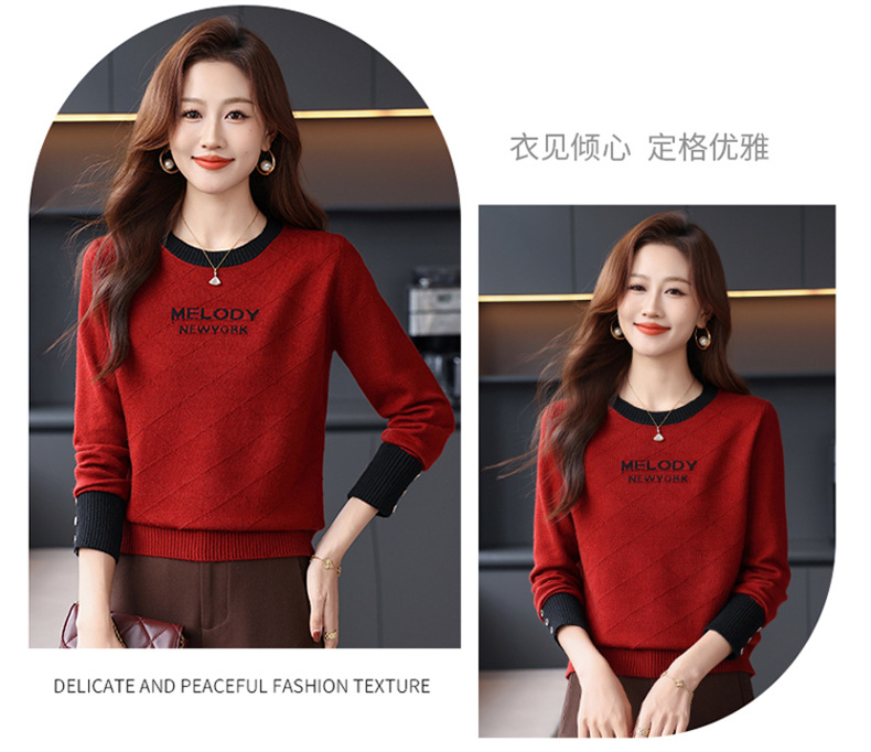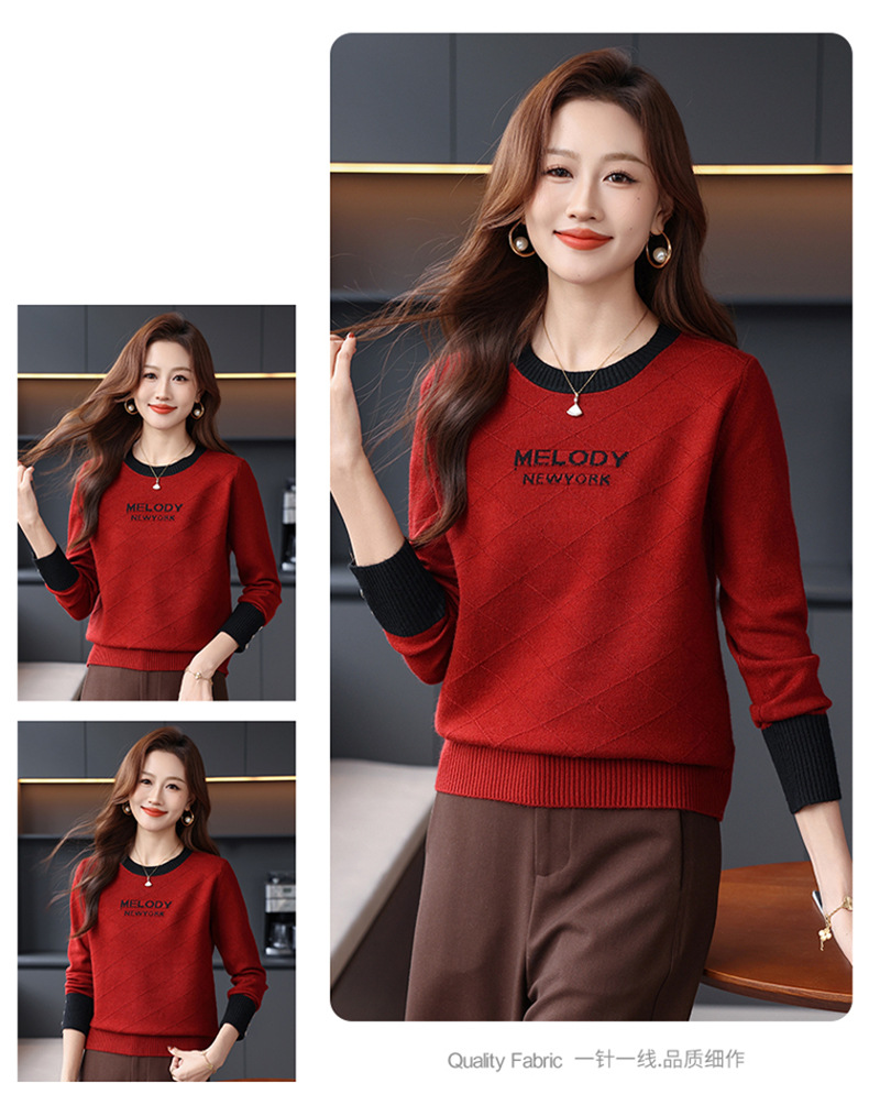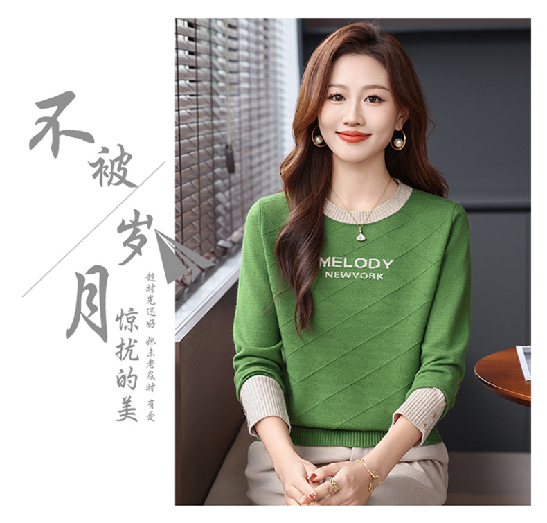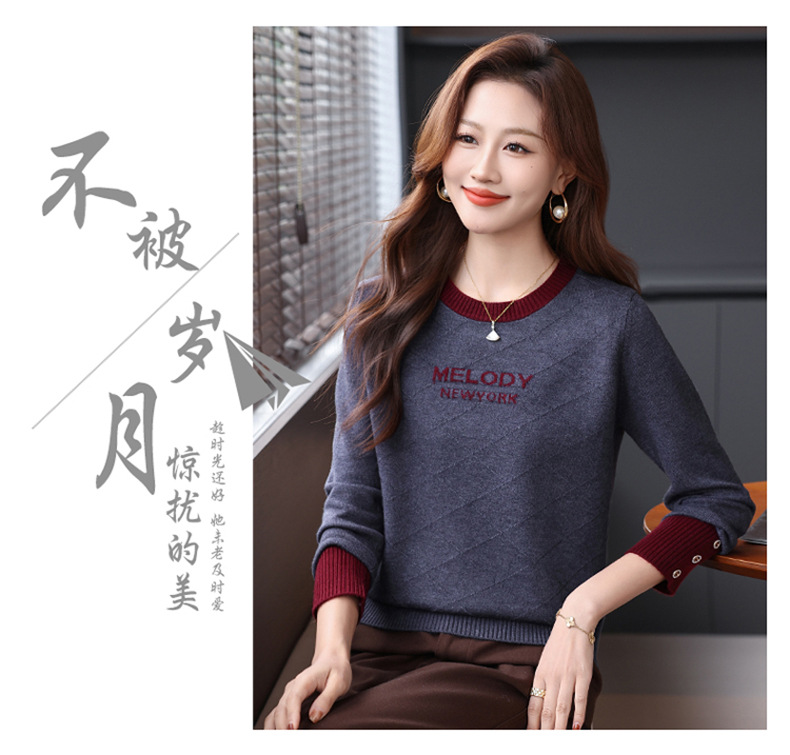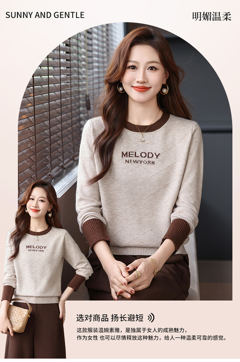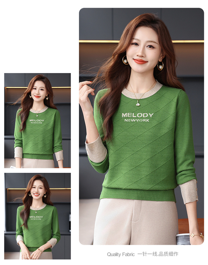 CC 89-881洋气字母格子针织衫圆领显瘦宽松毛衣