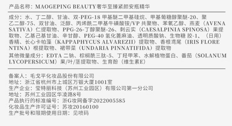 毛戈平BEAUTY奢华至臻紧颜安瓶精华套盒(5ml/支*6)