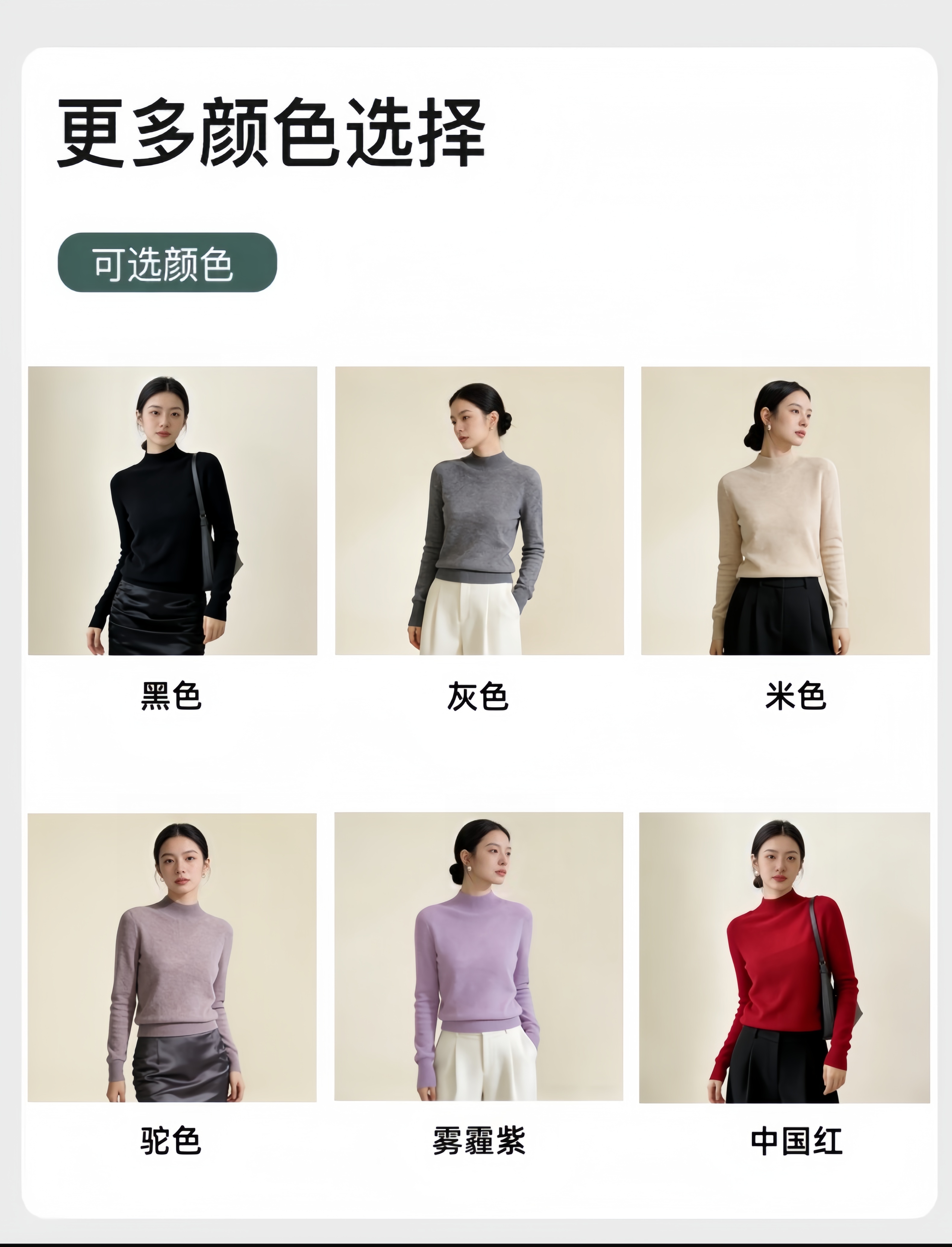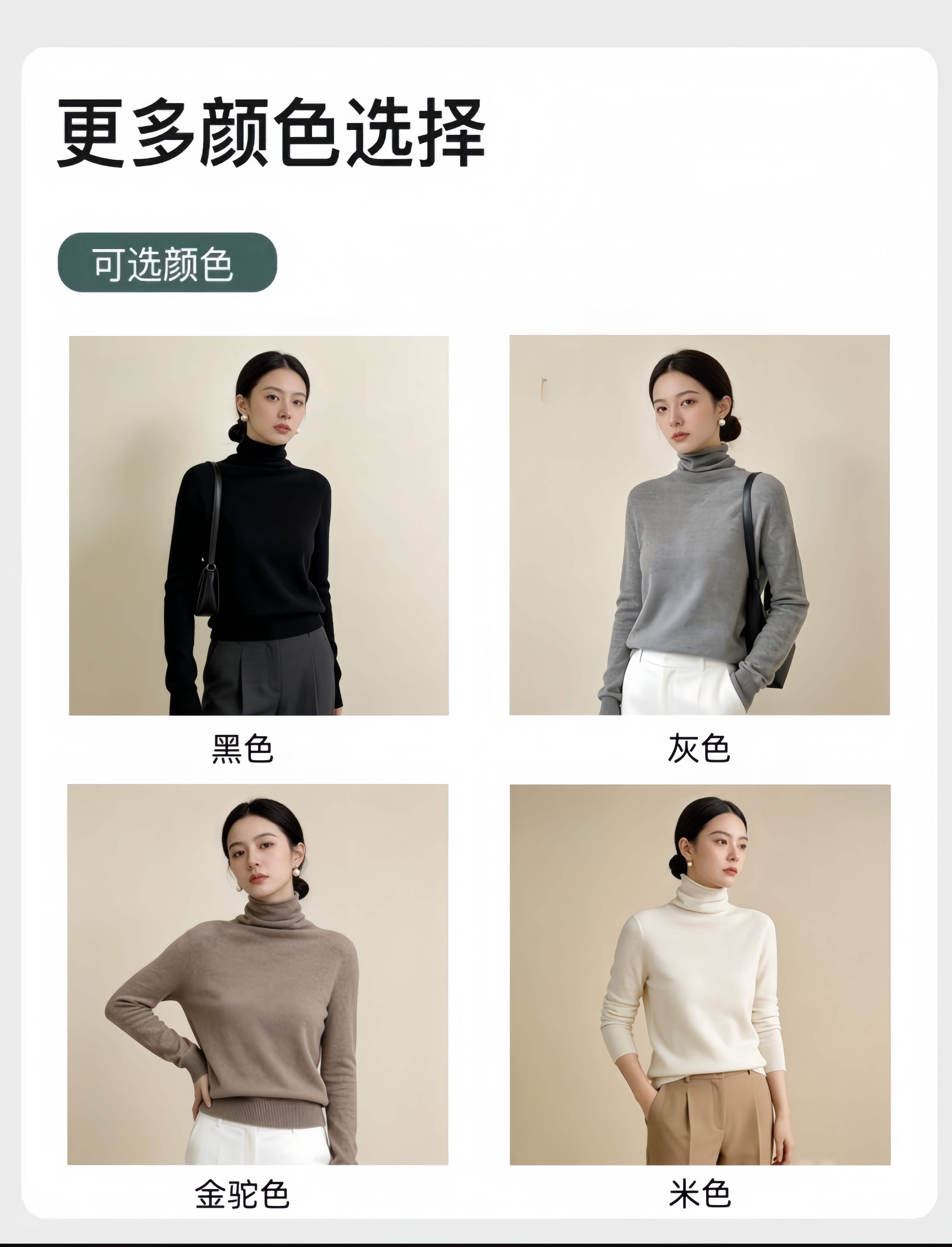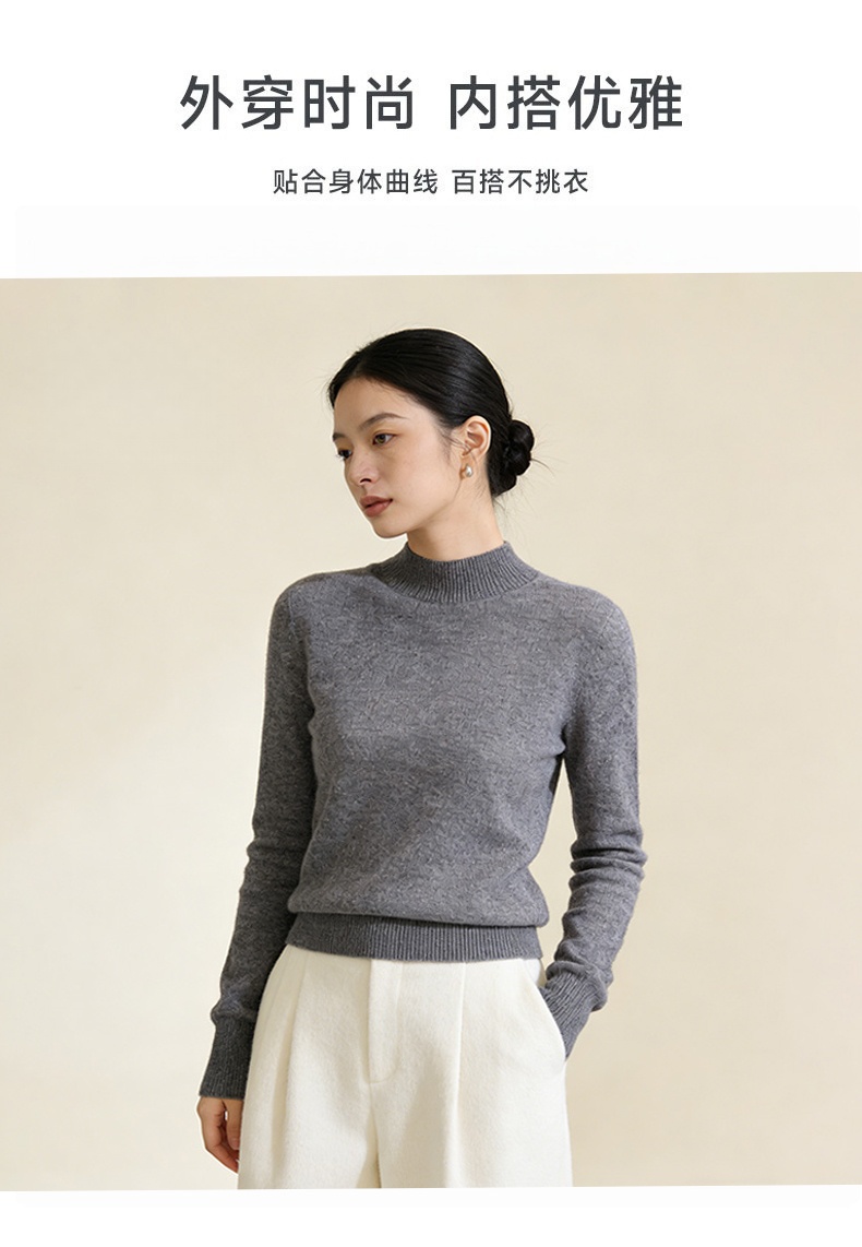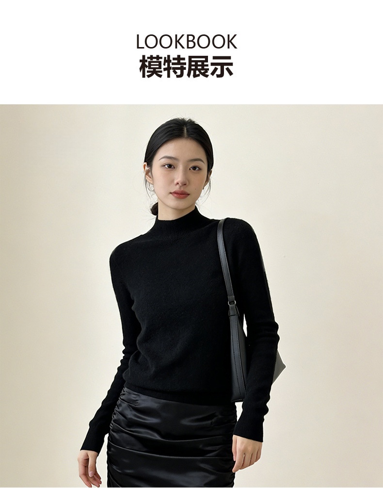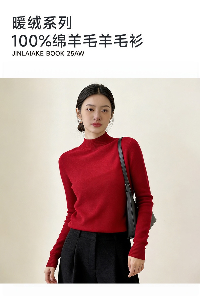 金莱克 2025冬新款内搭打底纯色百搭半高领*堆堆领绵羊毛衫