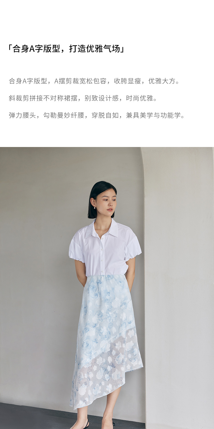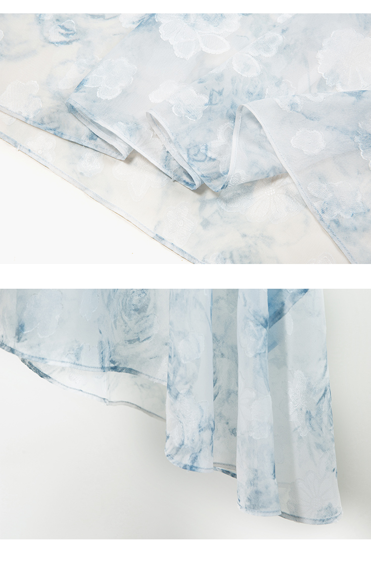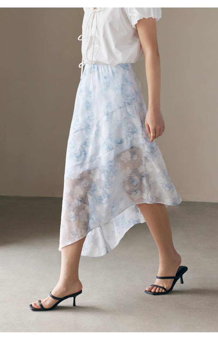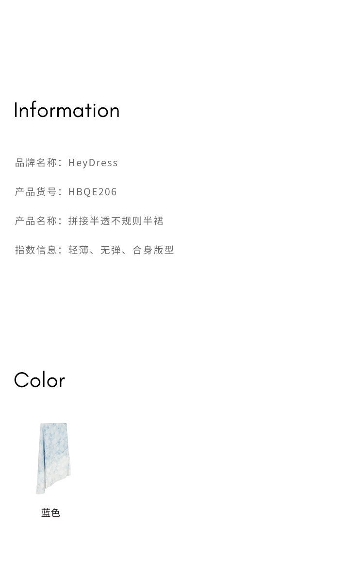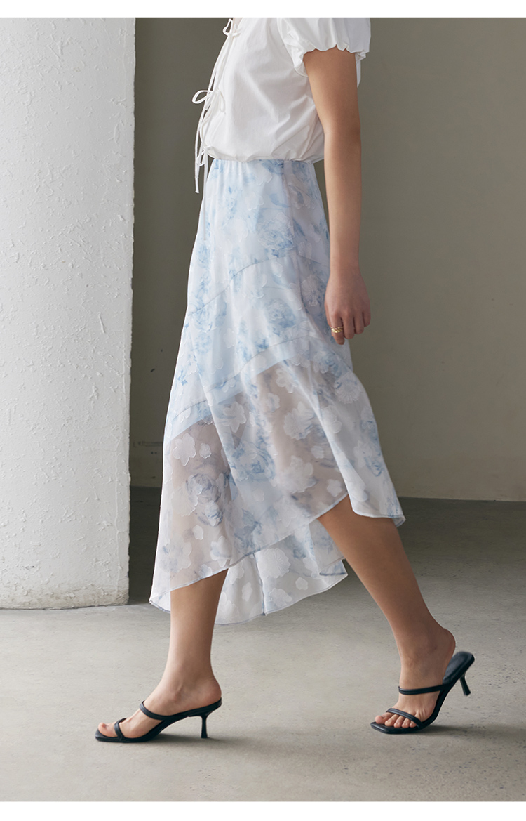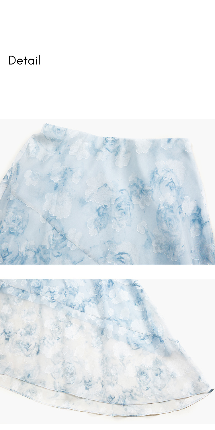 HeyDress蓝色晕染印花半身裙女高腰剪花不规则半透设计感半裙子