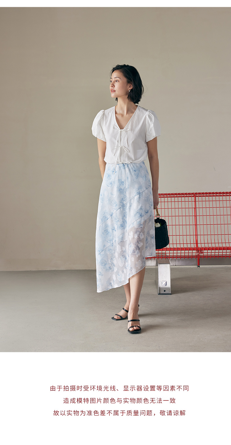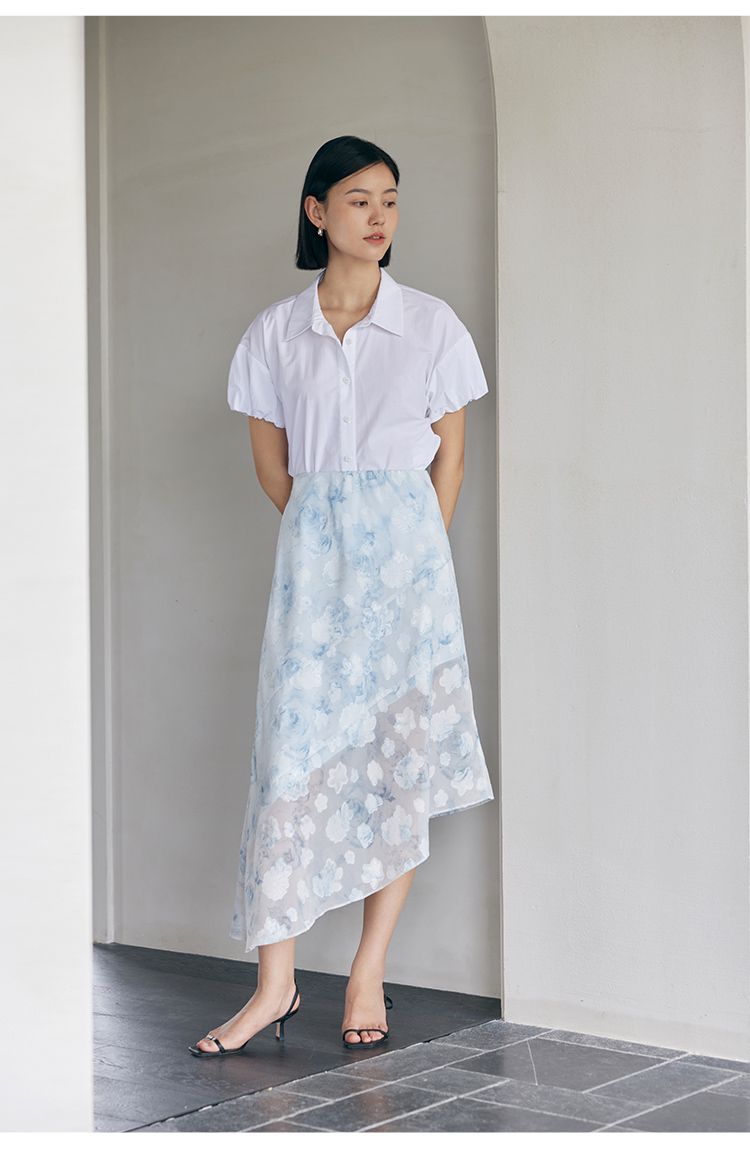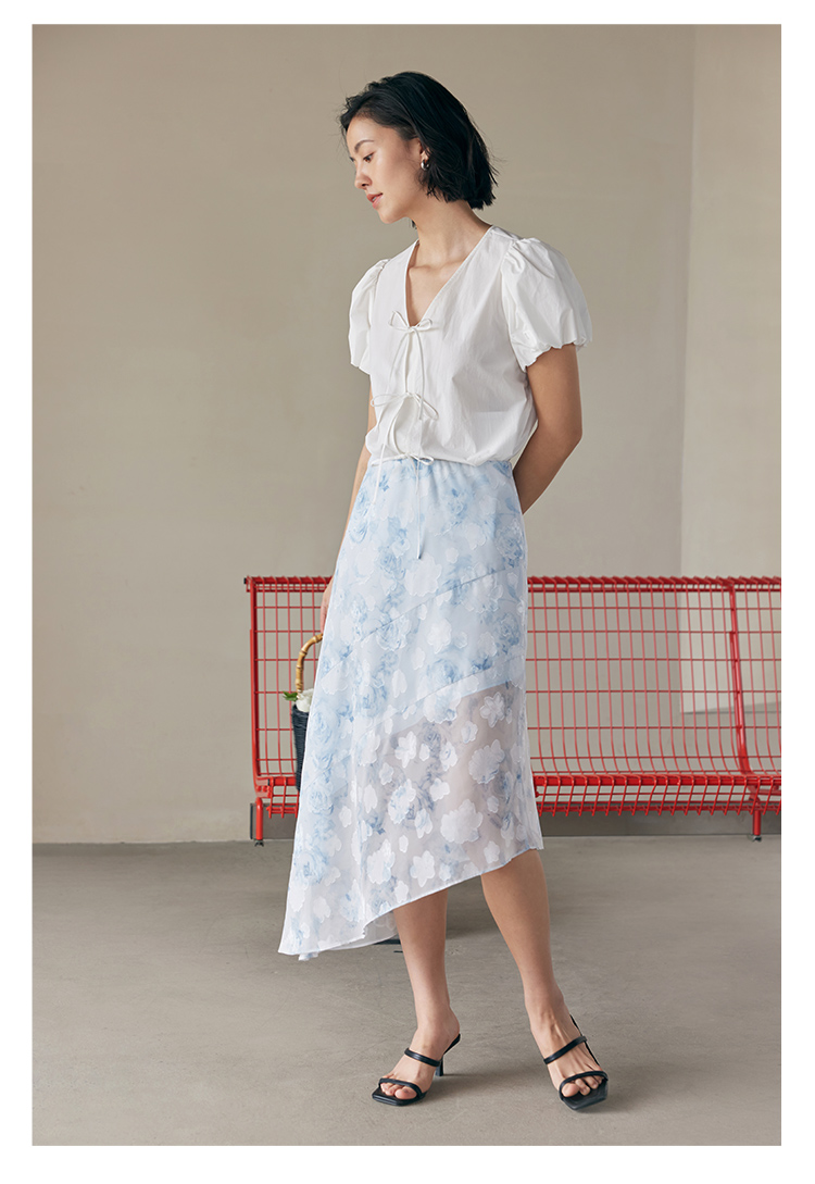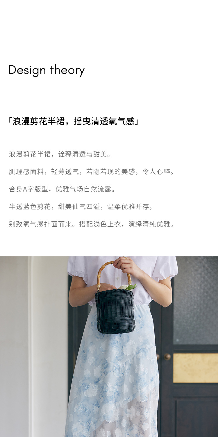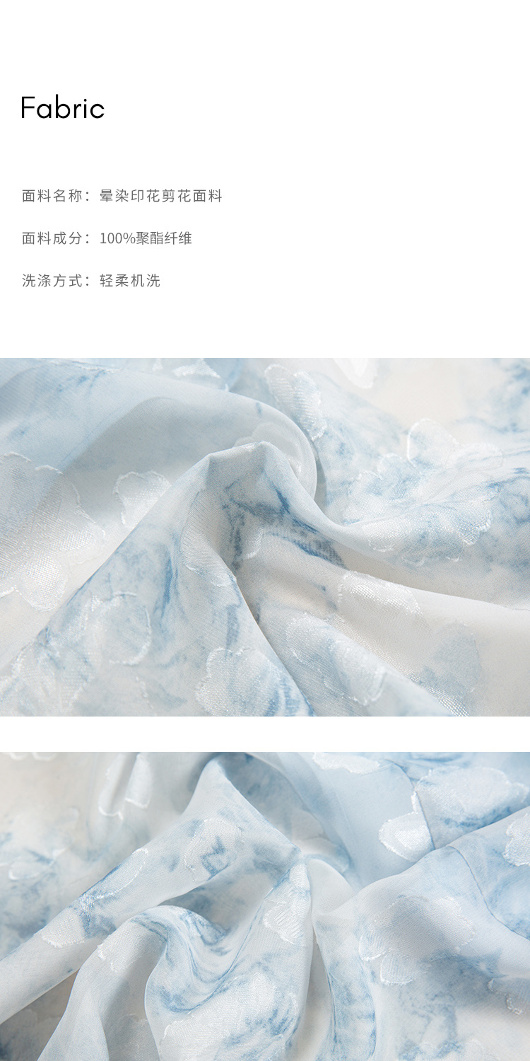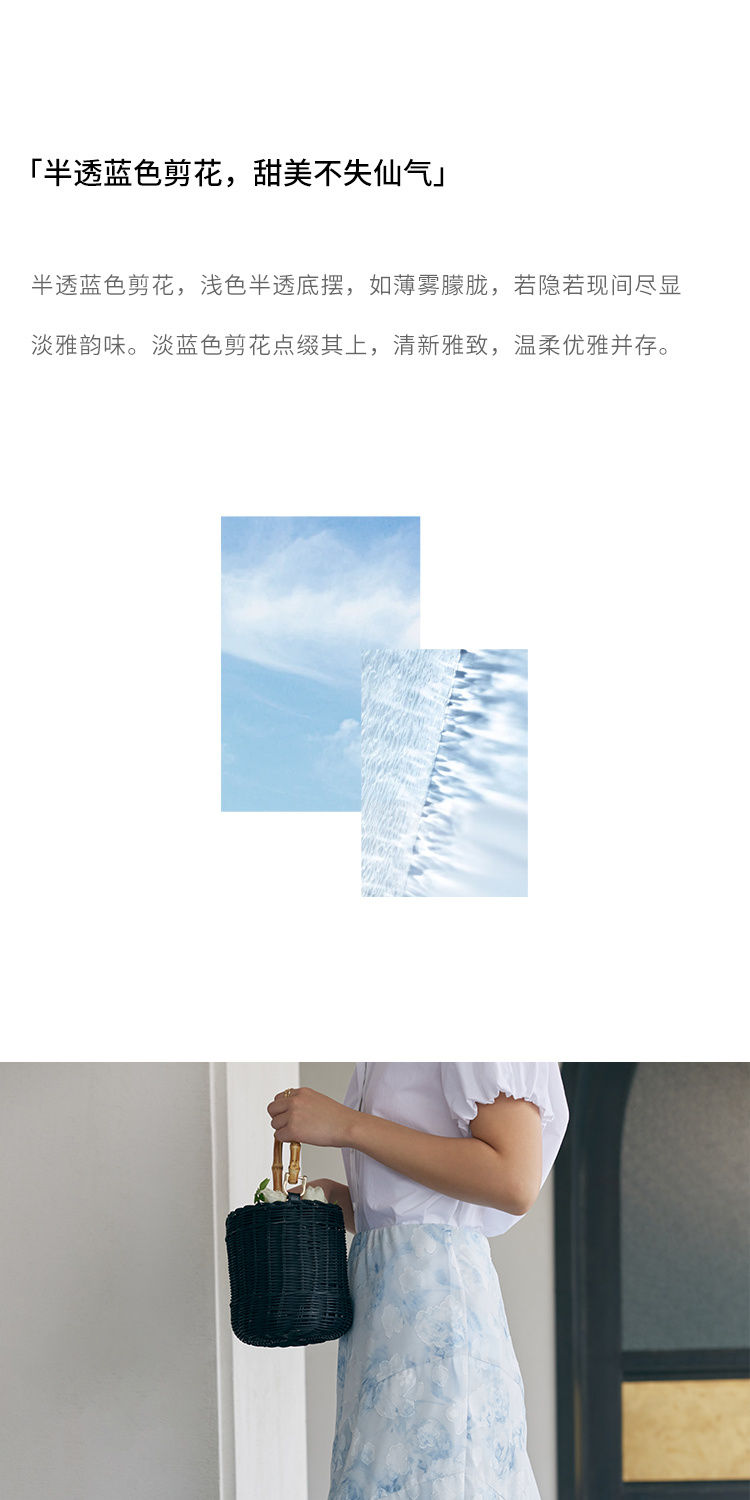 HeyDress蓝色晕染印花半身裙女高腰剪花不规则半透设计感半裙子