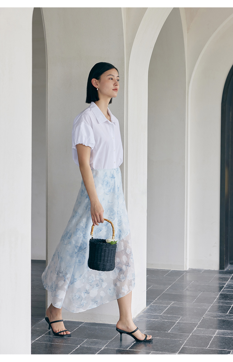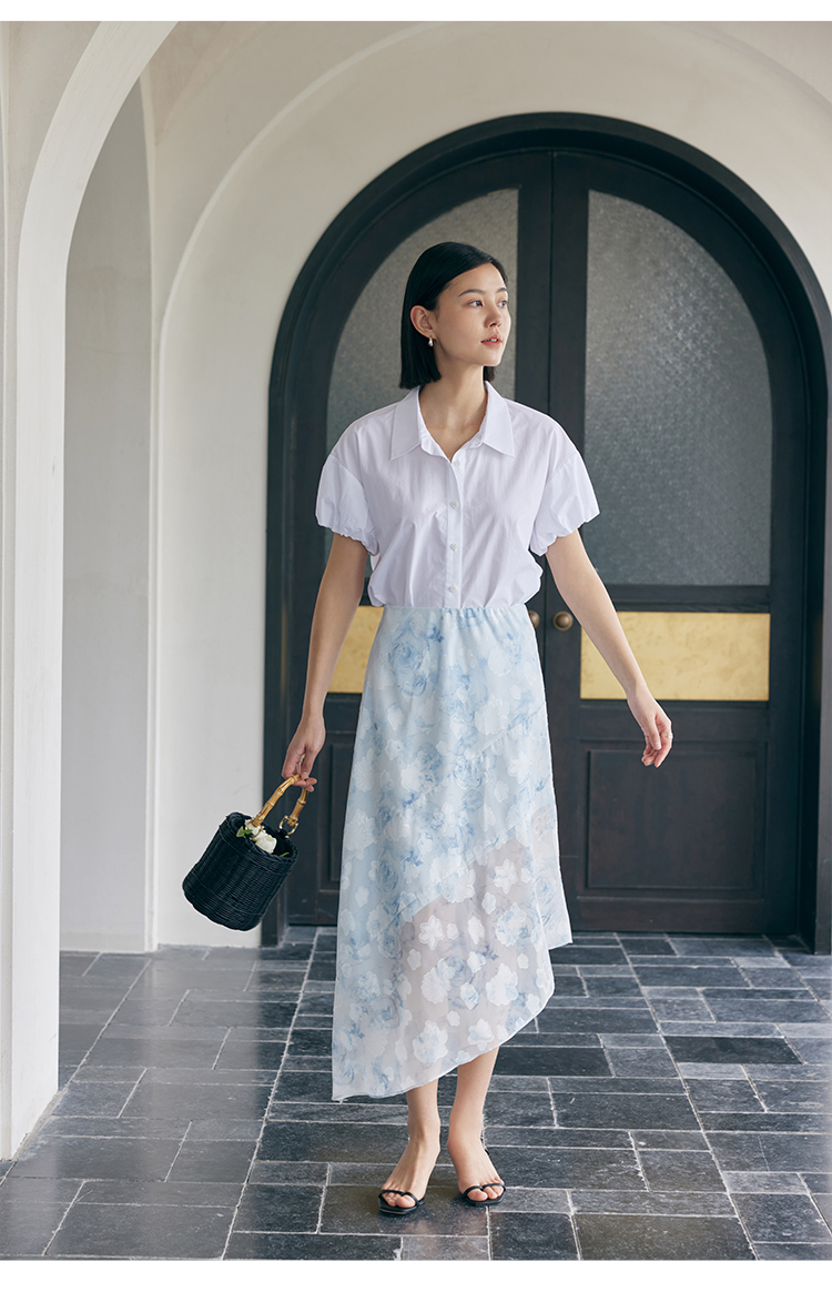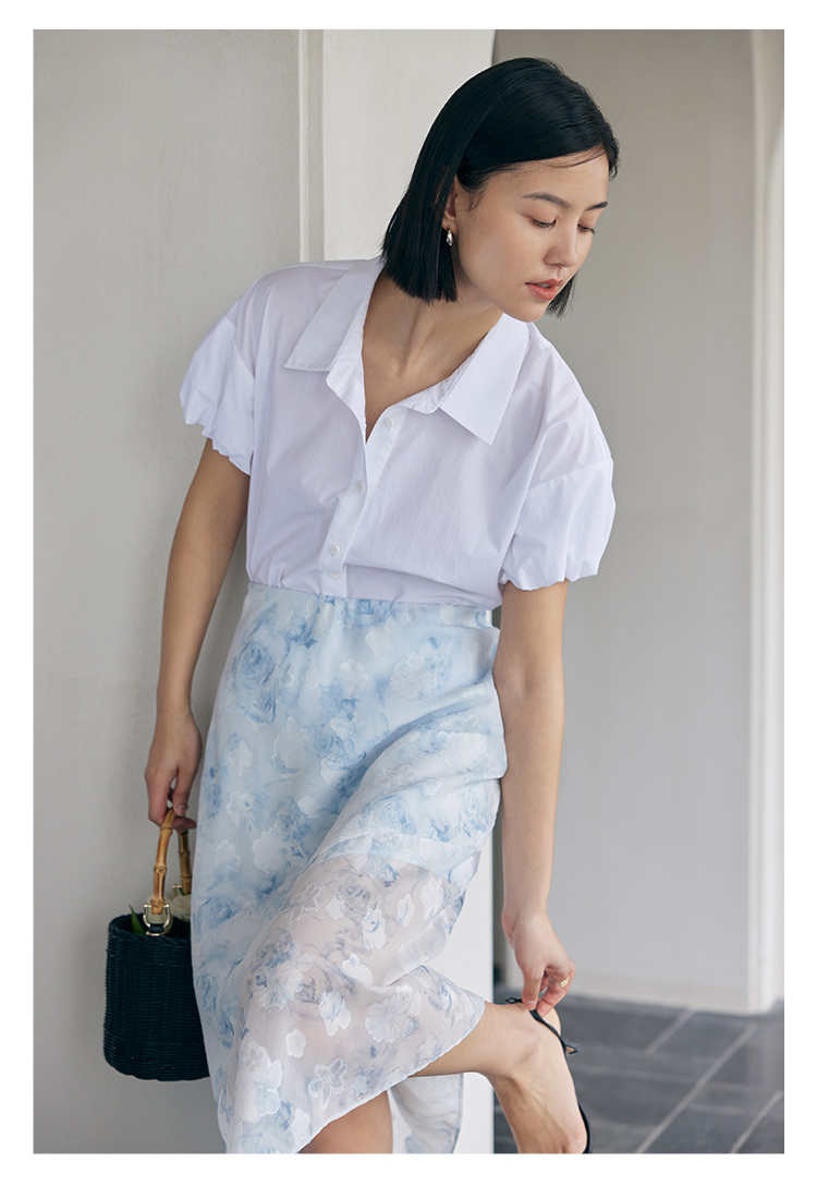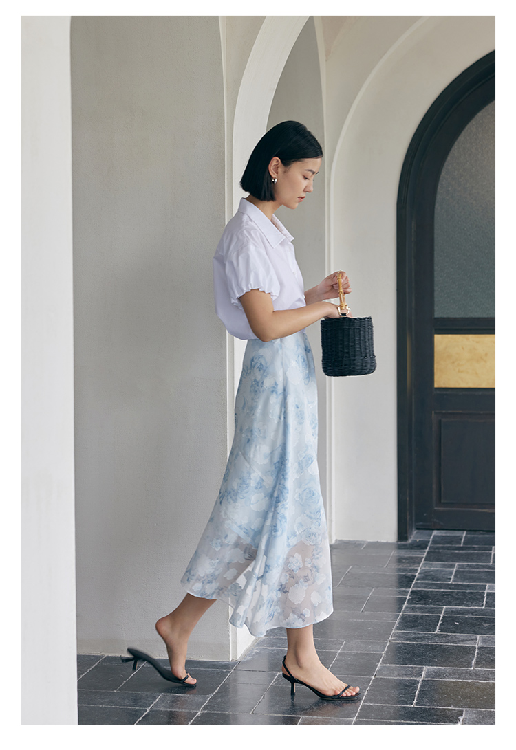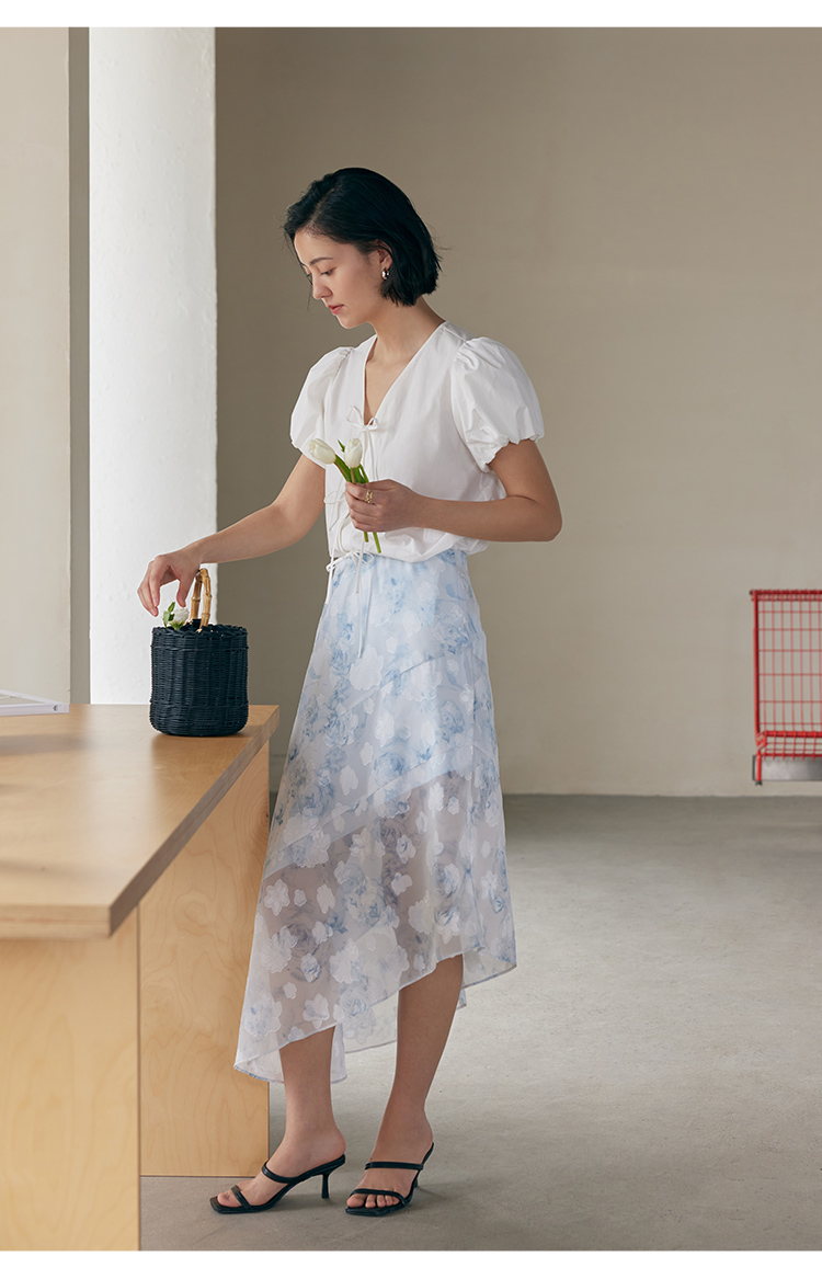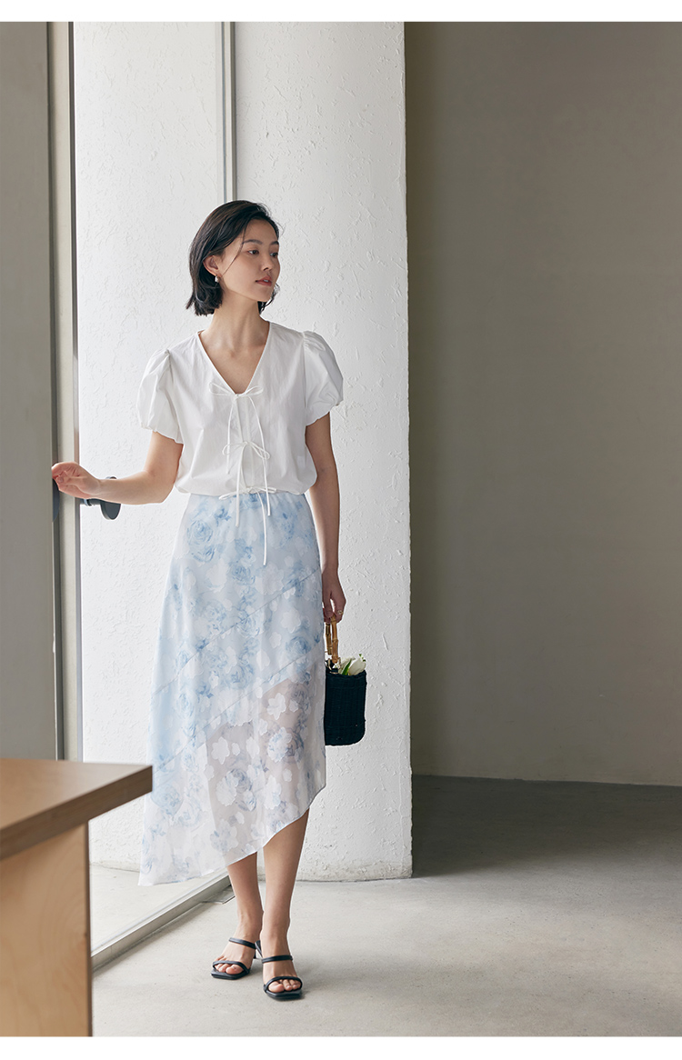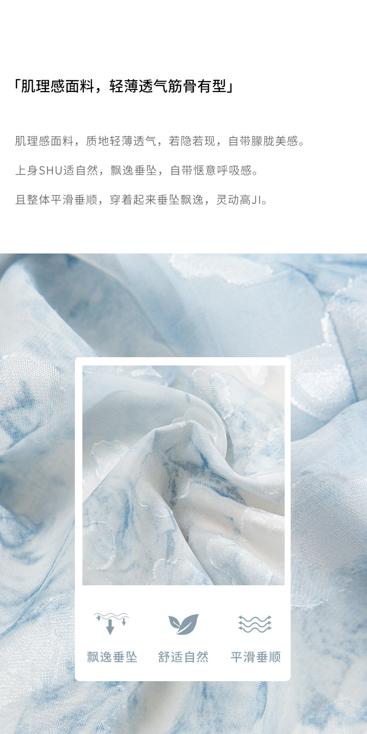 HeyDress蓝色晕染印花半身裙女高腰剪花不规则半透设计感半裙子