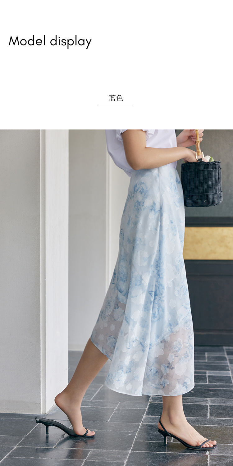 HeyDress植绒花卉提花直筒半裙