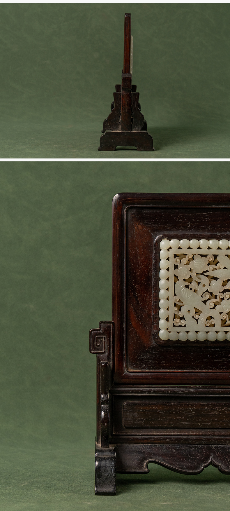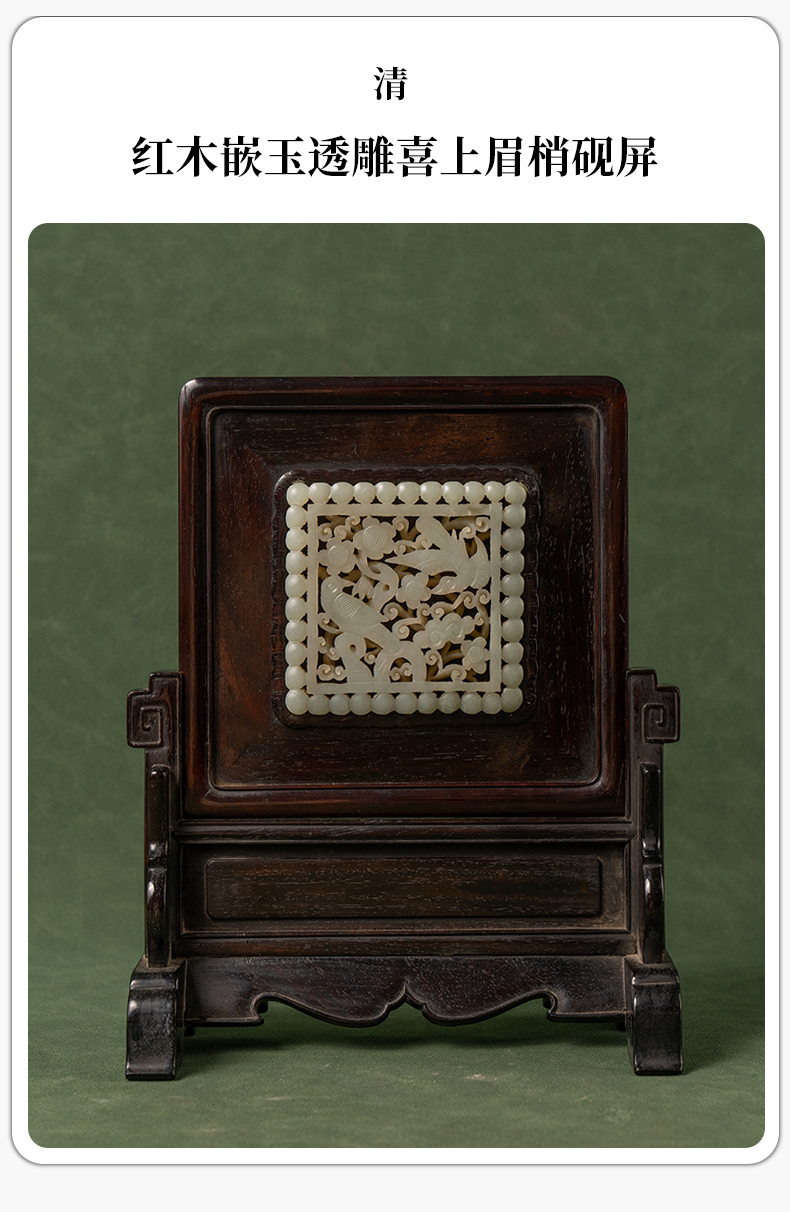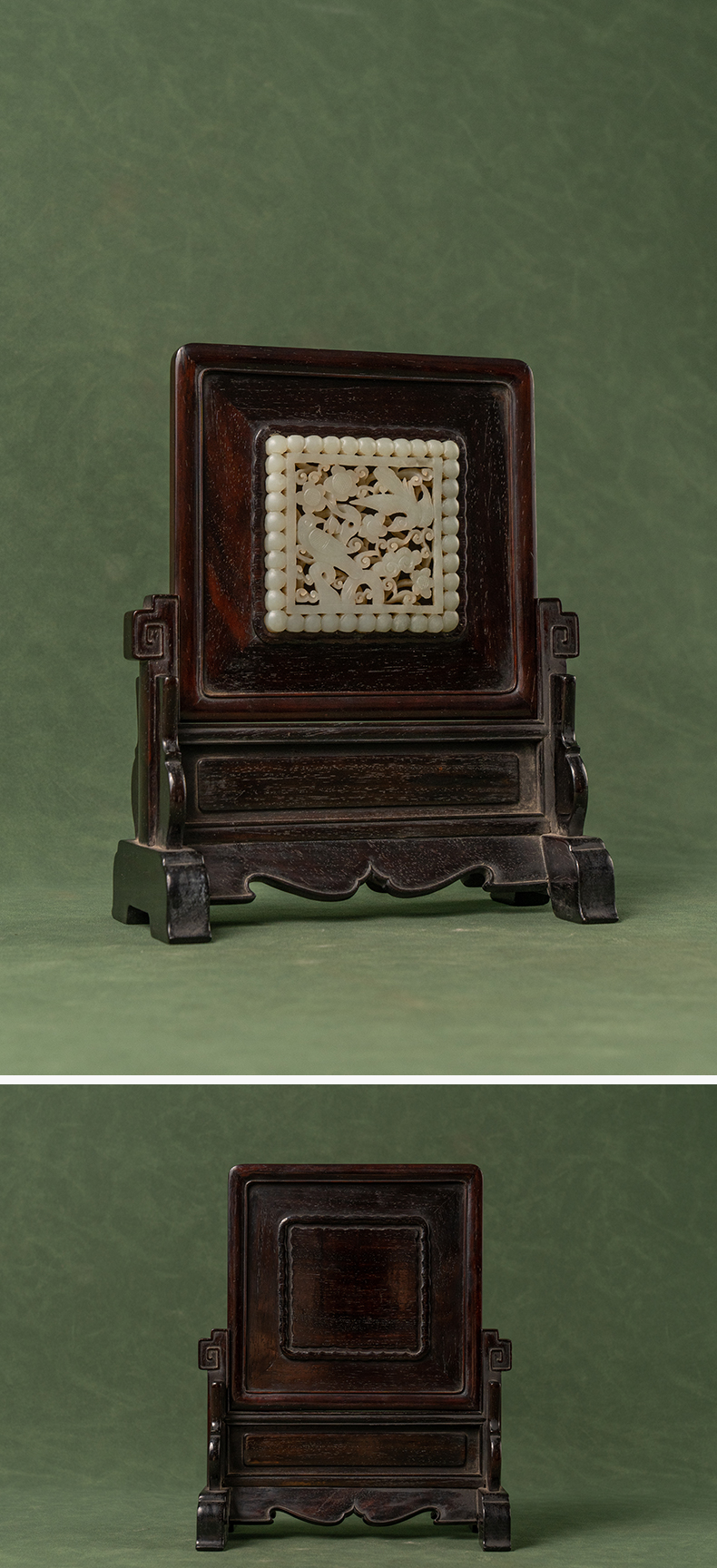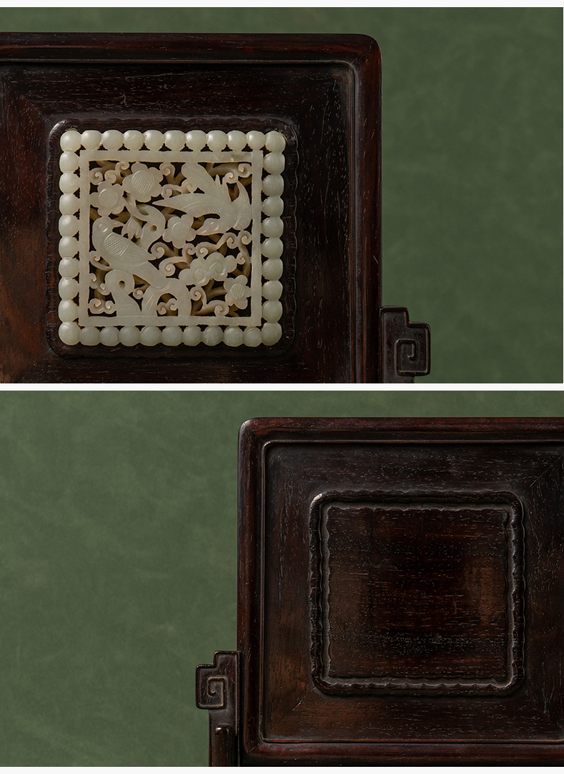 清代 红木镶瘿木嵌寿山石山水人物插屏