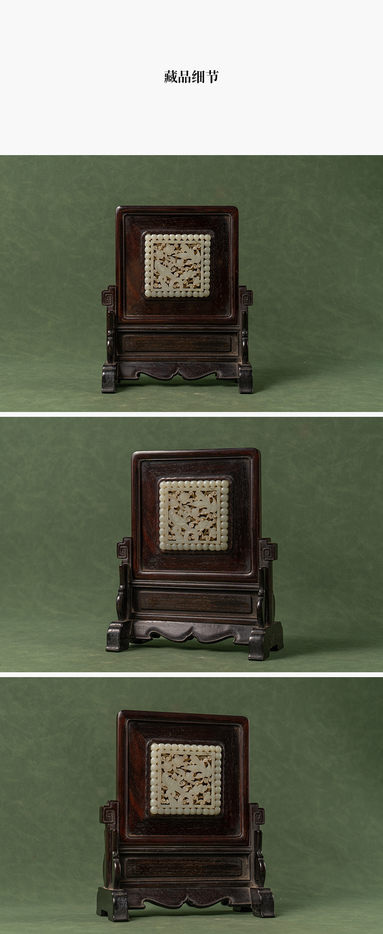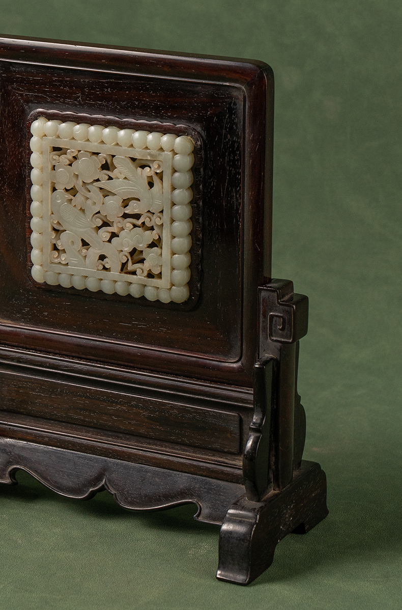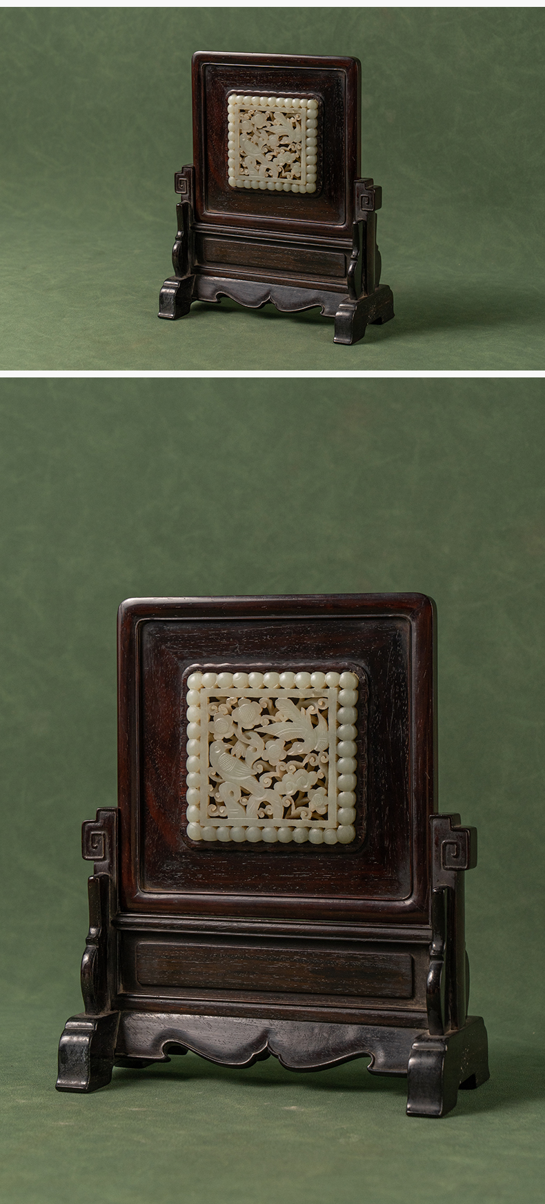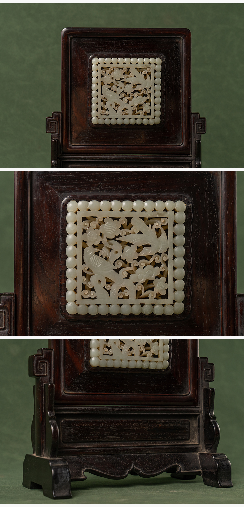 清代 红木镶瘿木嵌寿山石山水人物插屏