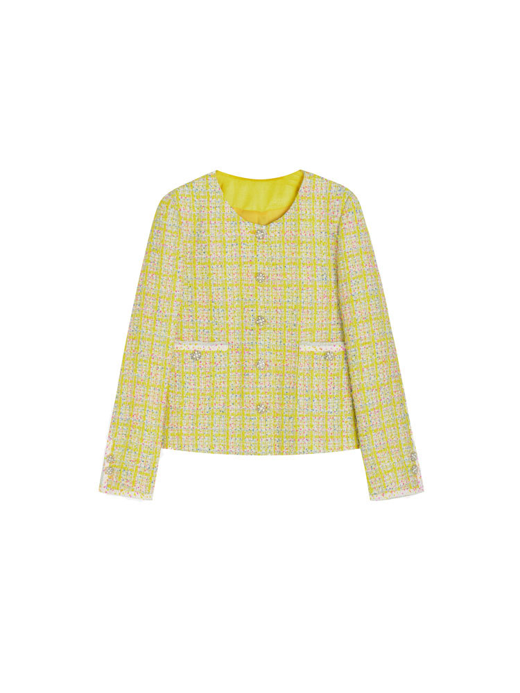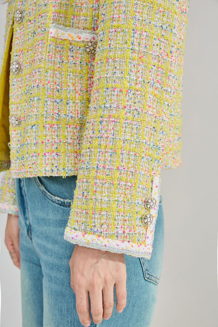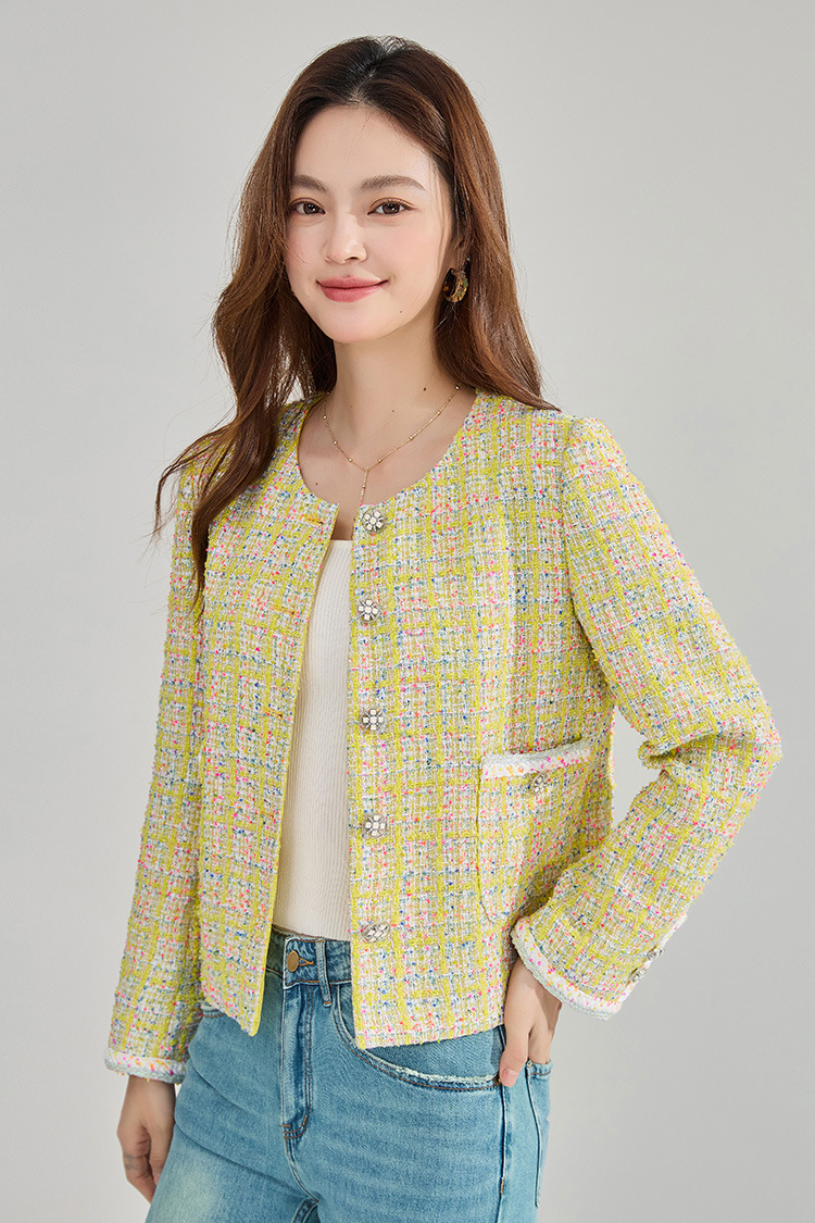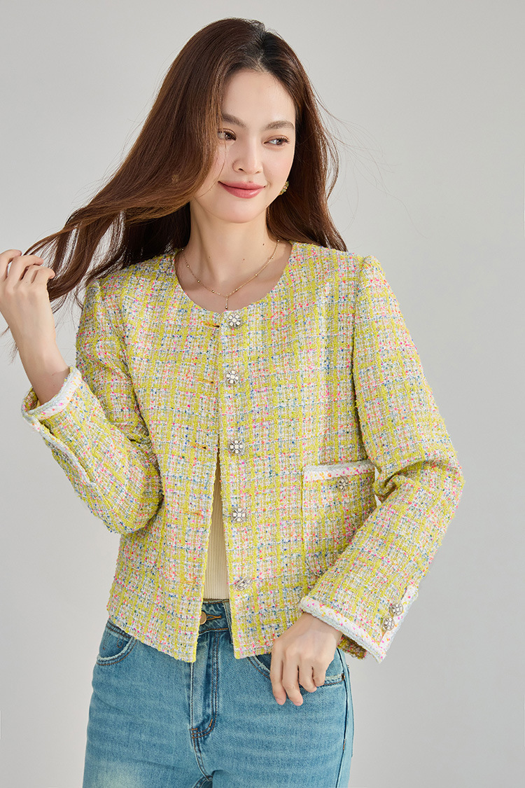 【高货sh】全新升级【铂金会员339/天猫459/差价120】(22414) 洛诗琳2025春季定染彩纱手工织带肌理感轻奢小香风外套