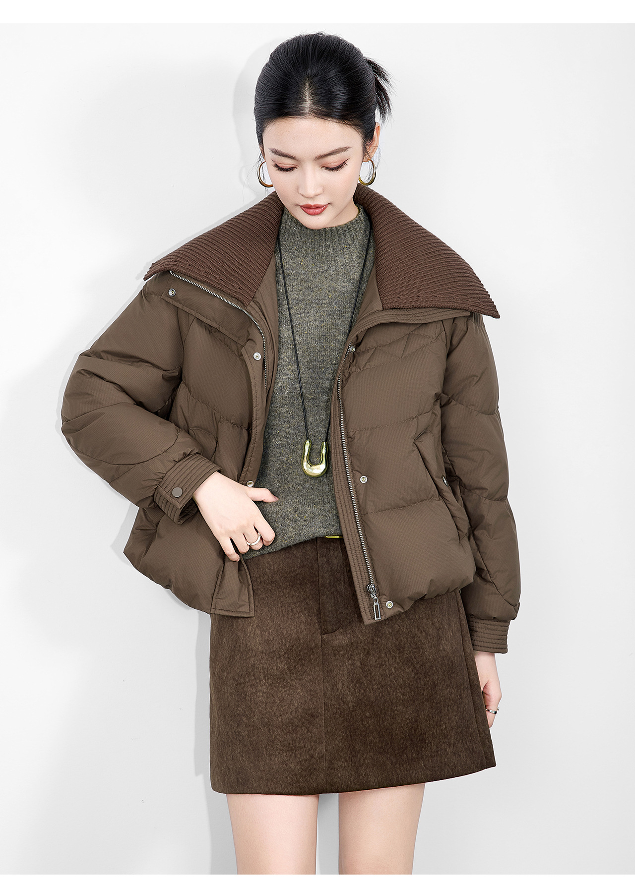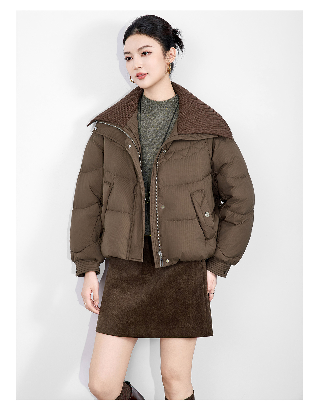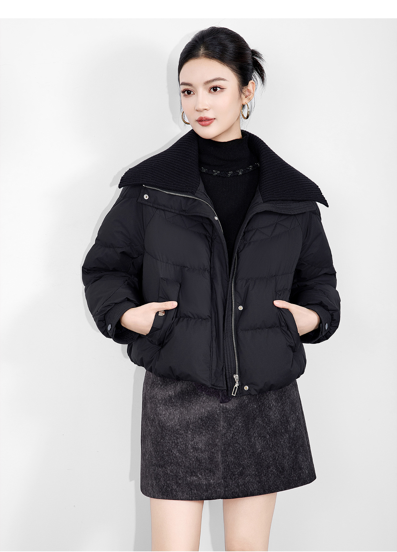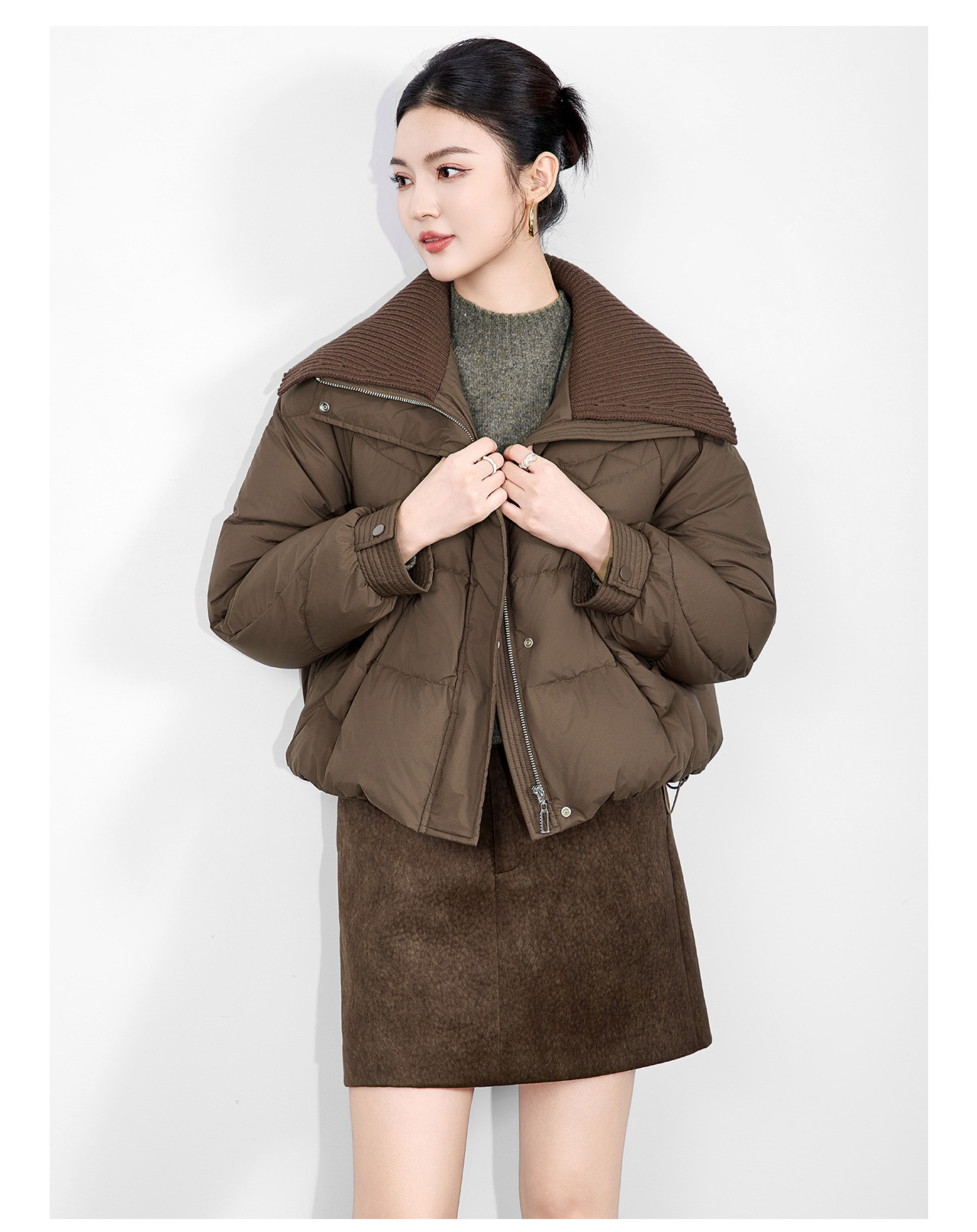 「高货wl」全新升级【铂金会员625/天猫839/差价214】(00207)洛诗琳气质针织翻领羽绒服2025冬季新款加厚保暖短外套