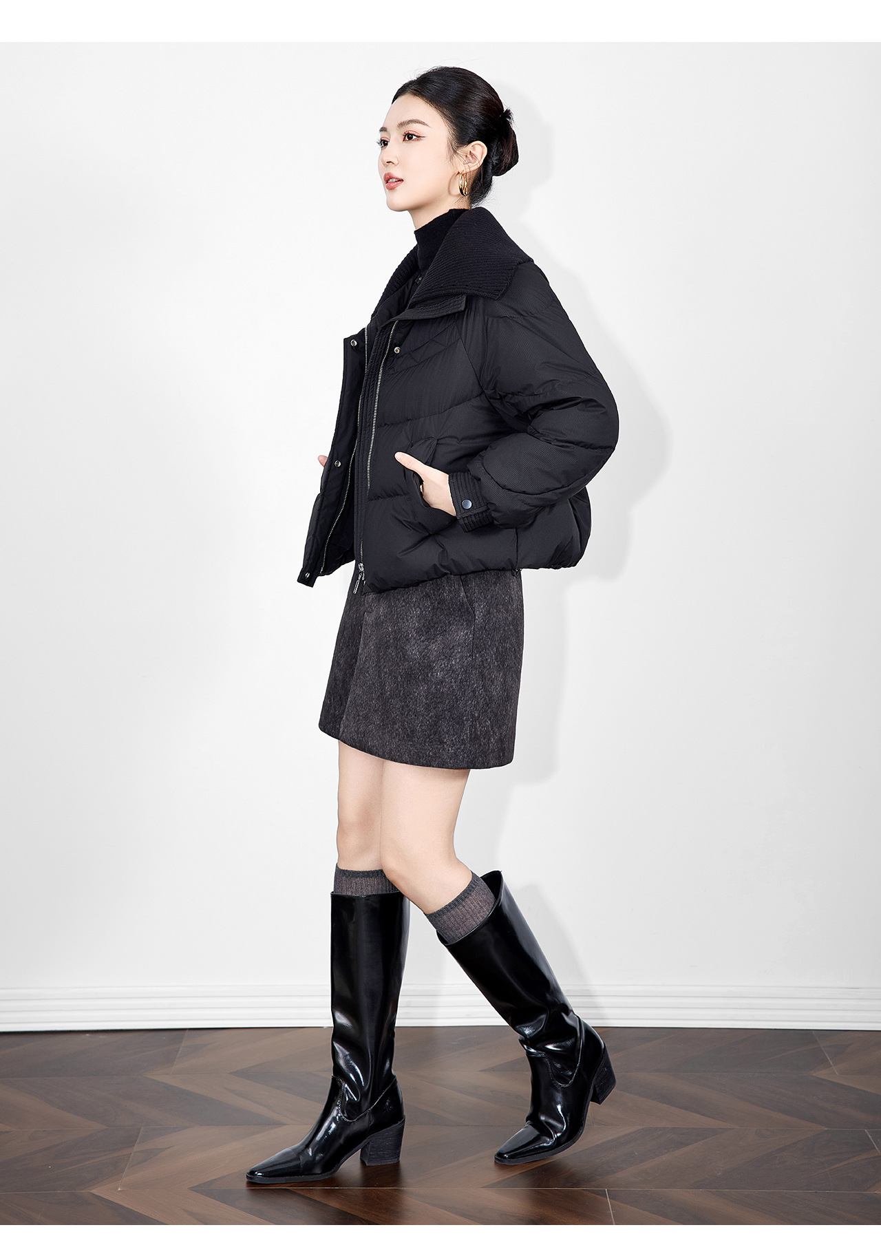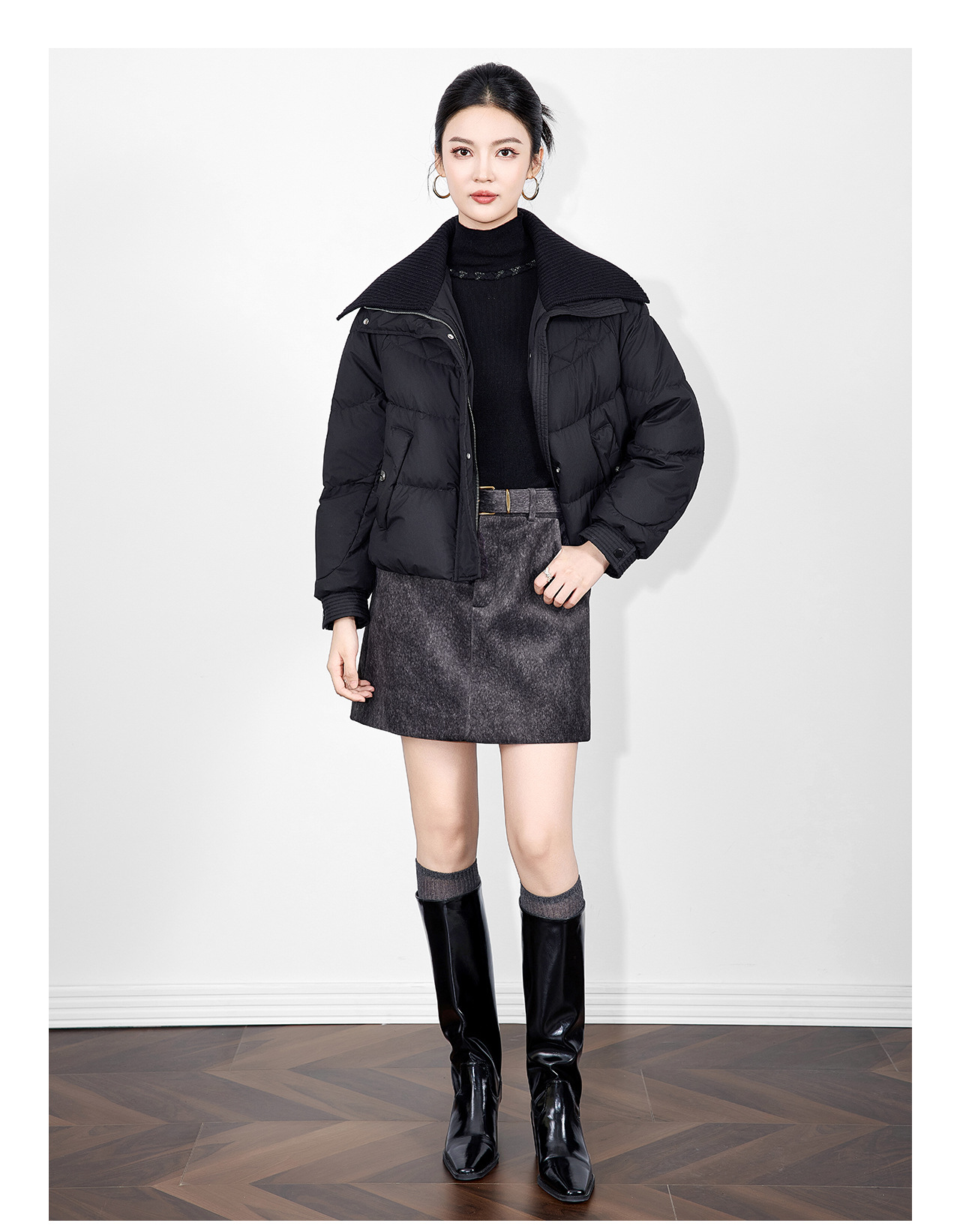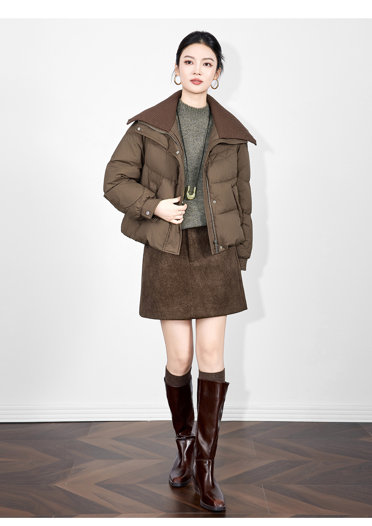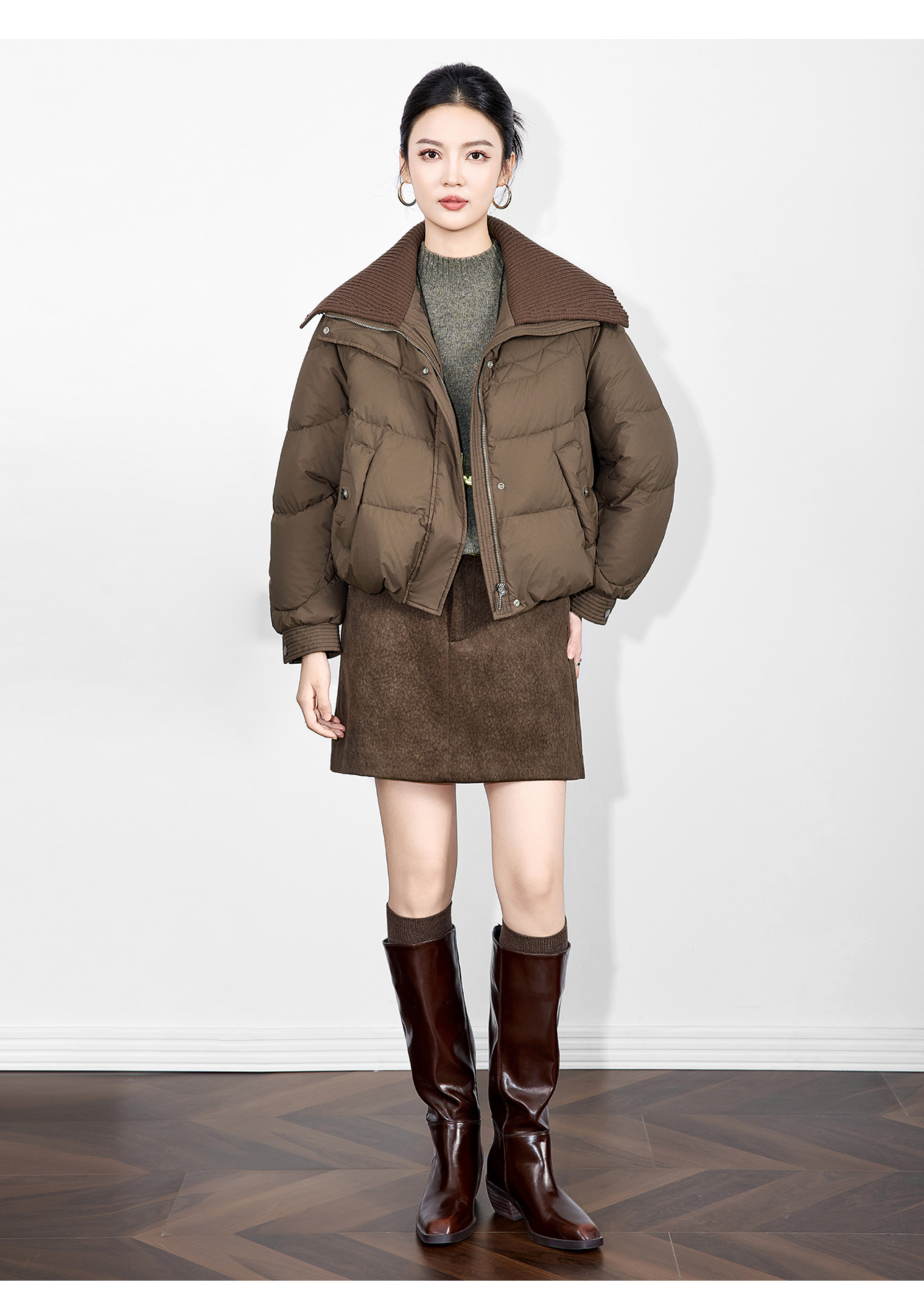 「高货wl」全新升级【铂金会员625/天猫839/差价214】(00207)洛诗琳气质针织翻领羽绒服2025冬季新款加厚保暖短外套