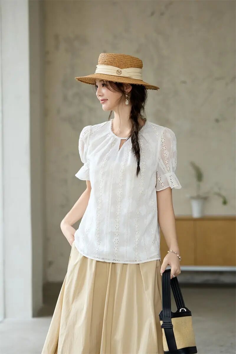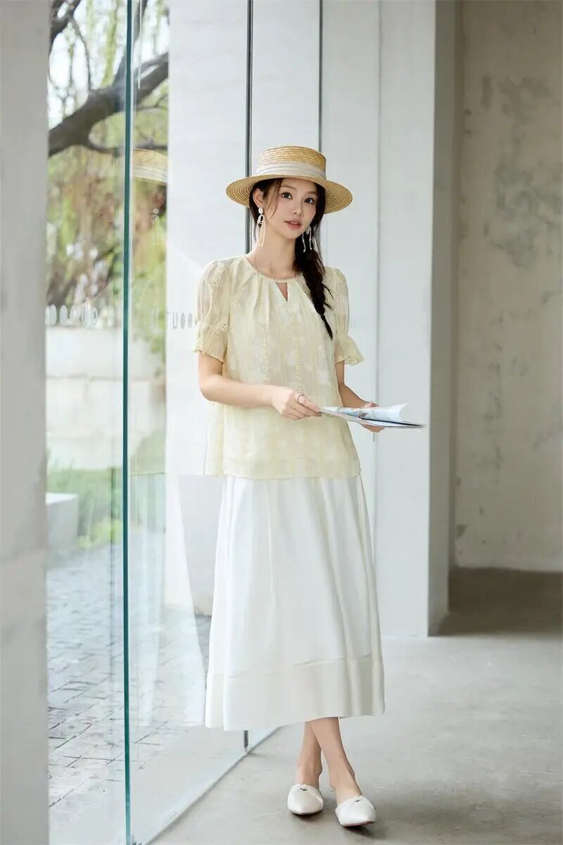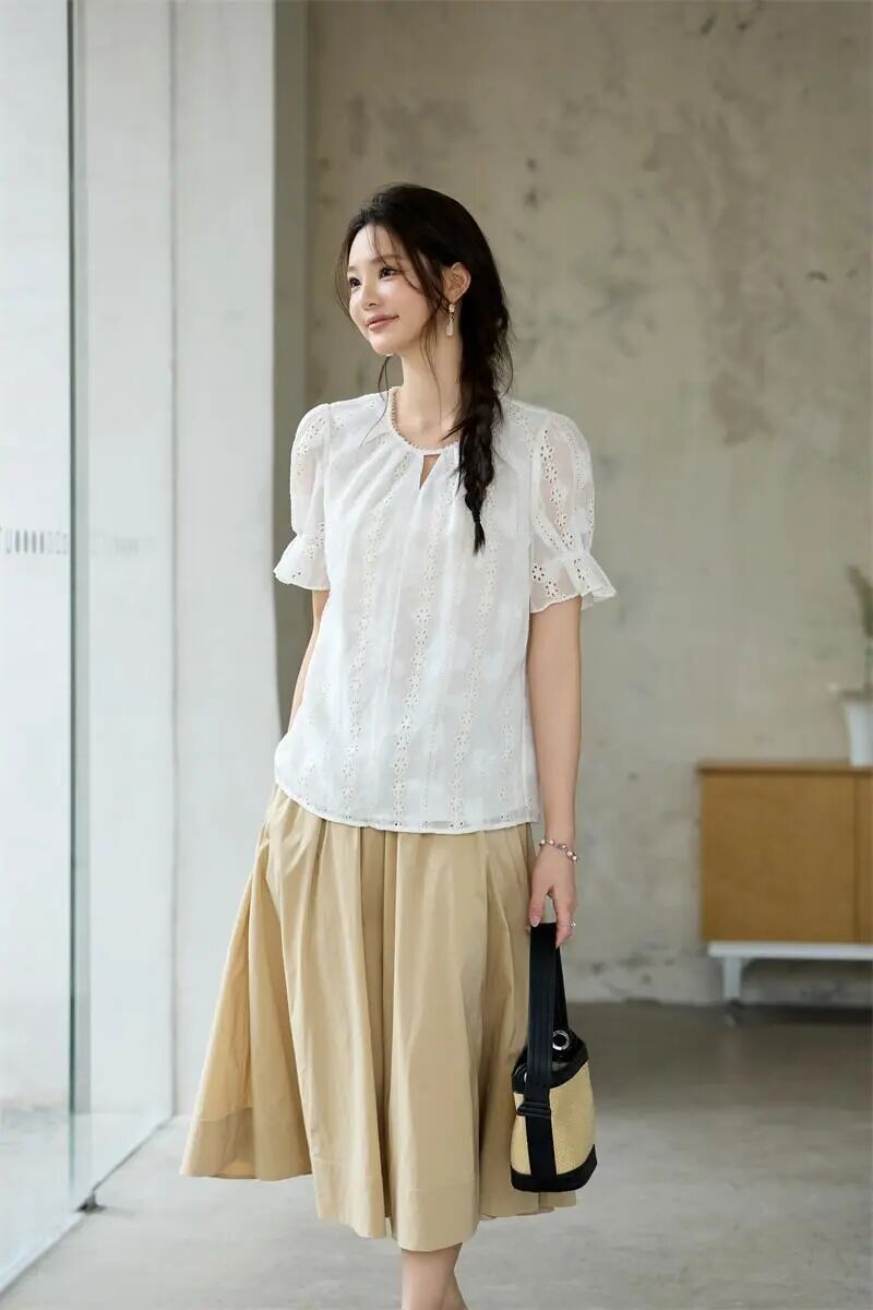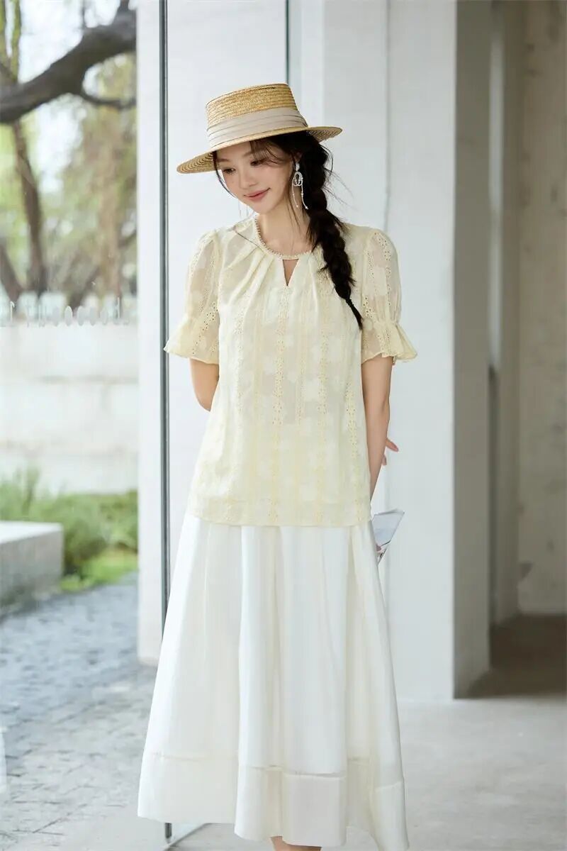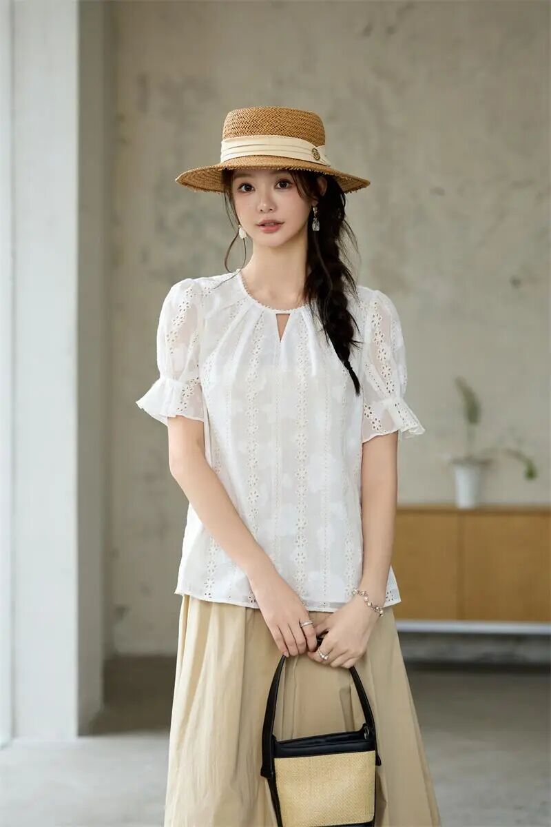全新升级【铂金会员146/天猫199/差价53】(15550) 洛诗琳2025夏季新款法式薄款温柔短袖上衣粉色T恤上衣