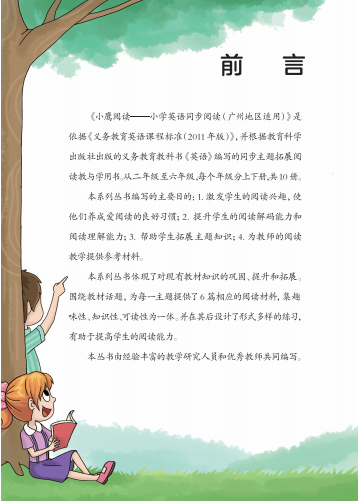 本系列丛书编写的主要目的:1. 激发学生的阅读兴趣,使他们养成爱阅读的良好习惯;2. 提升学生的阅读解码能力和阅读理解能力;3. 帮助学生拓展主题知识;4. 为教师的阅读教学提供参考材料。