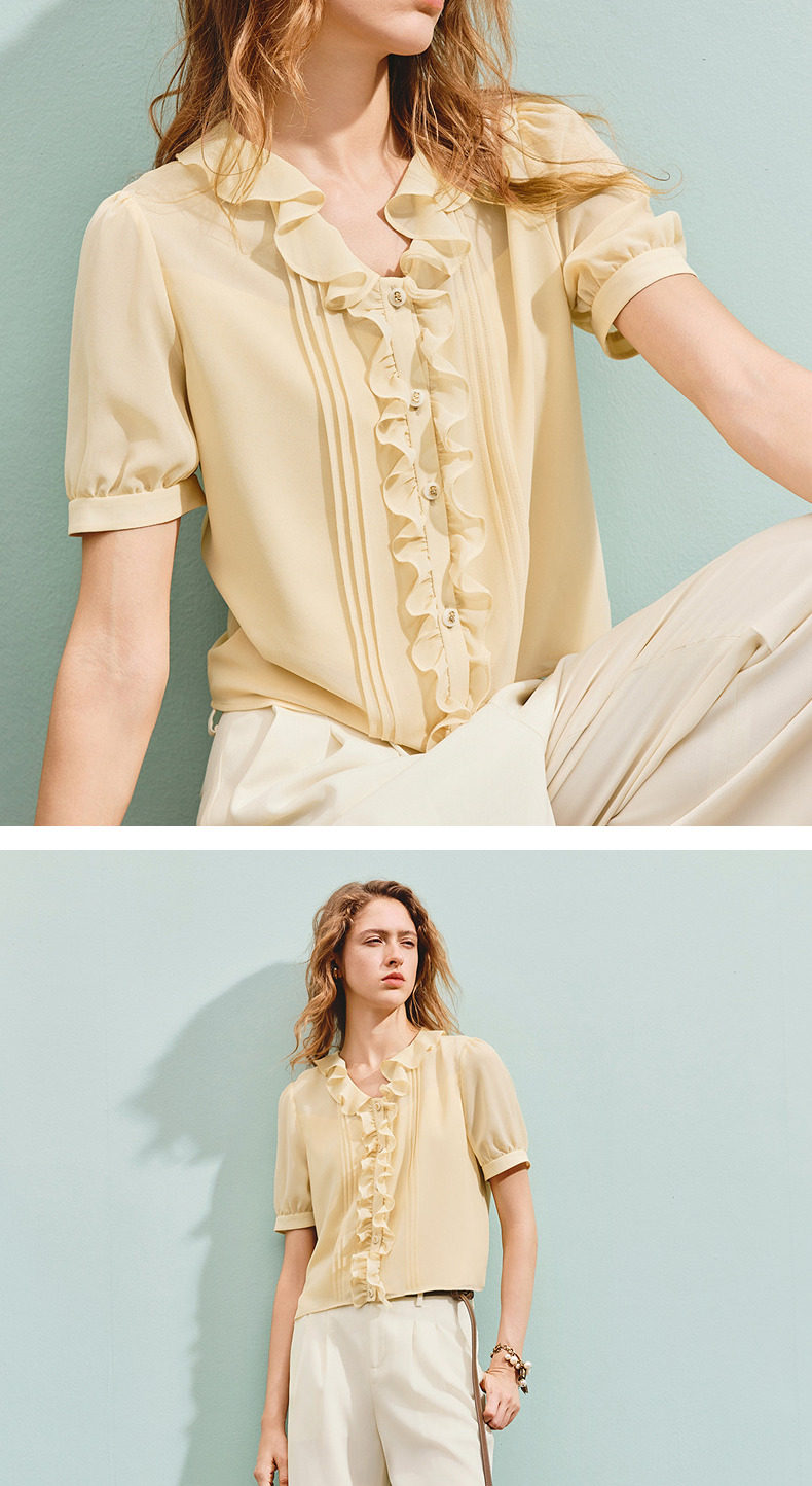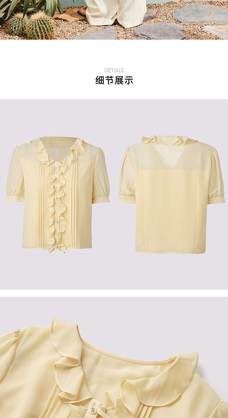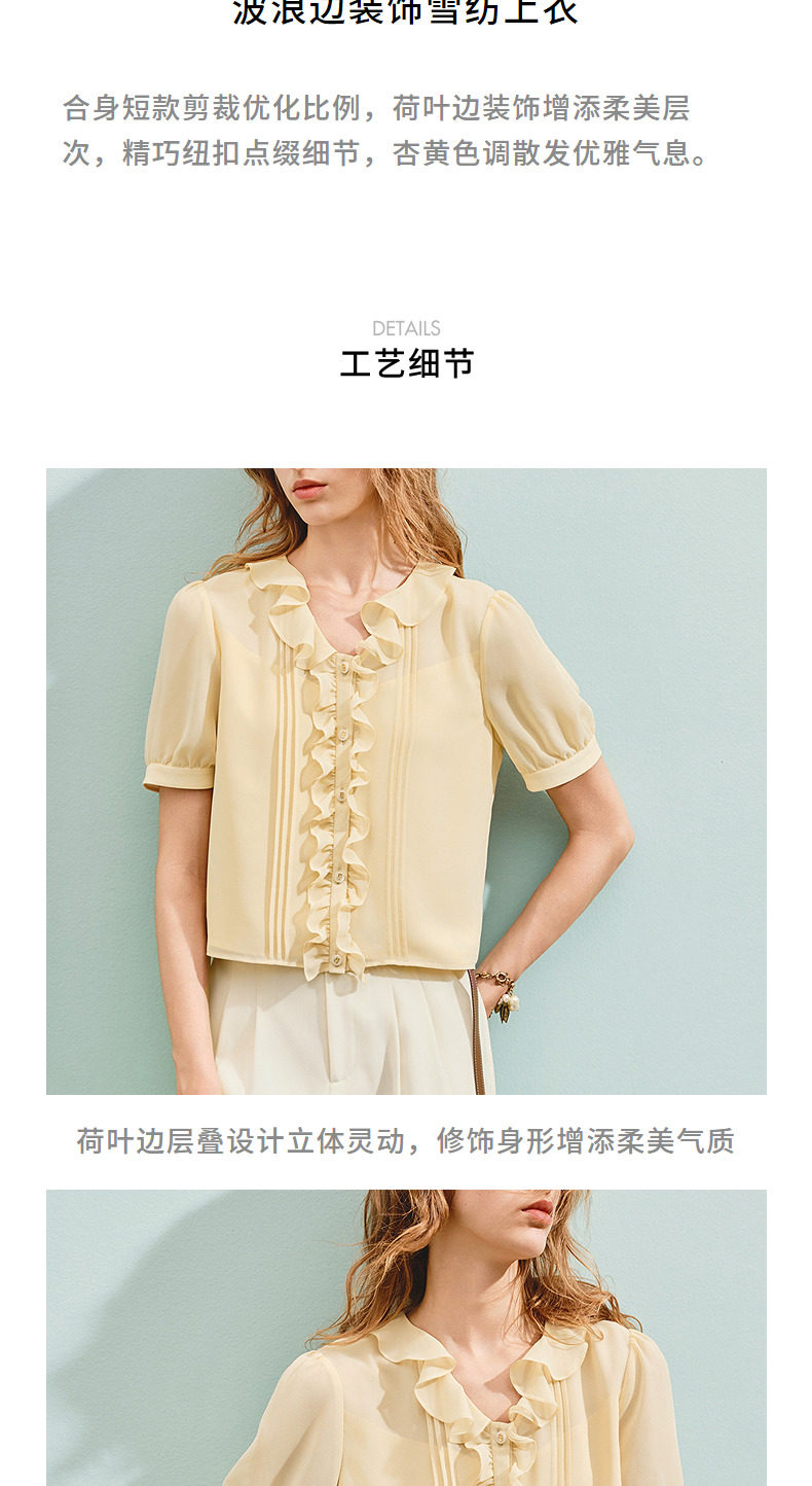 【SGPR】精致日常雪纺衫25夏波浪荷叶边修身显瘦上衣(货号:MU86TP274)