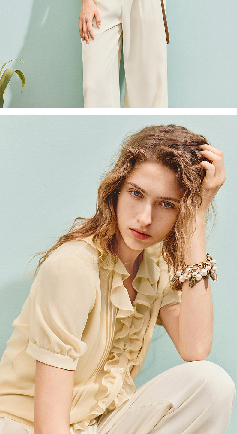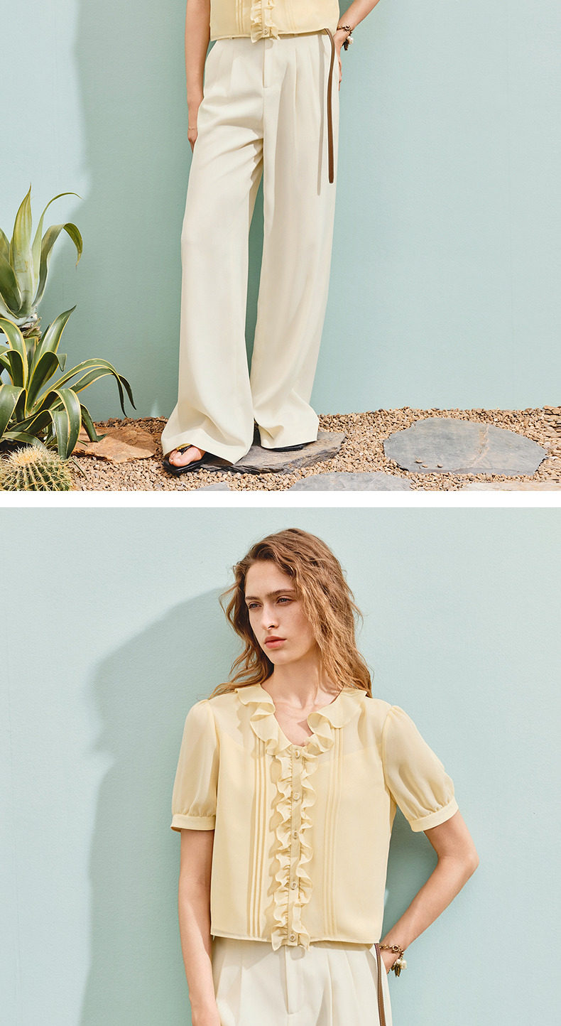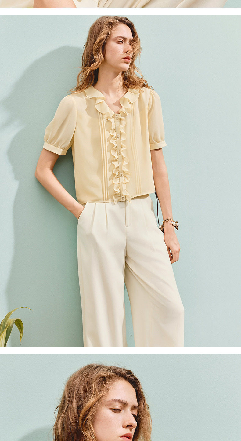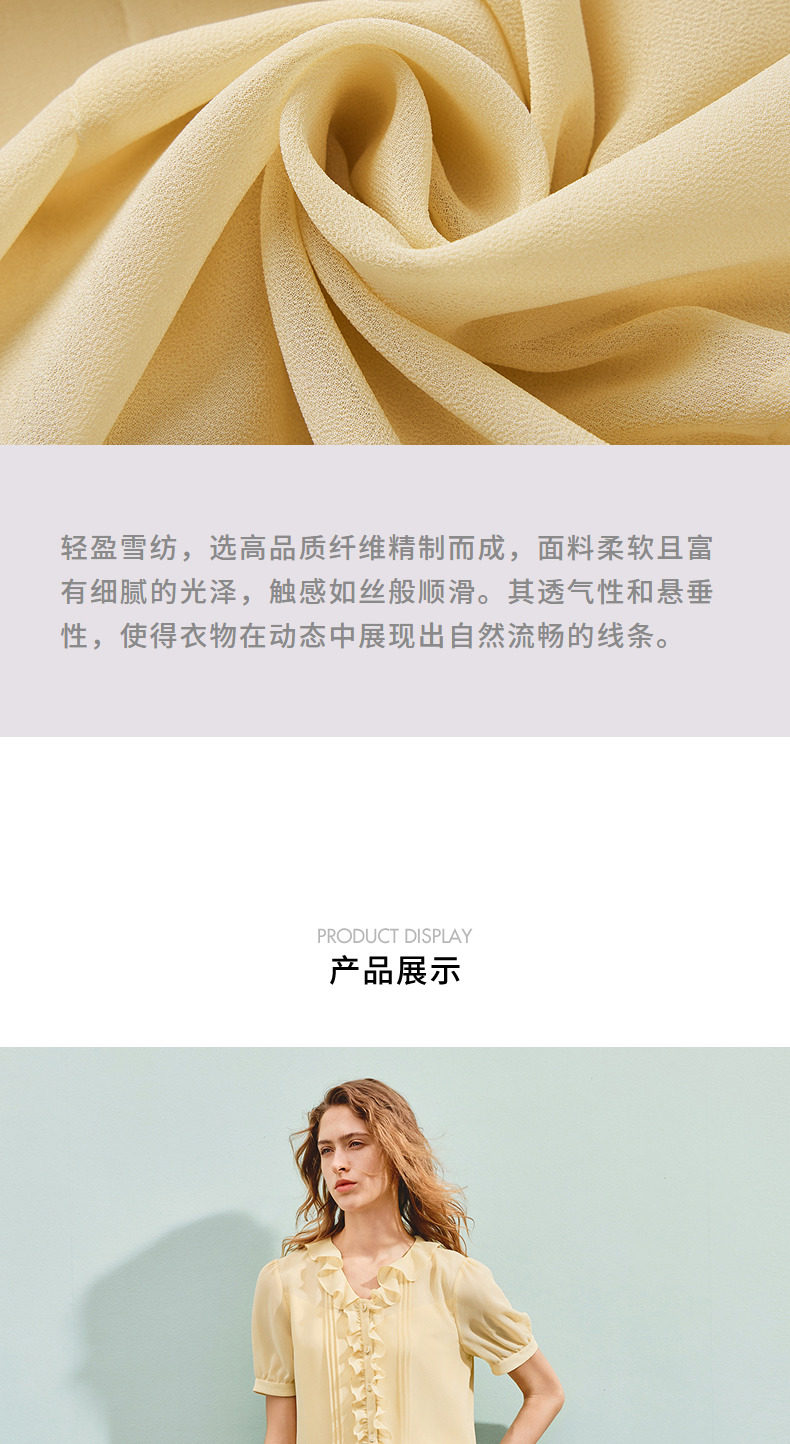 【SGPR】精致日常雪纺衫25夏波浪荷叶边修身显瘦上衣(货号:MU86TP274)