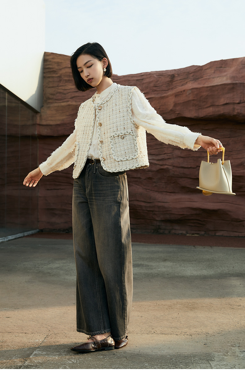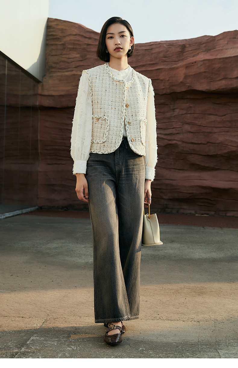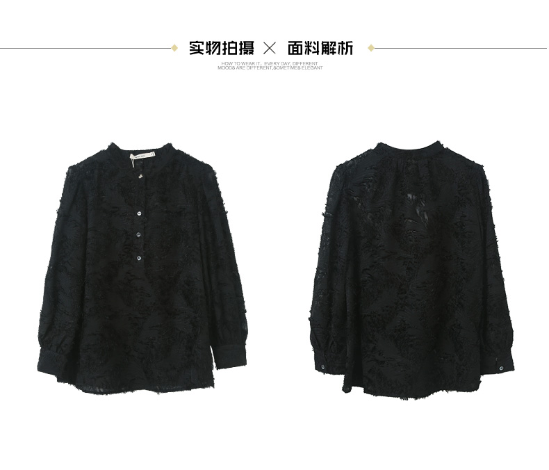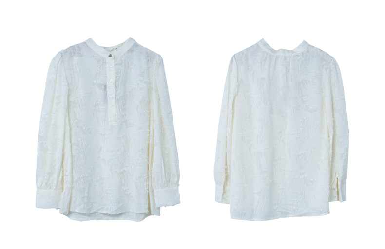 法式浪漫 立领半开扣提花衬衫 温柔米白 宽松长袖仙女上衣