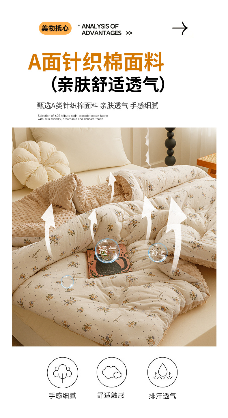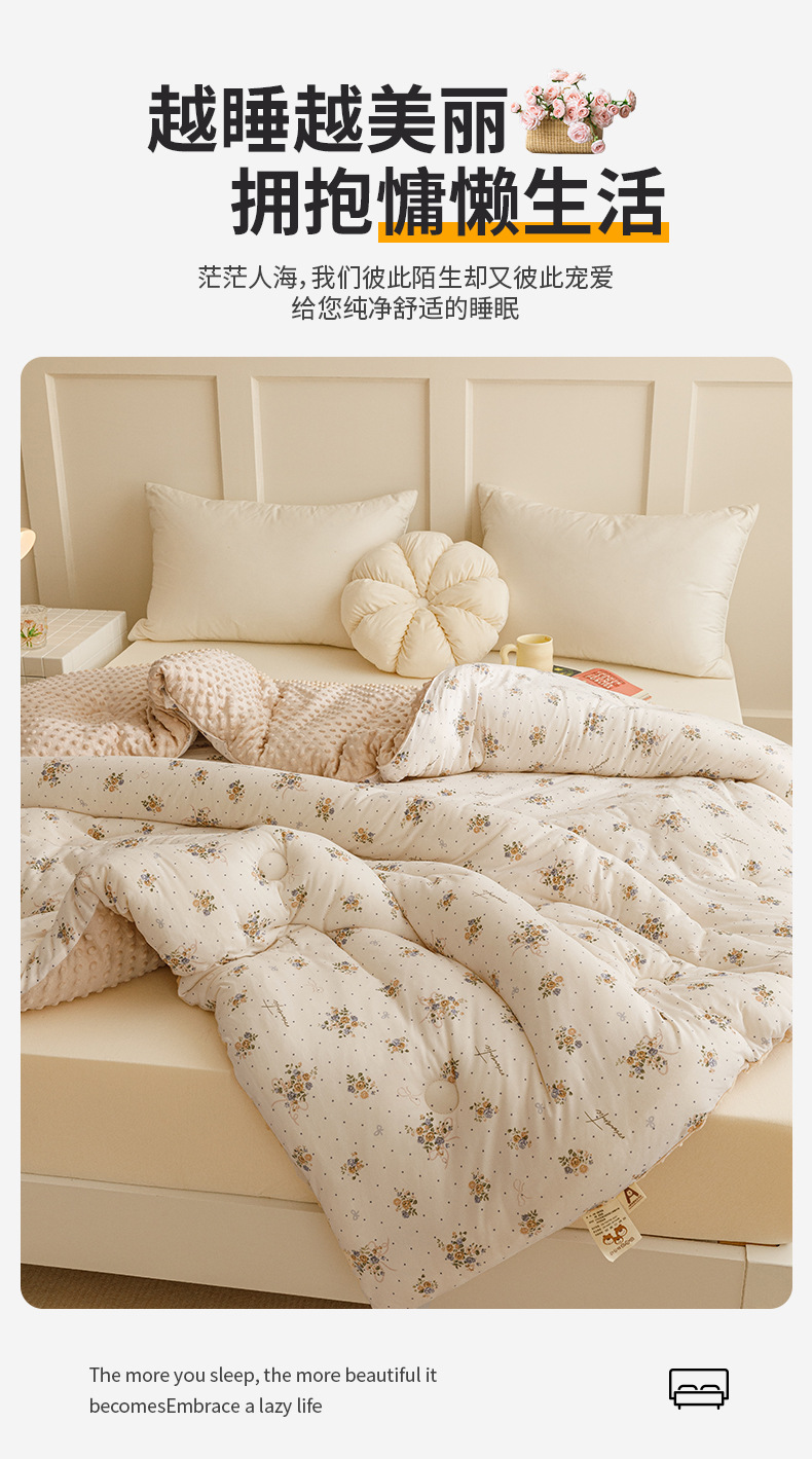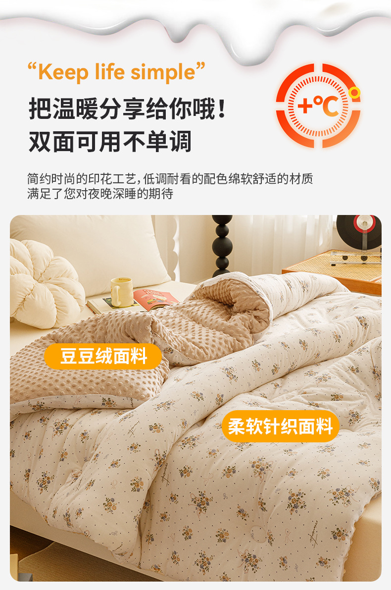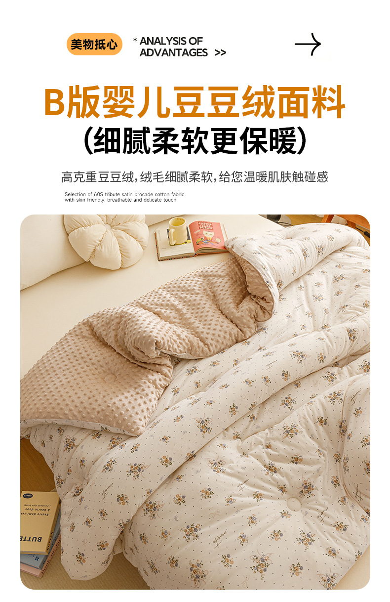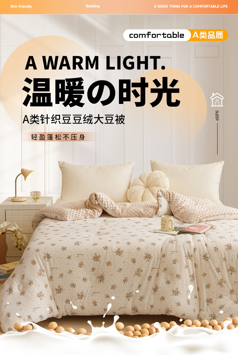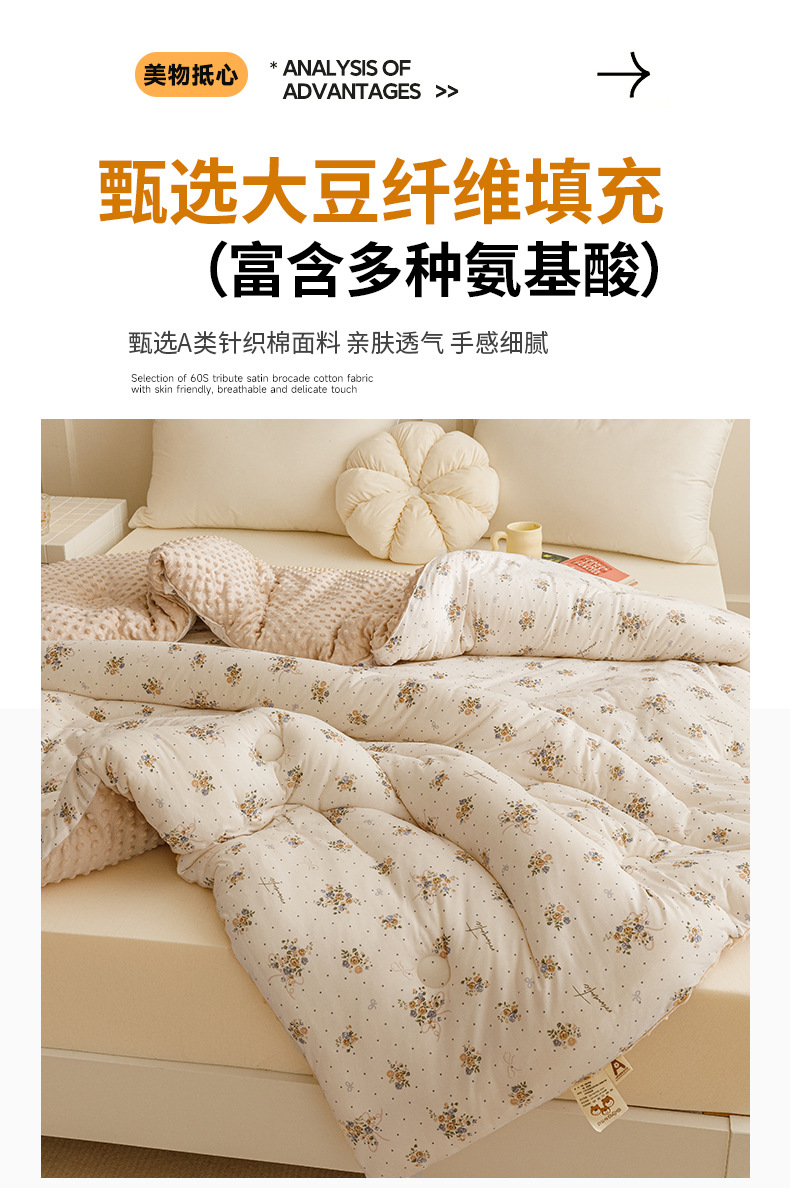【软糯亲肤!蓬松保暖】A类母婴级,安心睡眠,豆豆绒被子大豆纤维被芯儿童针织棉学生宿舍四季秋冬被。rb