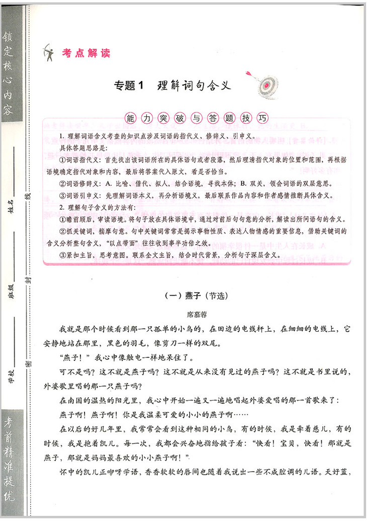 小升初语文阅读核心能力100练 名校直通车小学毕业升学冲刺刷题卷