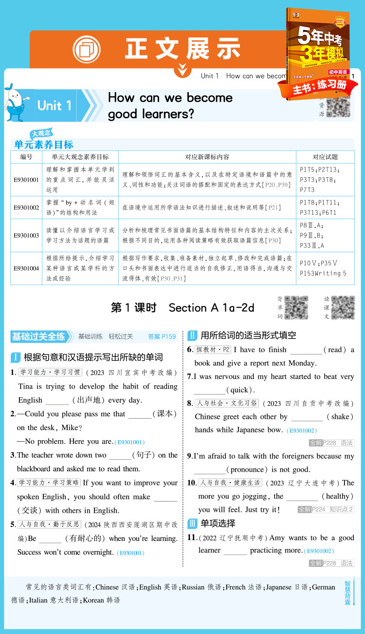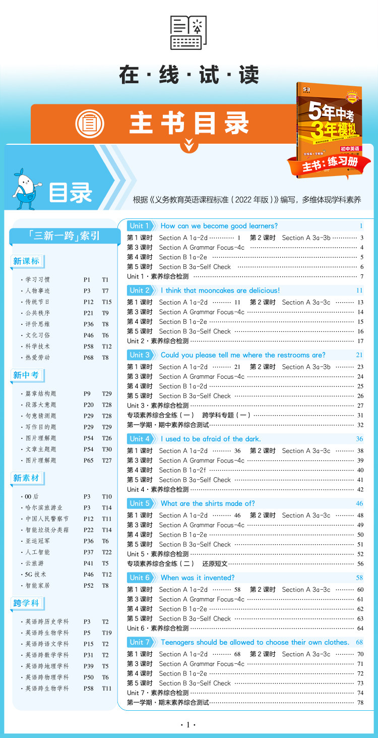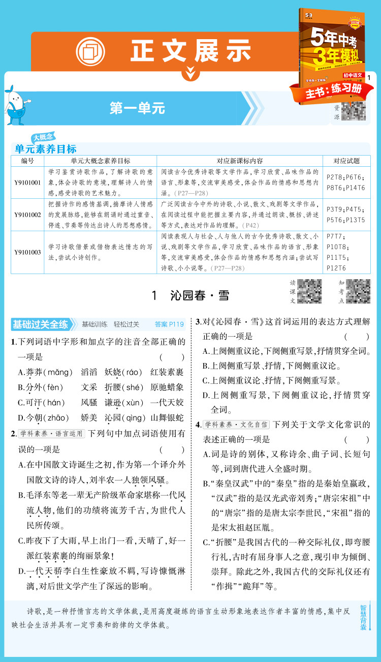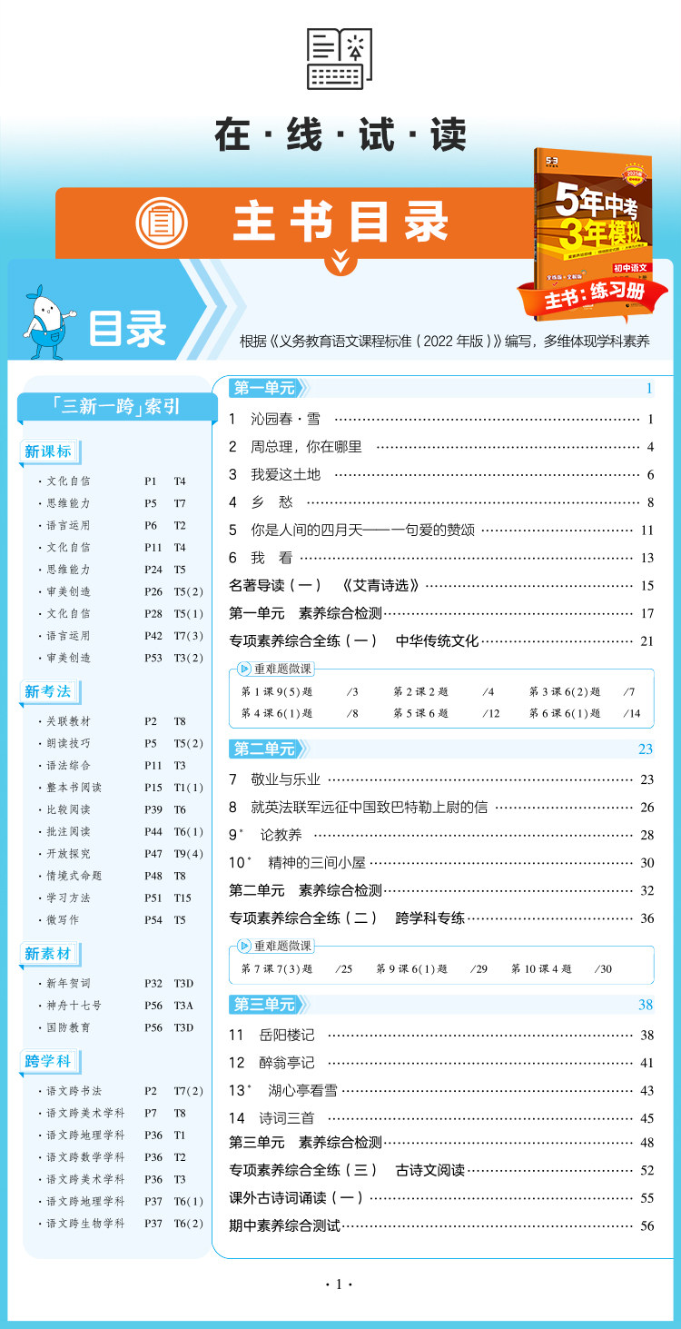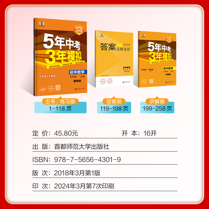 2026版5年中考3年模拟上册初中七年级八年级九年级五年中考三年模拟初三年级总复习资料讲解练习结合
