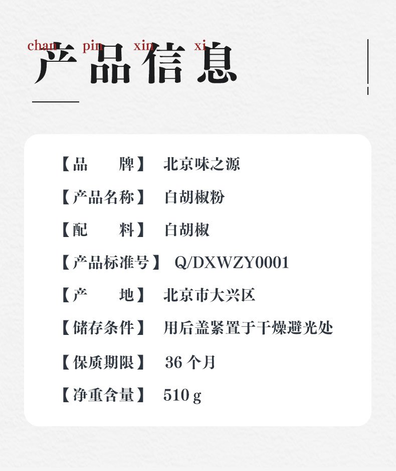 【味之源】白胡椒粉510g/瓶