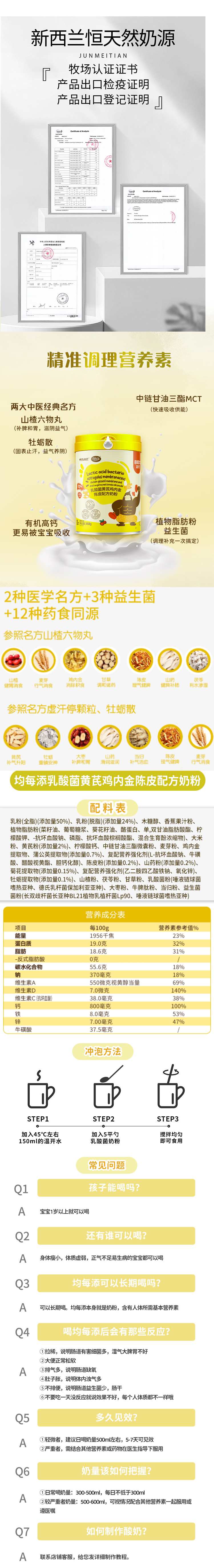 均每添乳酸菌黄芪鸡内金陈皮配方奶粉168g