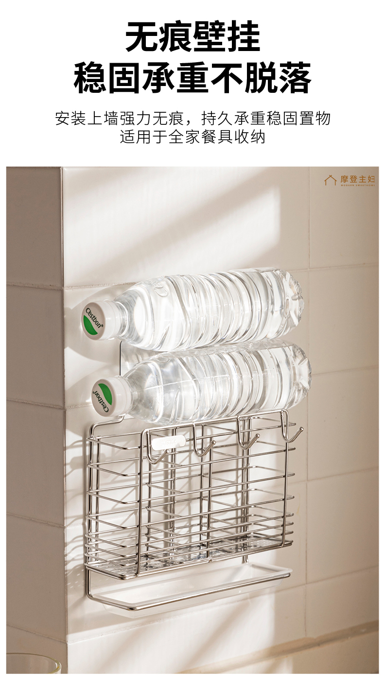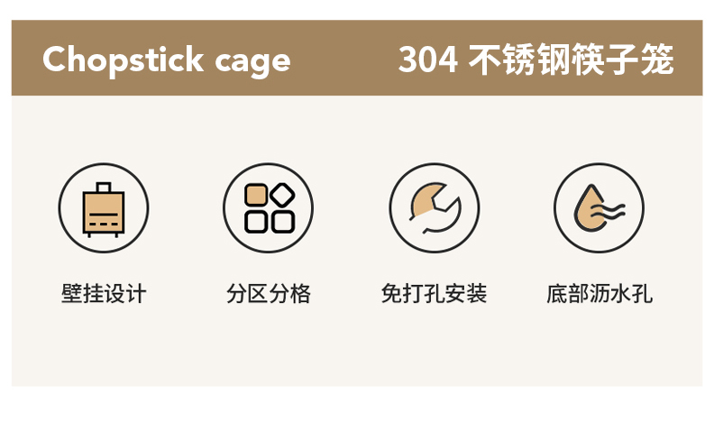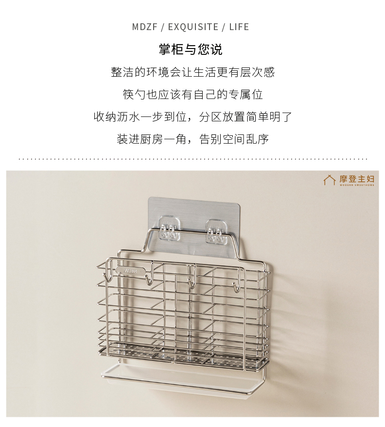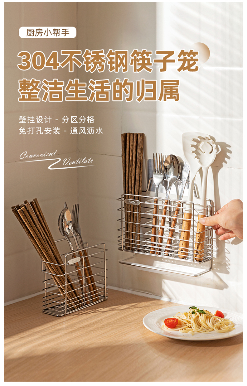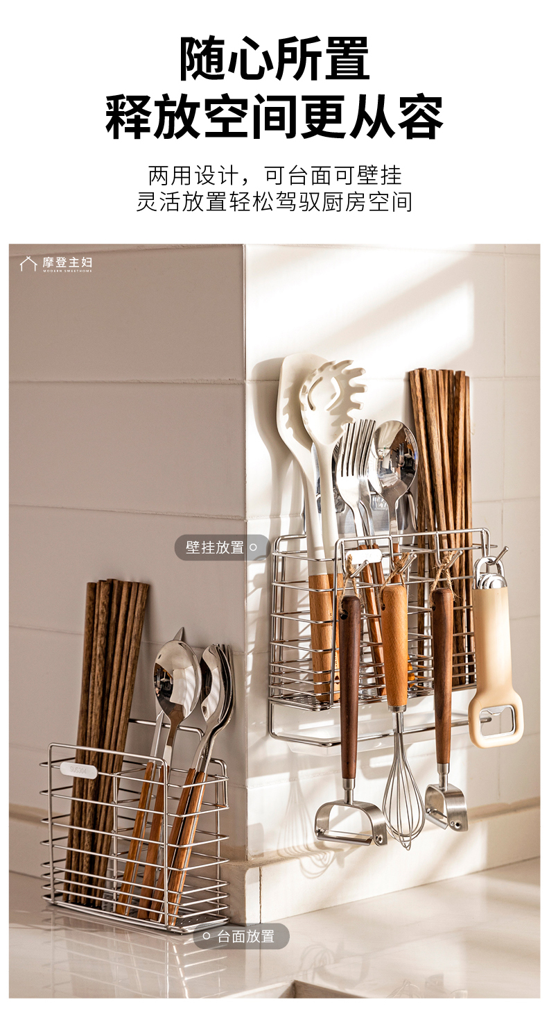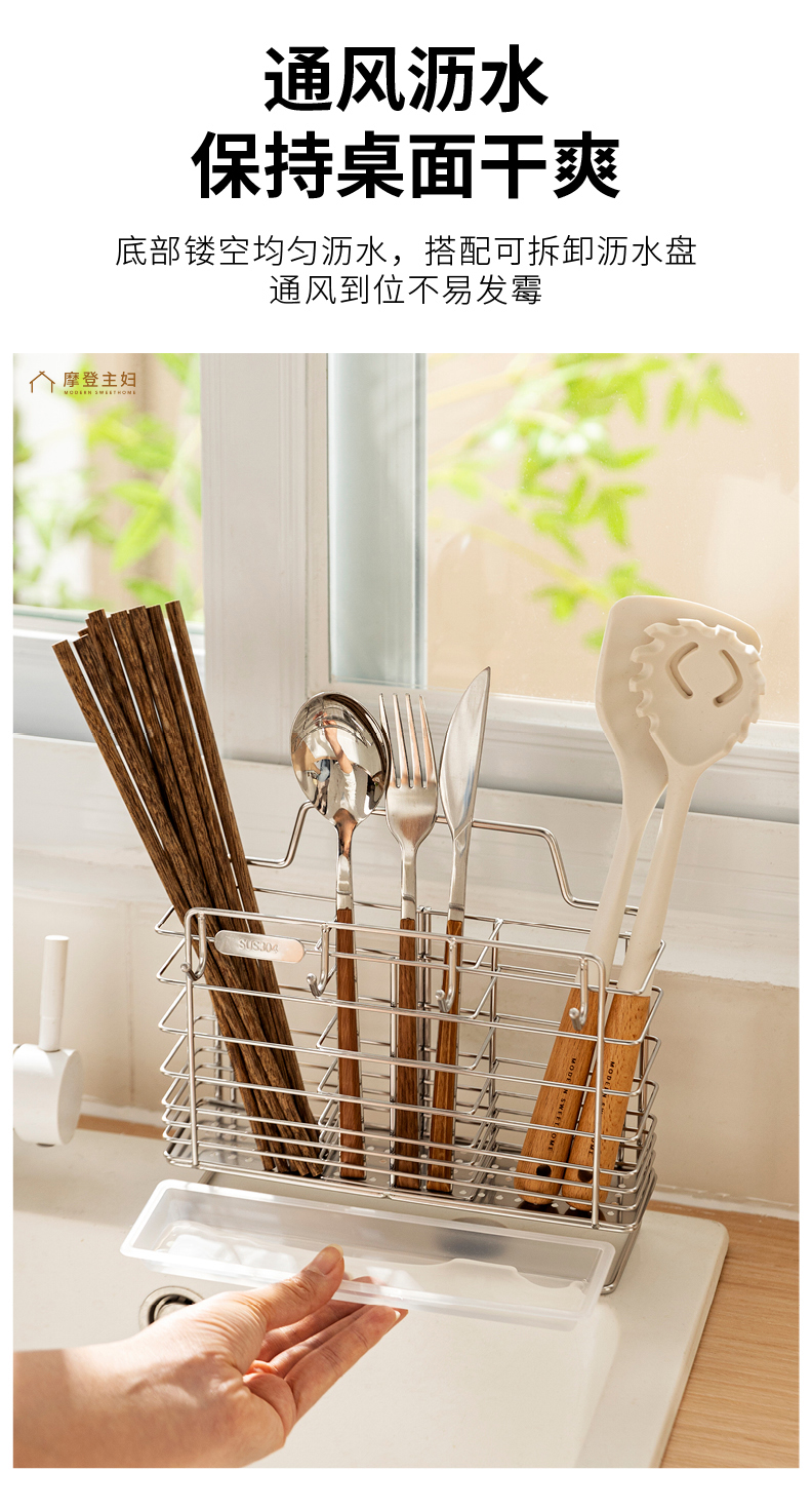 摩登主妇筷子收纳盒壁挂免打孔台上家用通风不锈钢沥水筷子笼