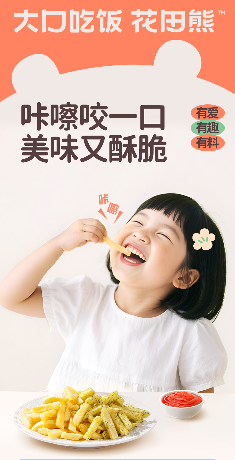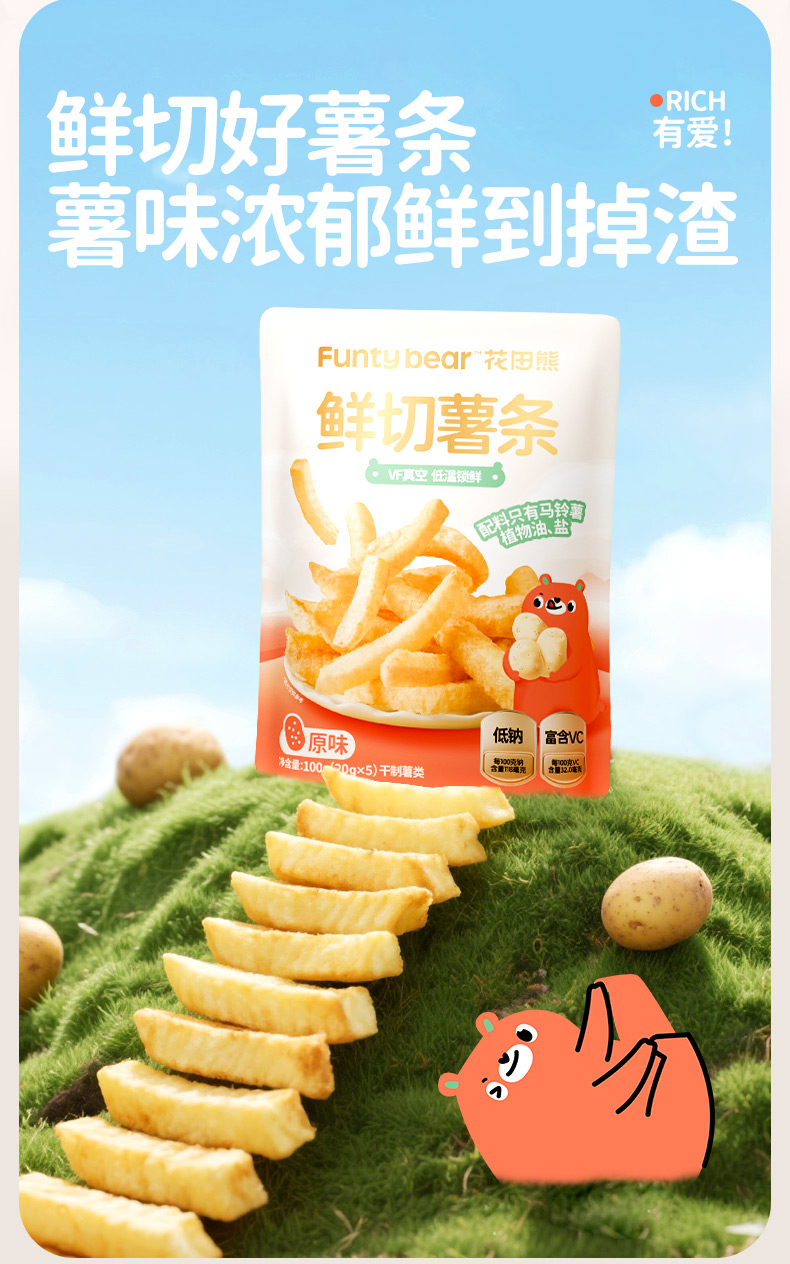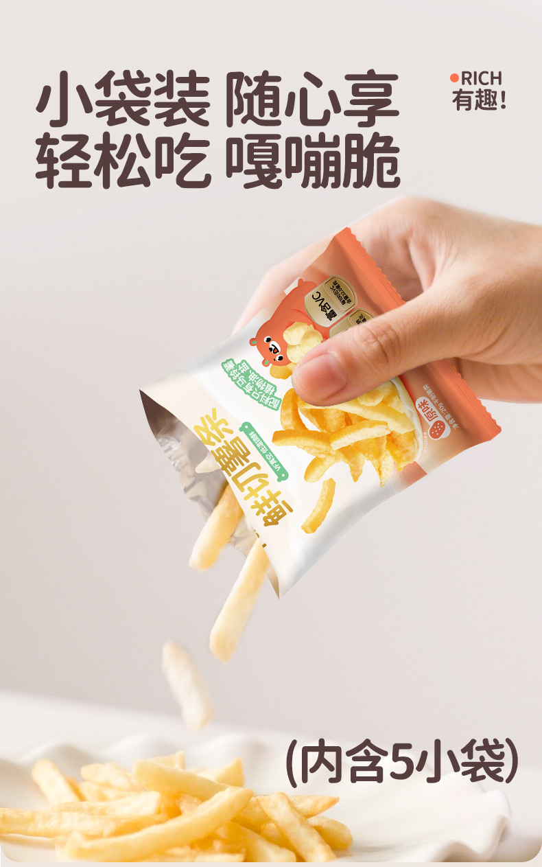 花田熊鲜切小薯条20g*5袋香脆脆解馋小零食原切土豆条小包装薯片fs