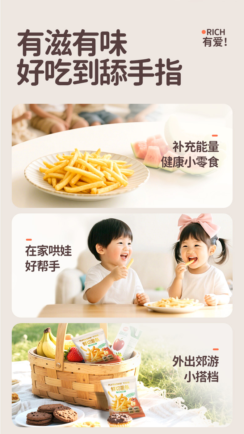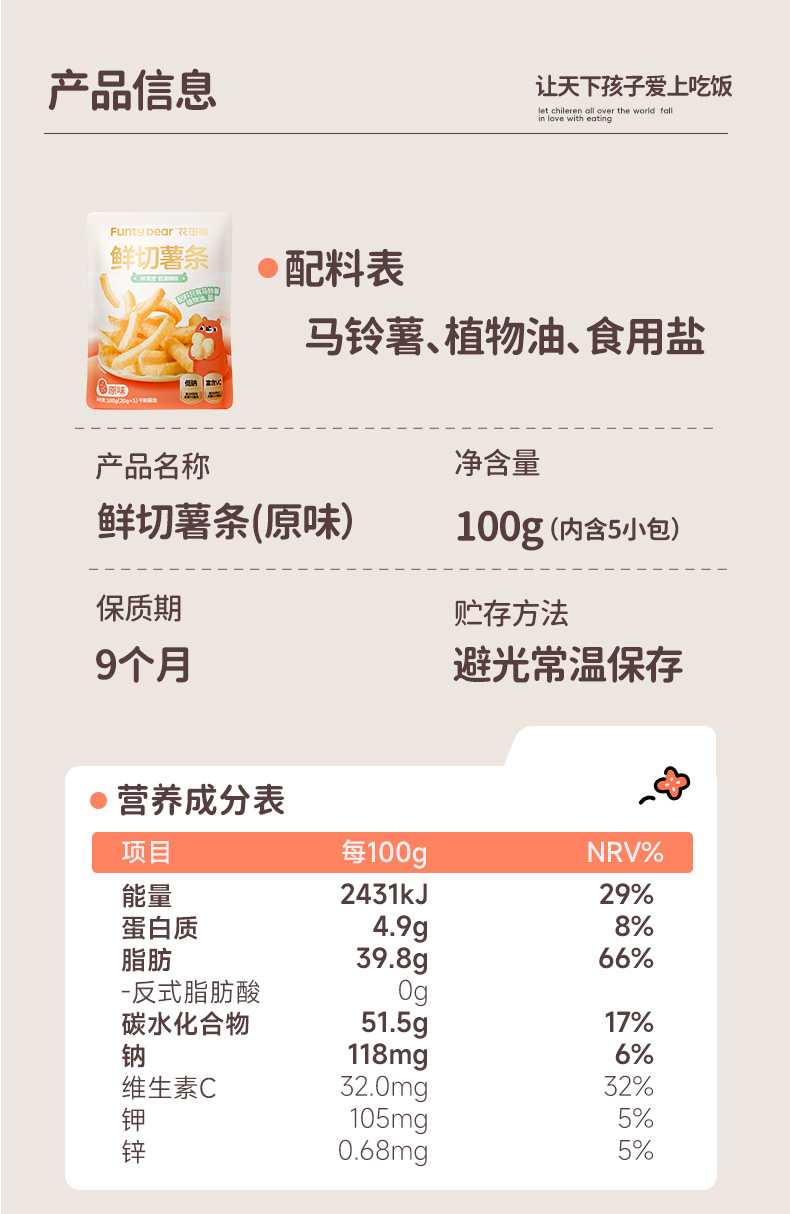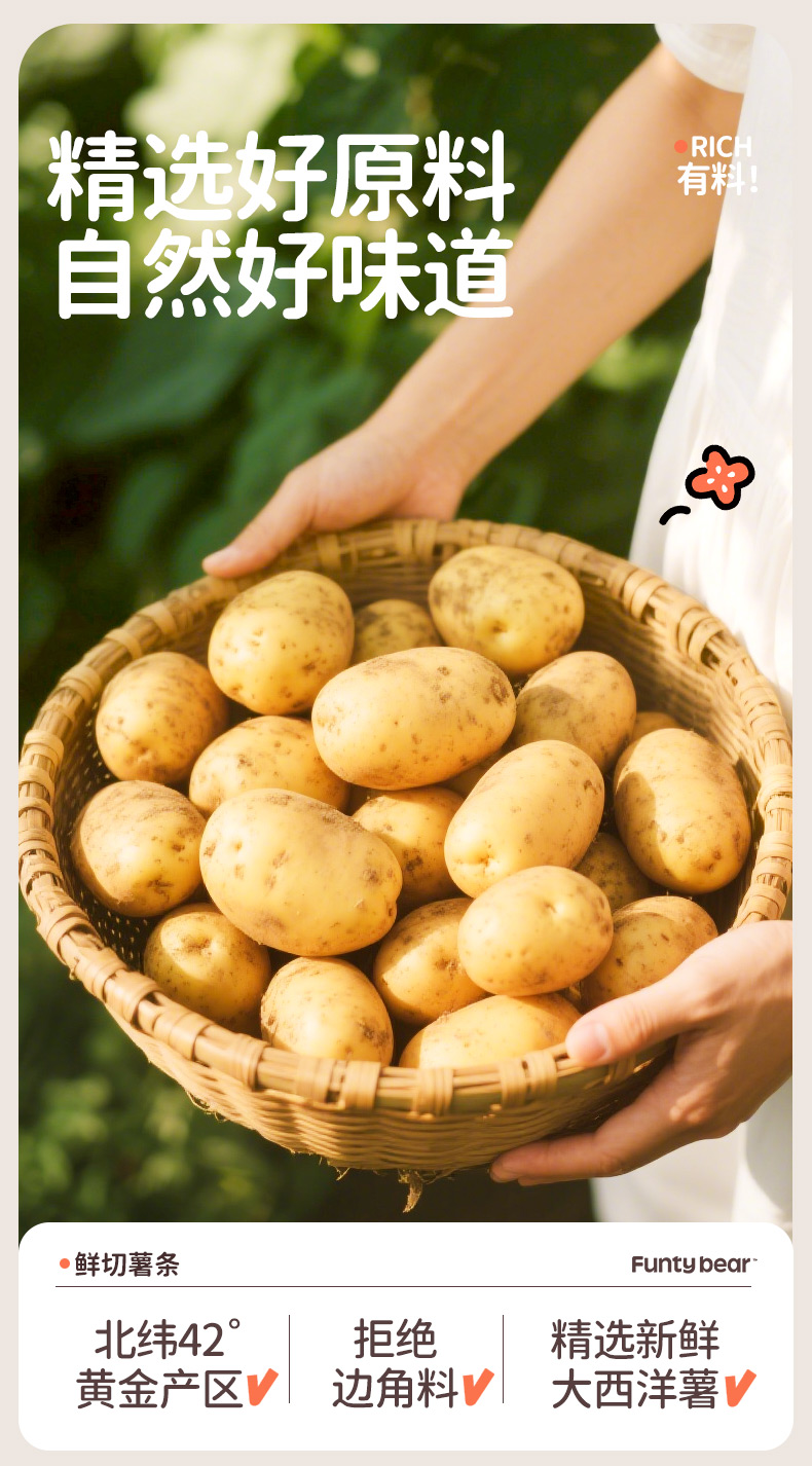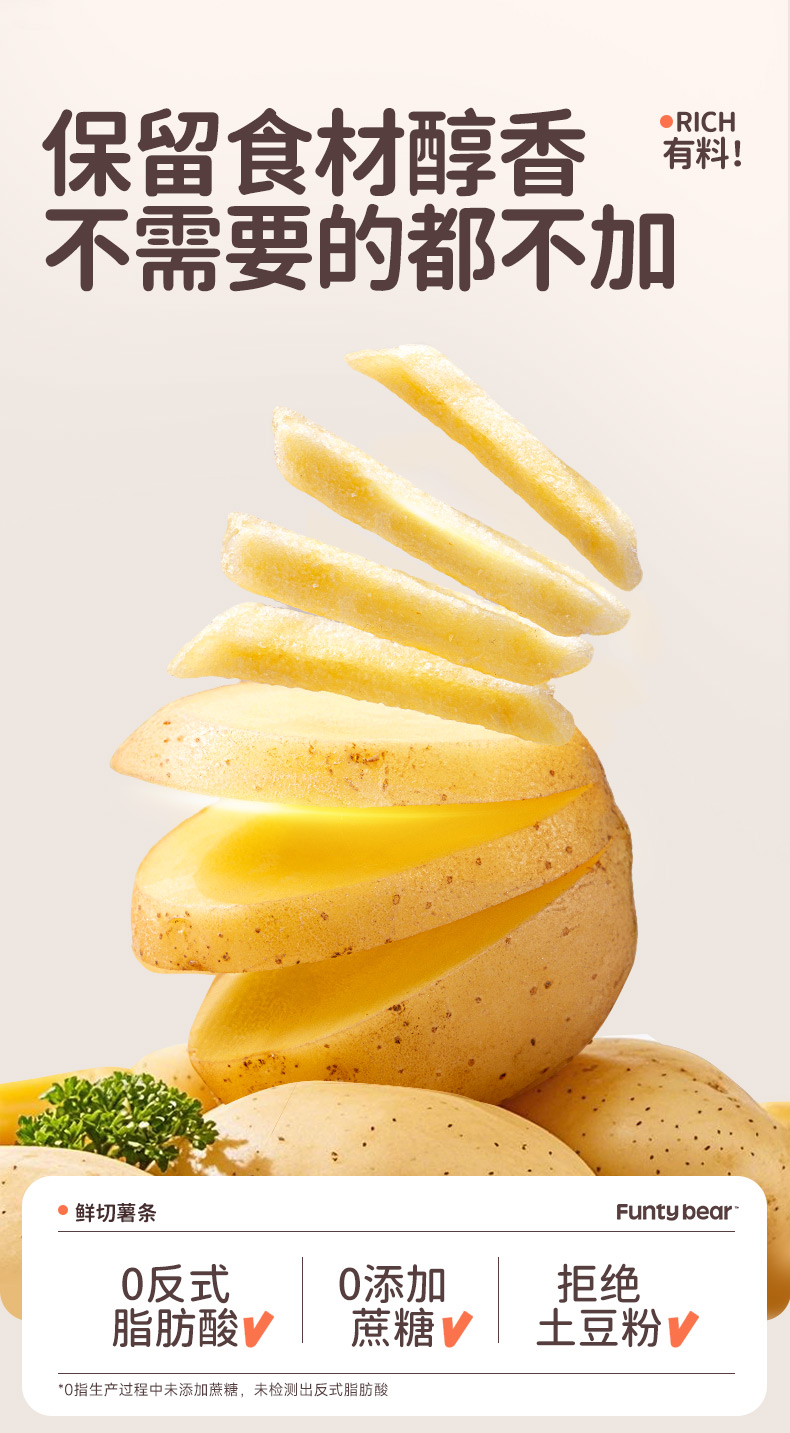 花田熊鲜切小薯条20g*5袋香脆脆解馋小零食原切土豆条小包装薯片fs